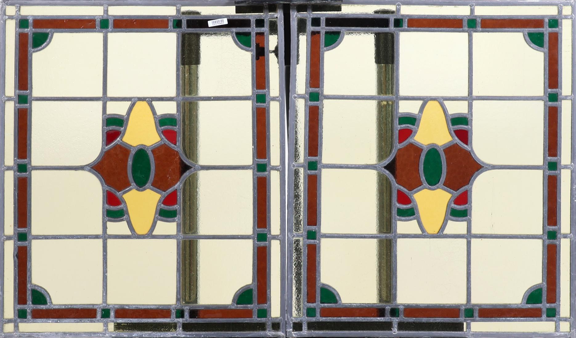 Koop van 2 glas-in-lood ramen, h.57,5 x b.47,5 cm.