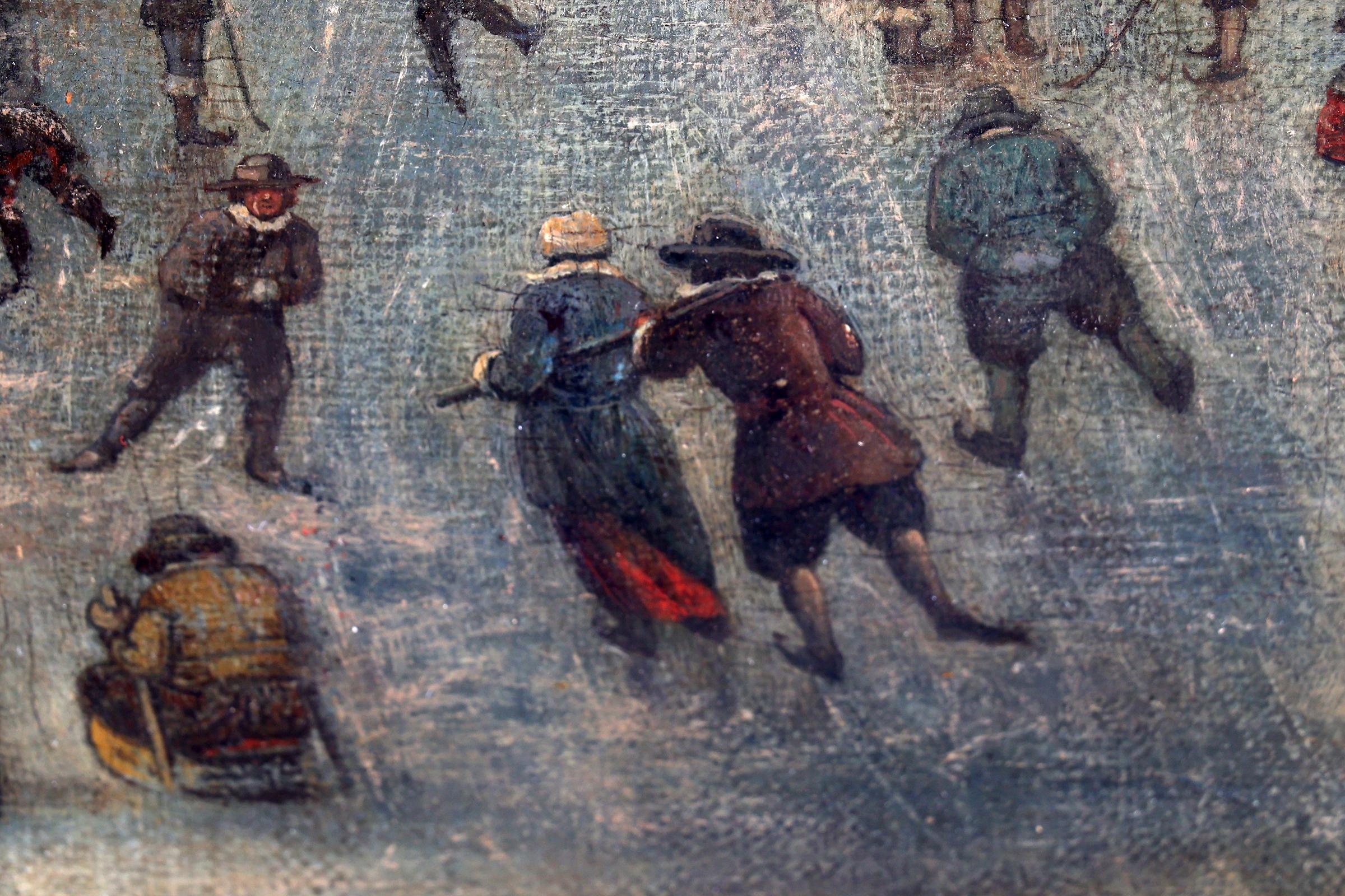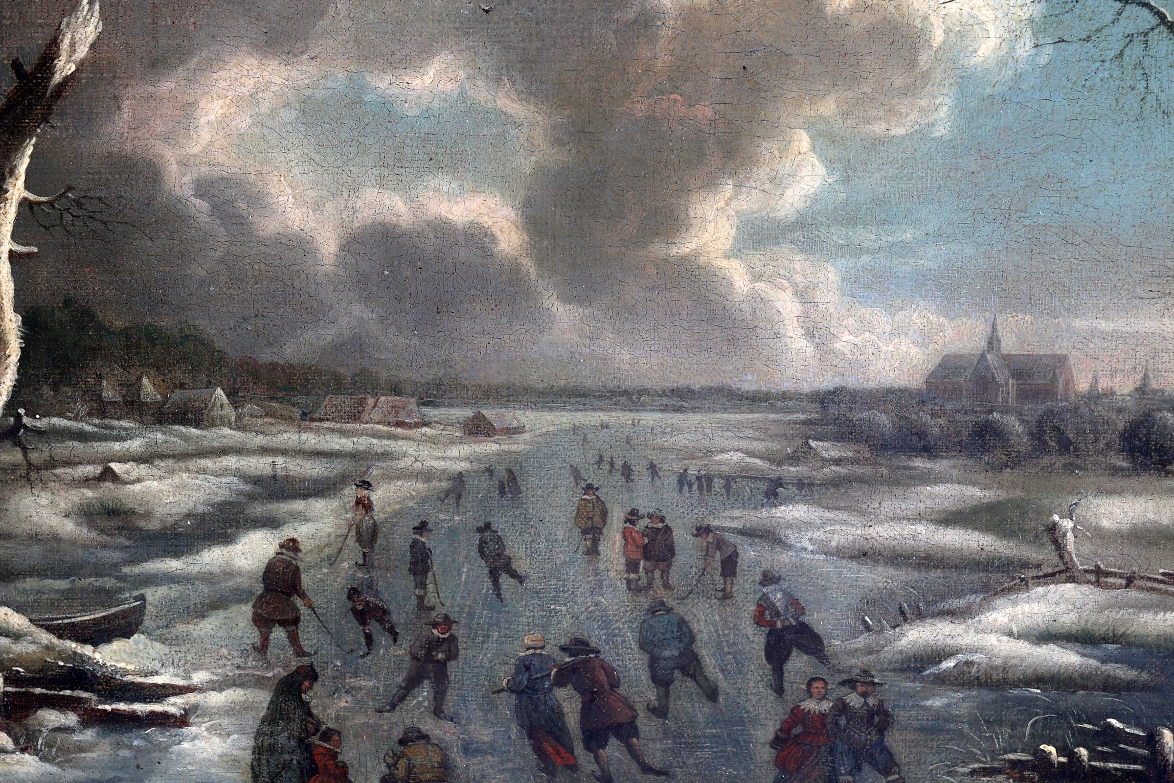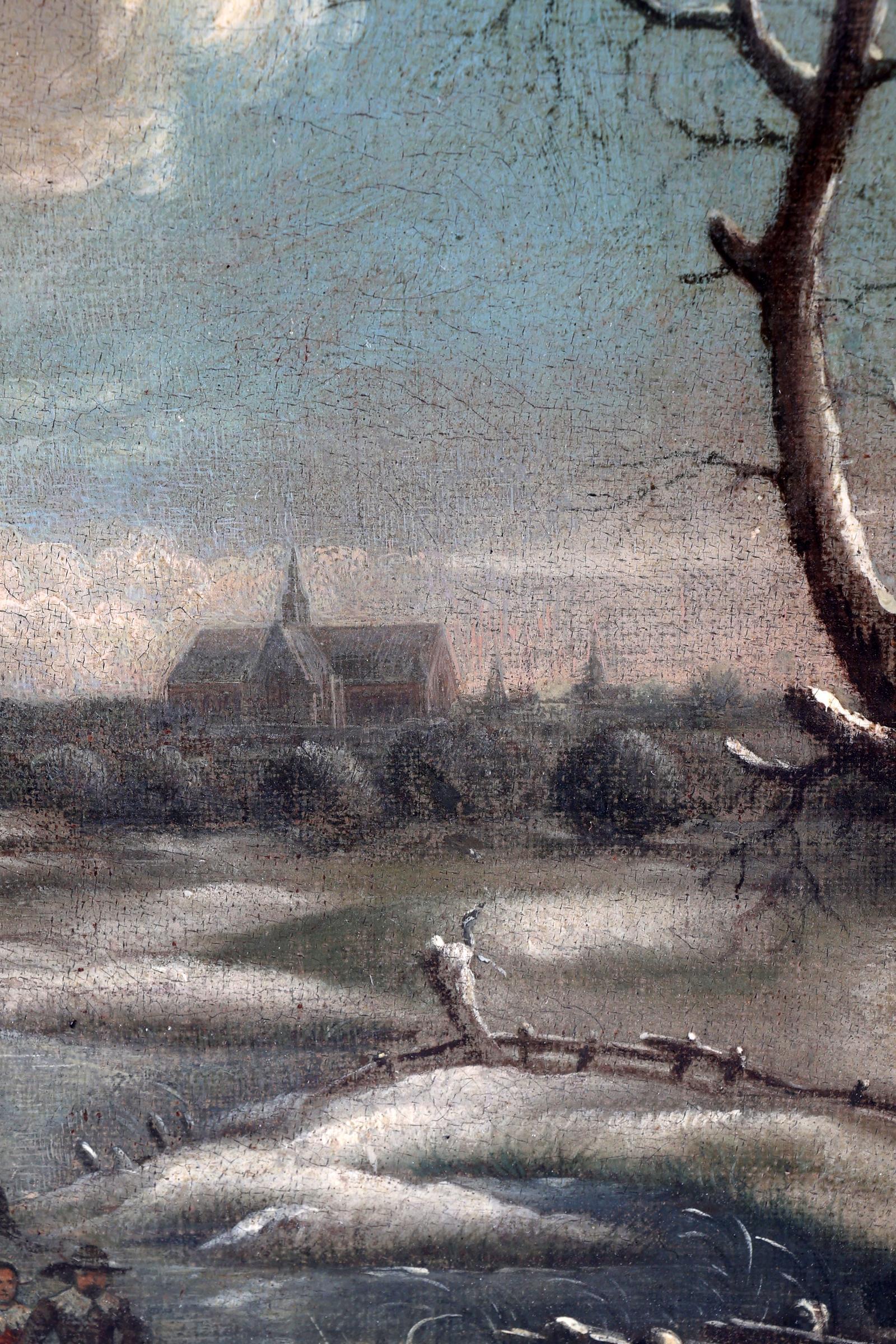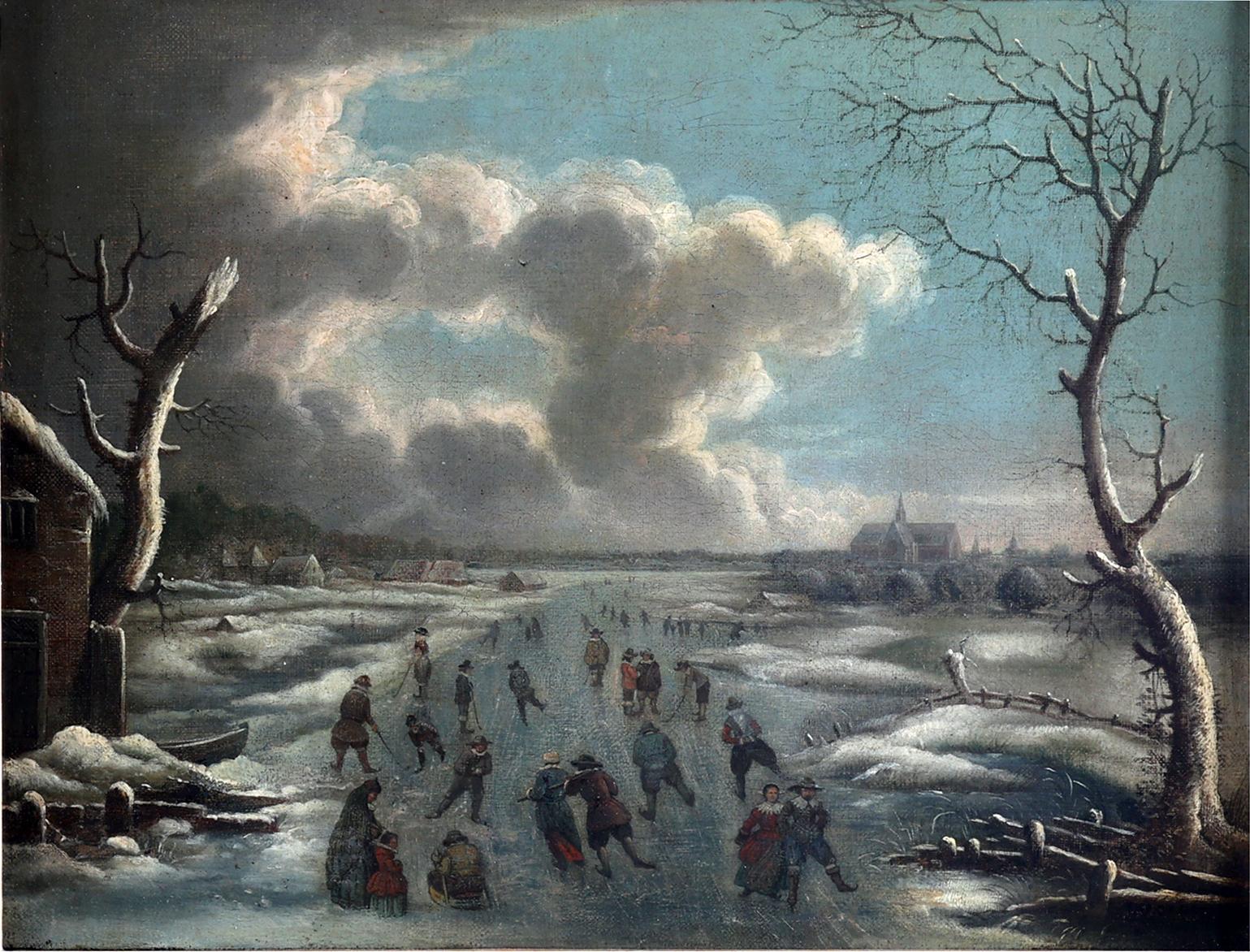 Onb.meester, IJsgezicht met personen, olieverf op doek, 42 x 32,5 cm., 18e eeuw