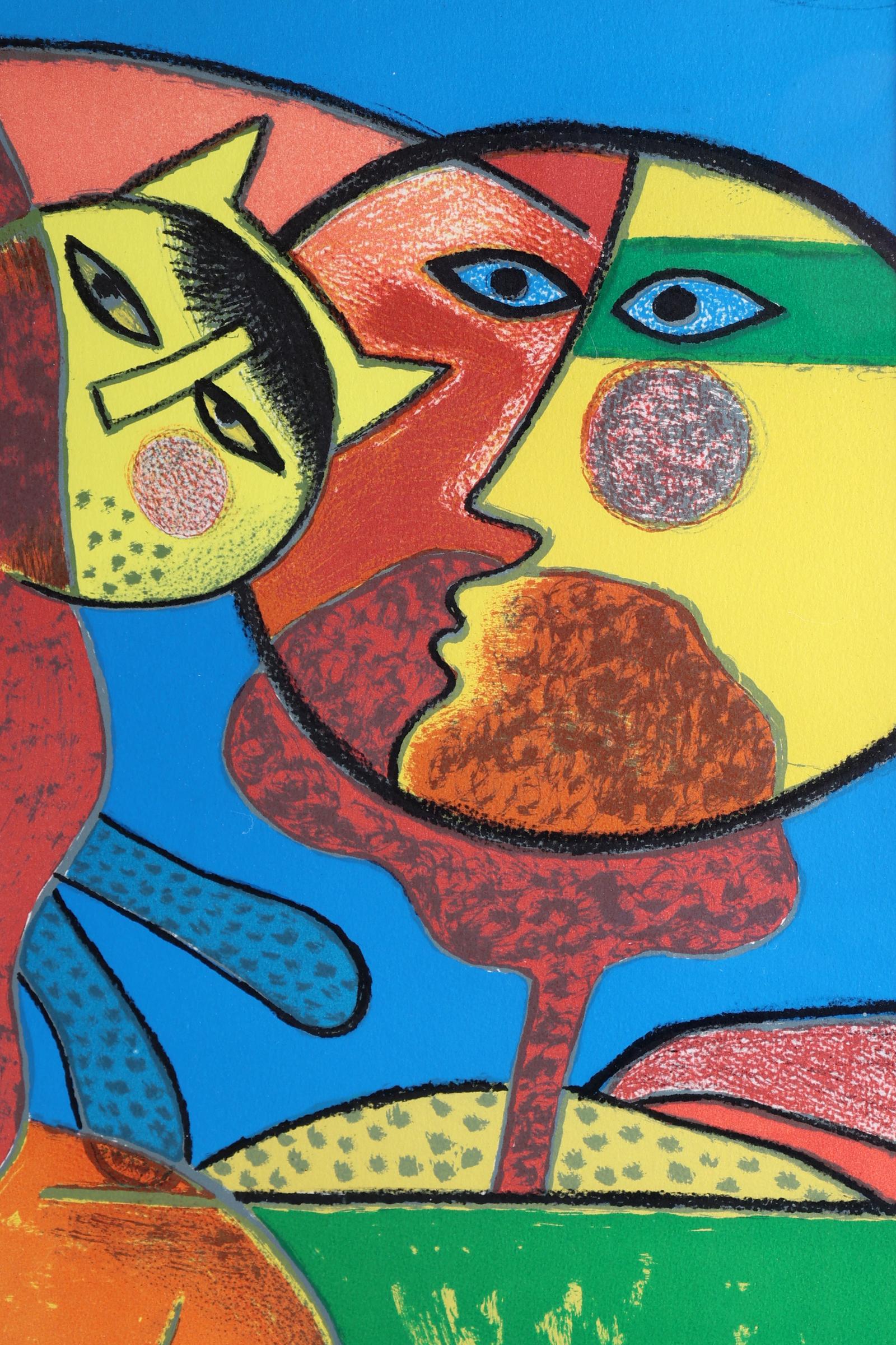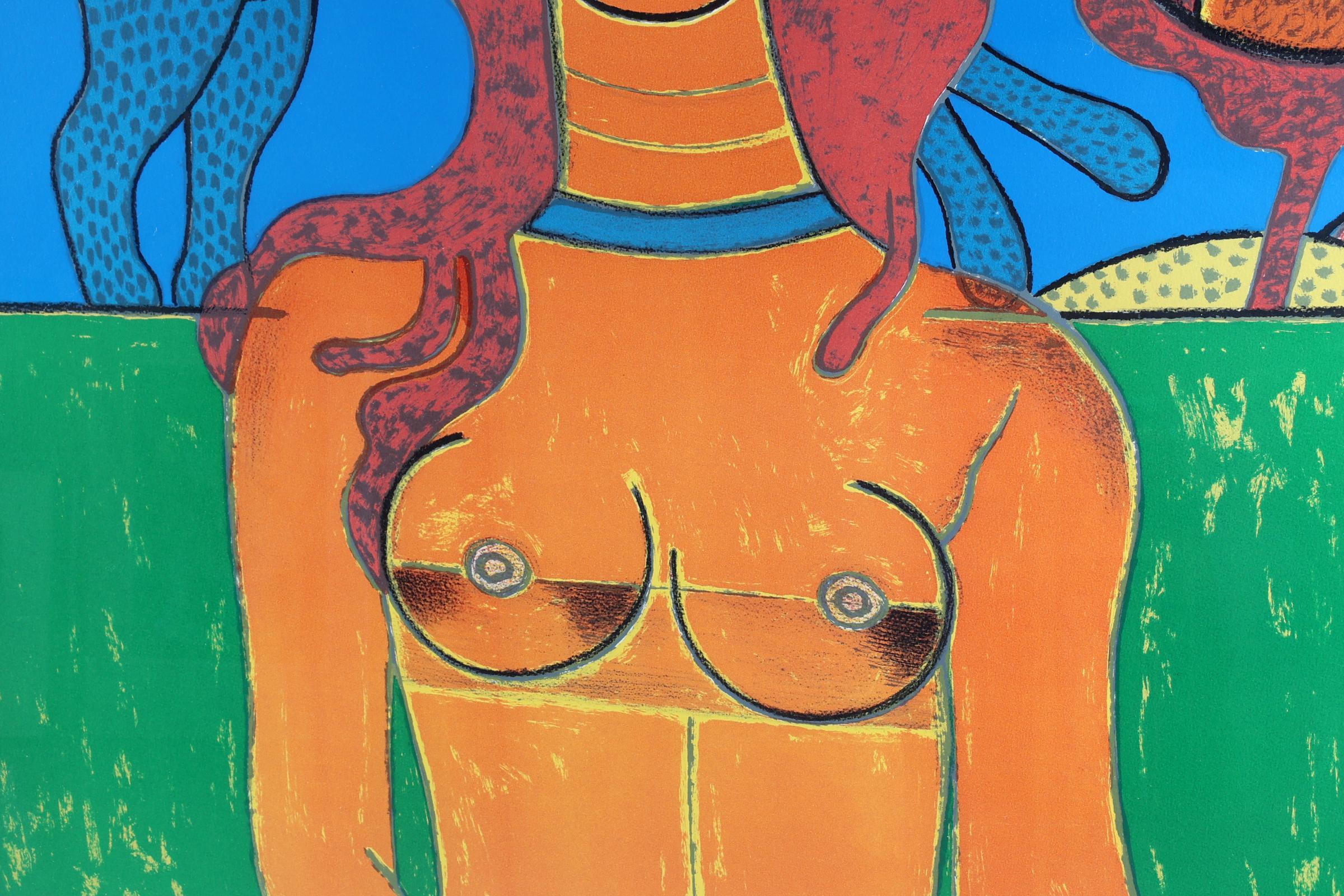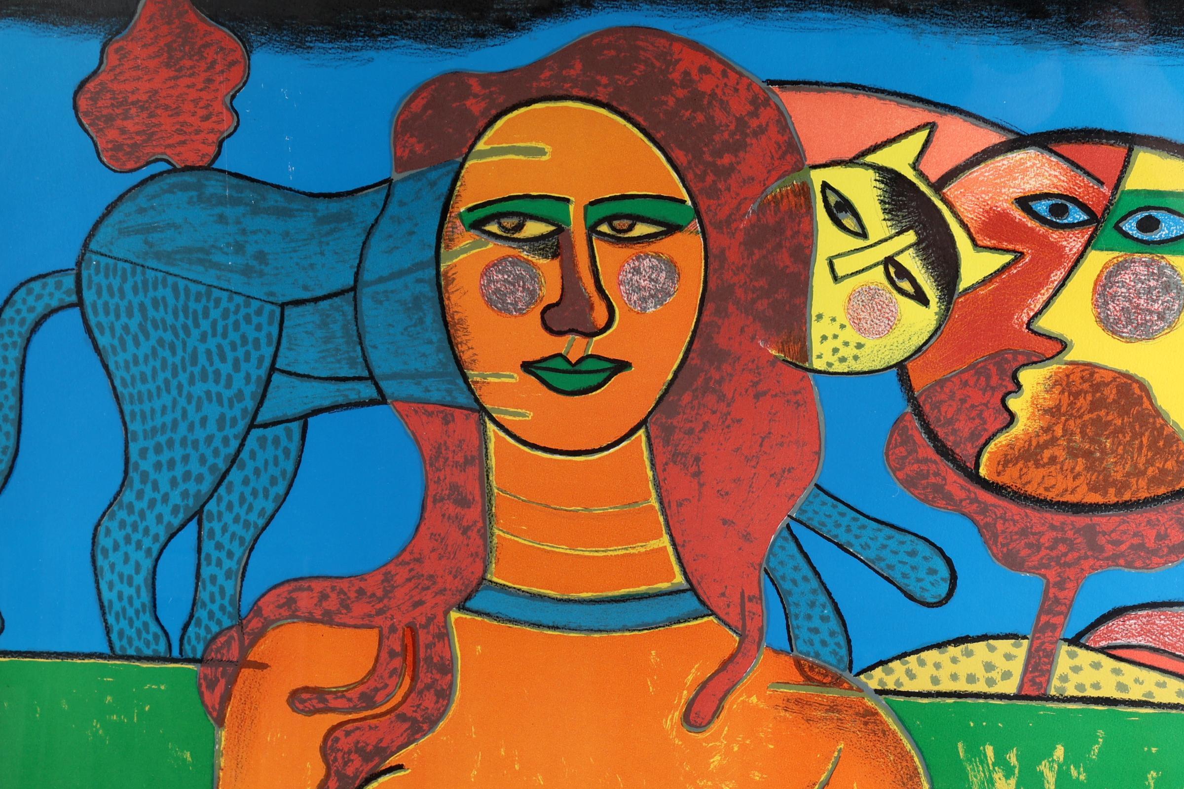 'Corneille', alias van Cornelis Guillaume van Beverloo, (1922- 2010), Vrouw met poes, handgesigneerde zeefdruk, nr. 90/120, 115 x 81 cm., gedateerd 1988
