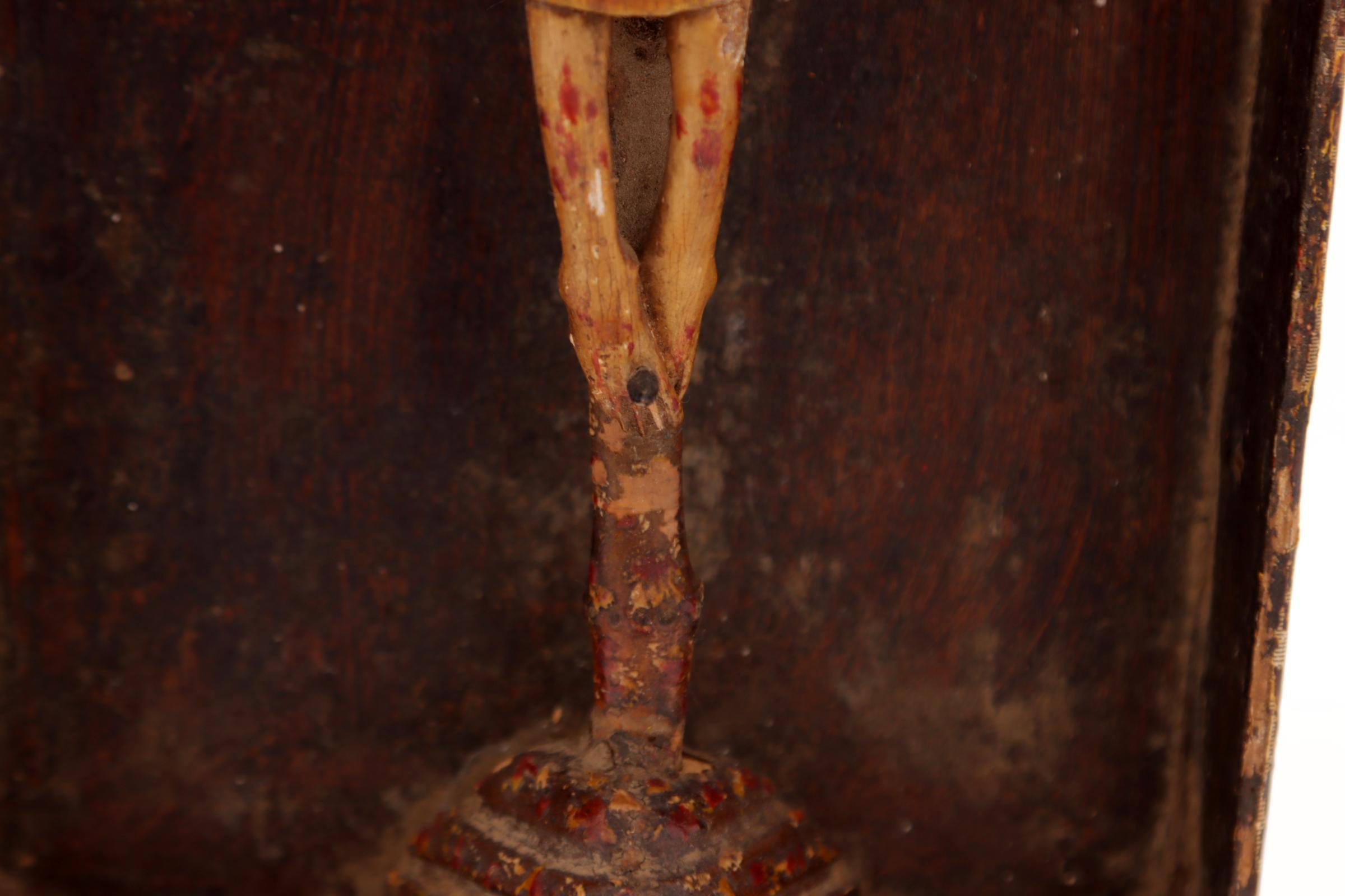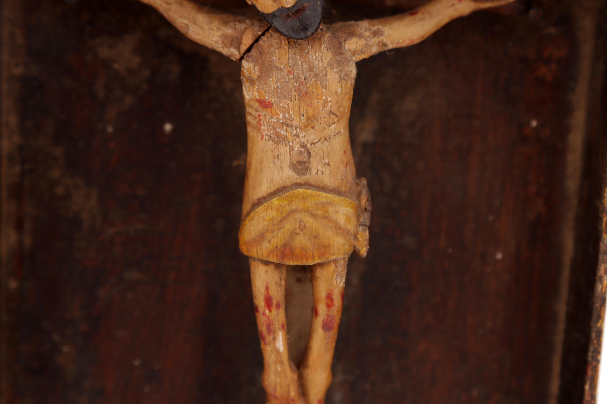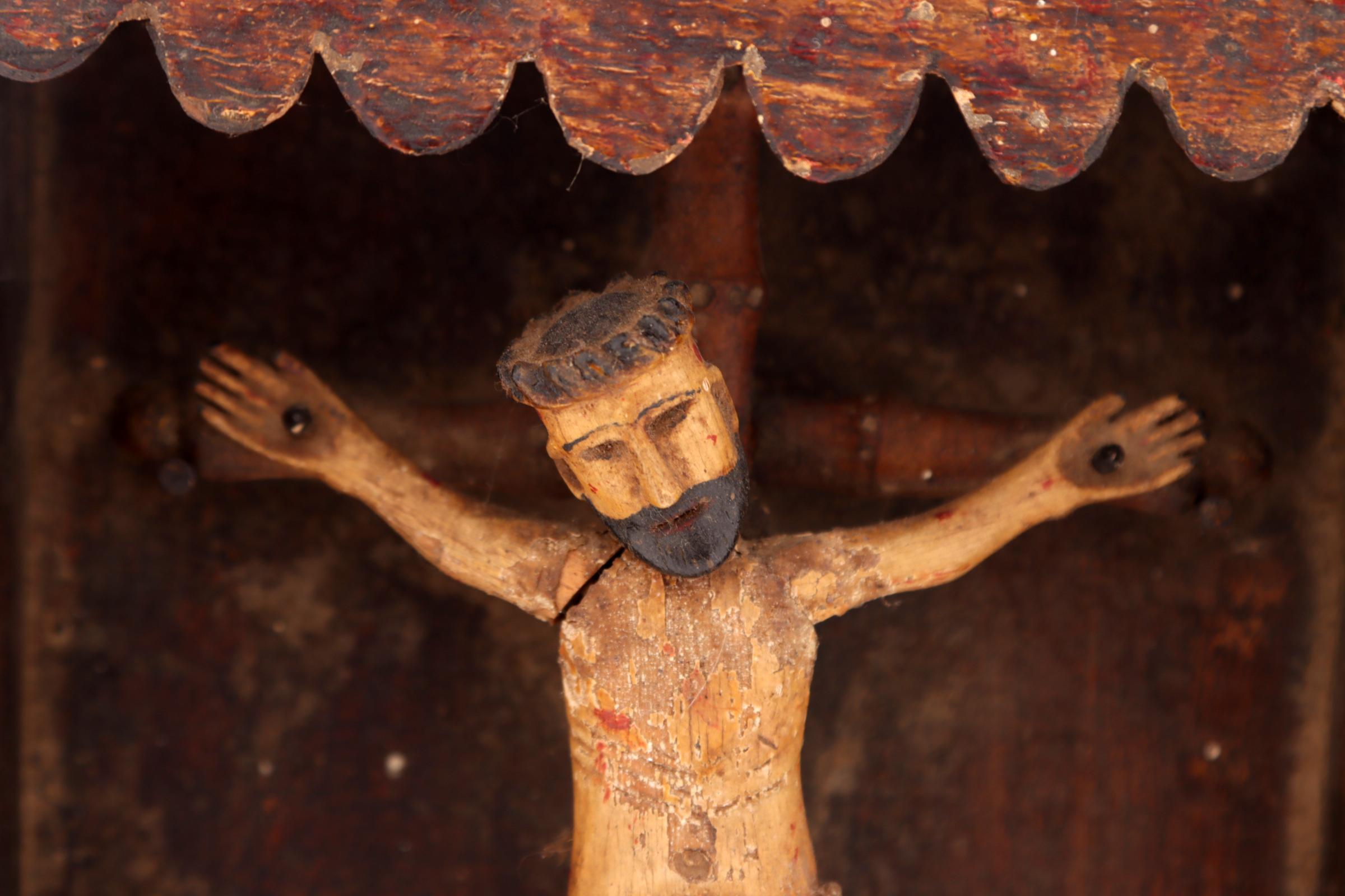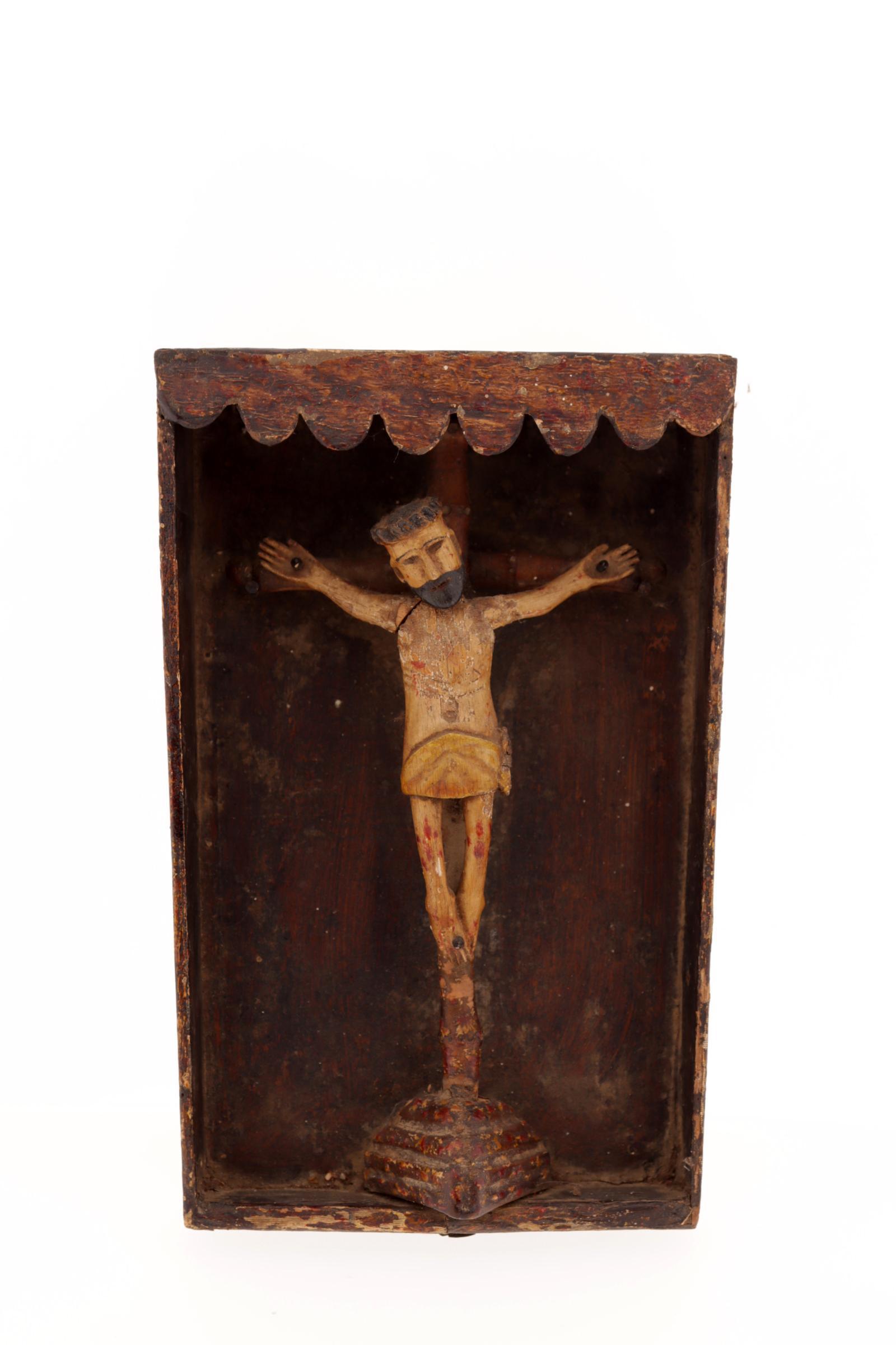 Naïef gestoken crucifix in houten omlijsting, 19e eeuw, h.24 x b.15,5 x d.5 cm.