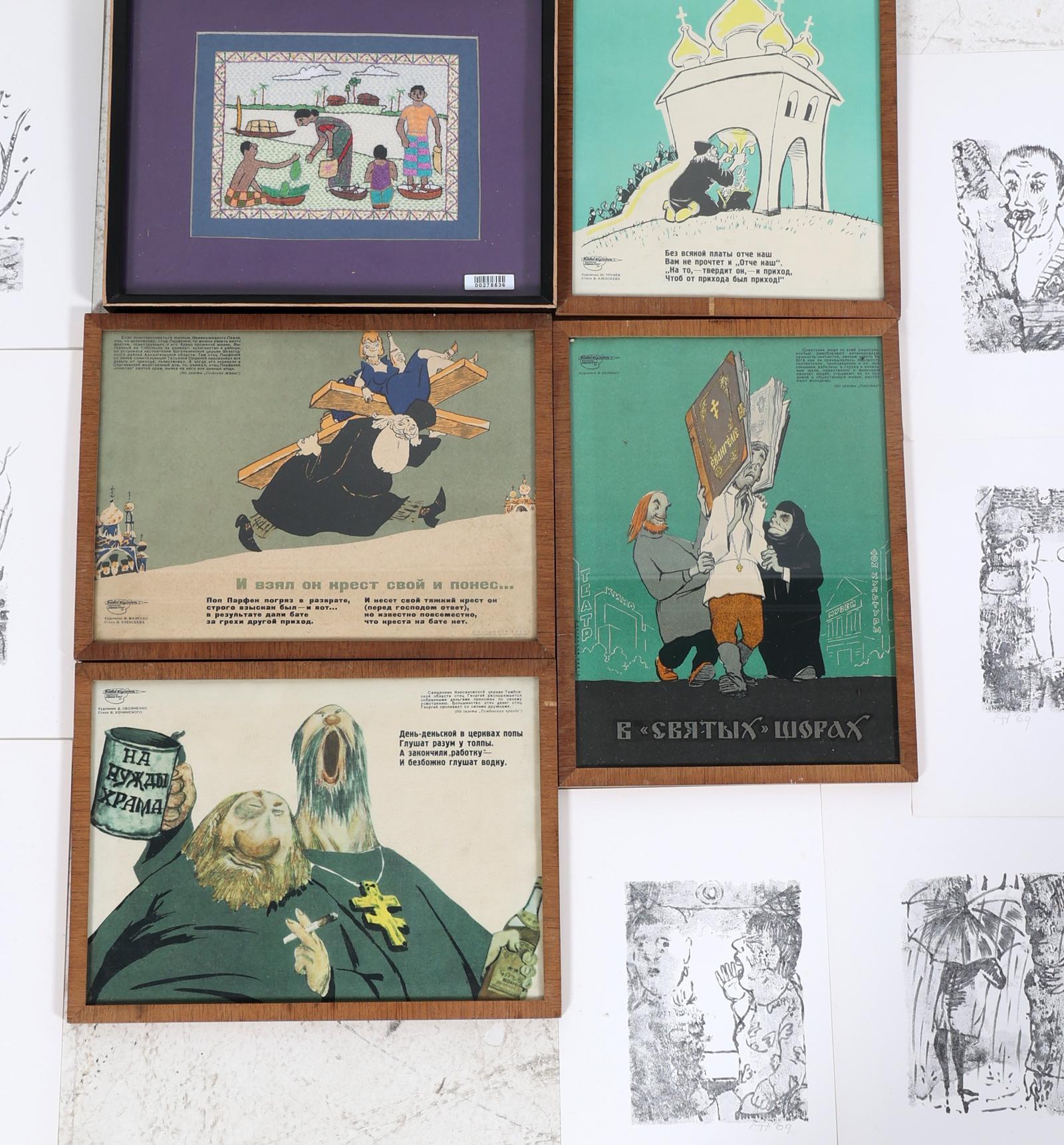Koop van : 4 Russische prenten, 2 mappen met 6 reproducties van Aad de Haas en een met de hand geborduurd polyester tapijt, Aaron Bangladesh