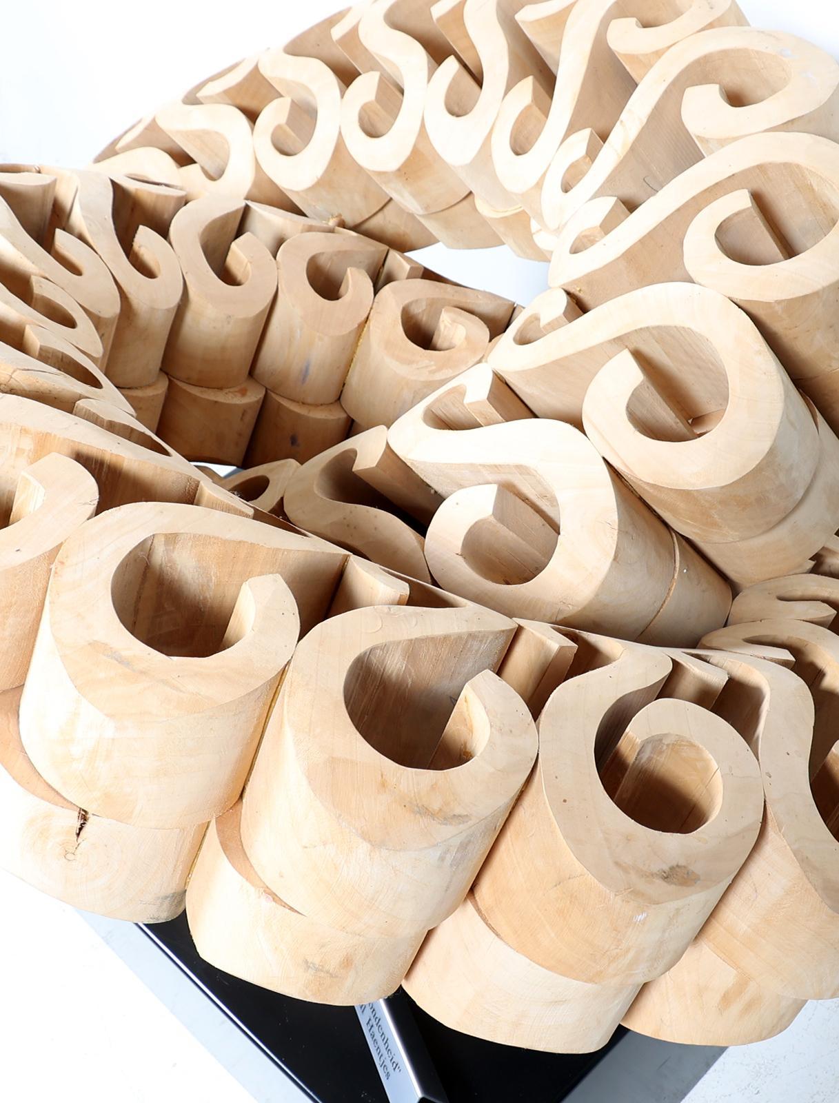 Paul Haentjes, 'Verbondenheid', opengewerkt houten sculptuur rustend op zwarte sokkel, h.73 (103 incl. sokkel) x b.110 x d.140 cm.