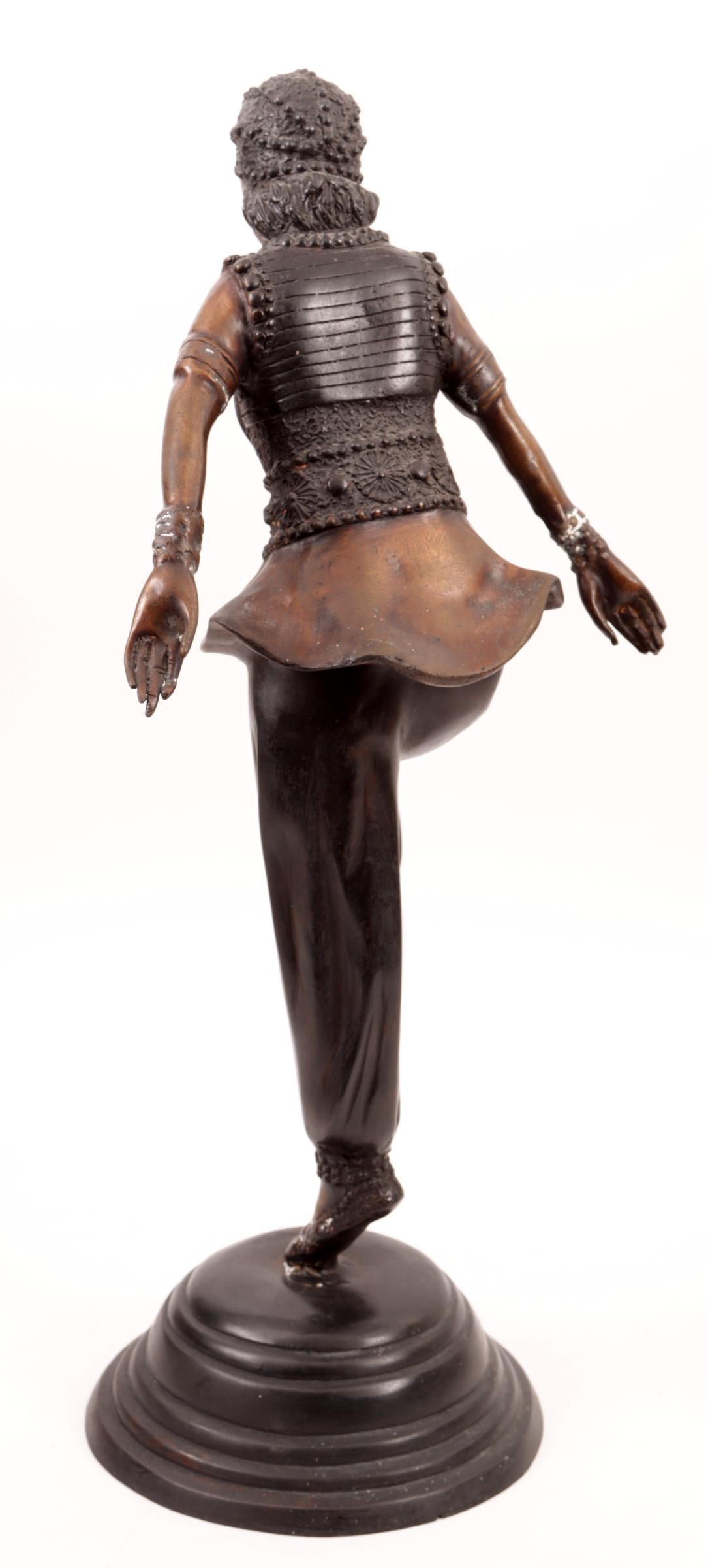 Bronzen sculptuur van danseres rustend op marmeren voetstuk