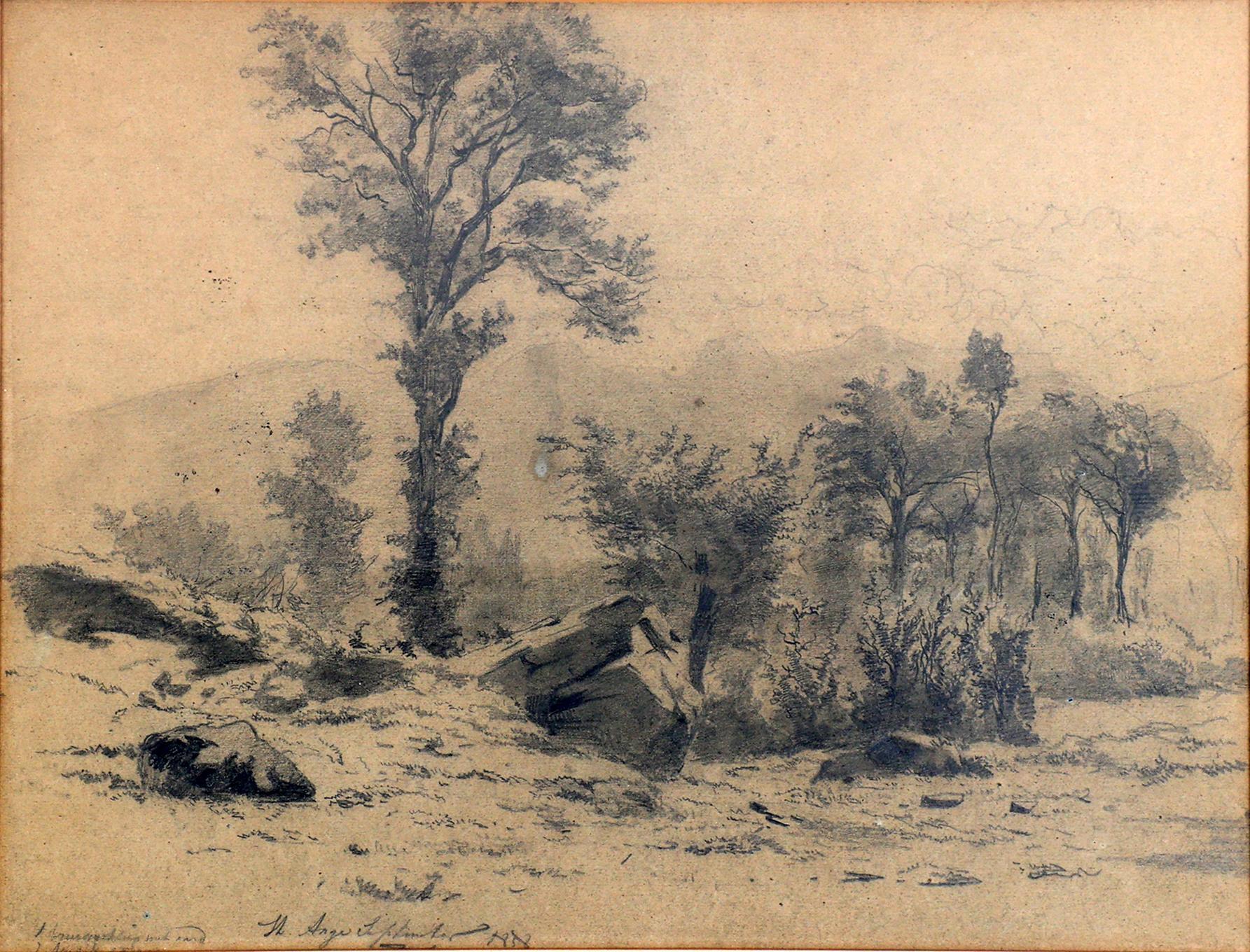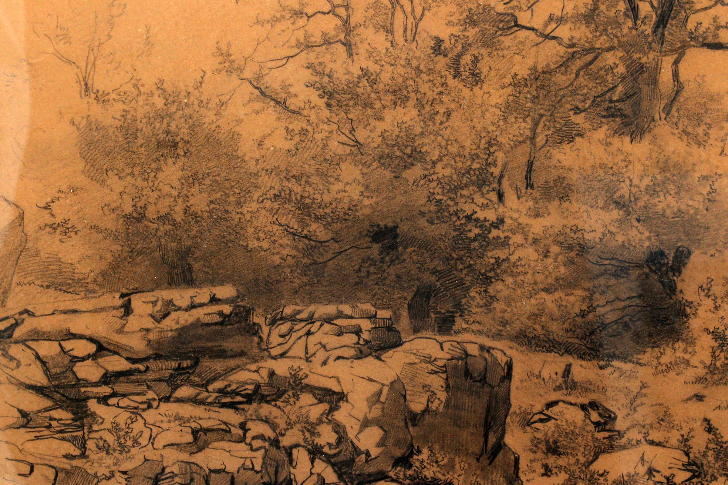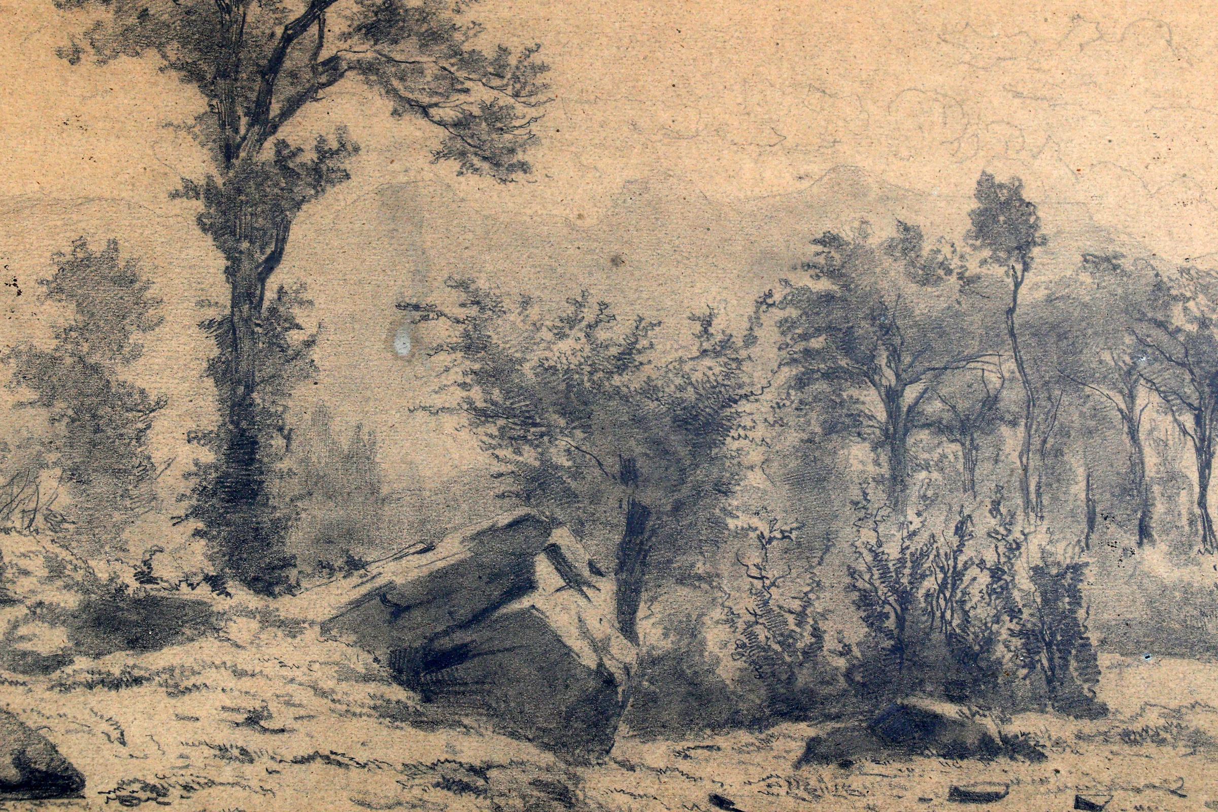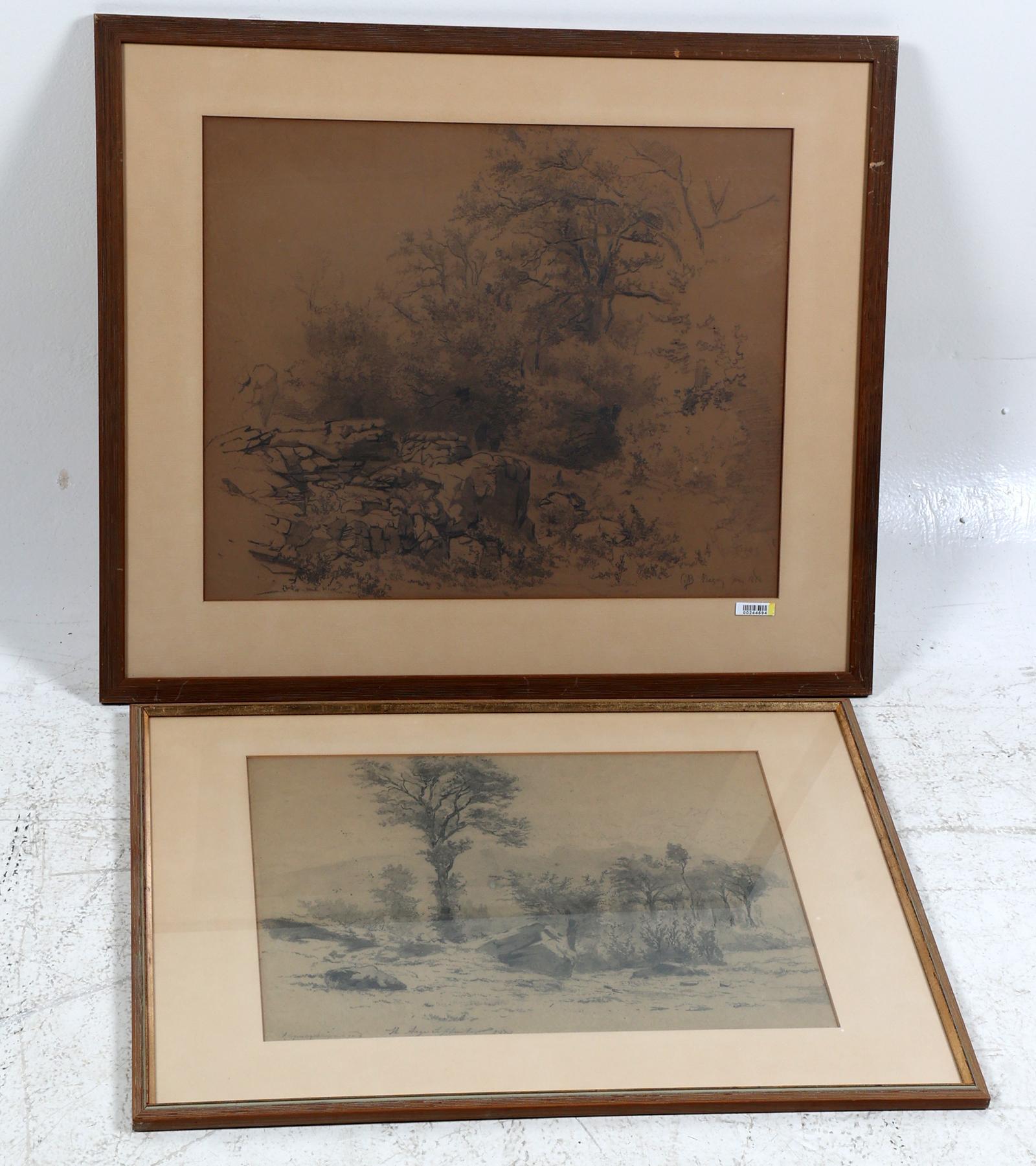 Ond.gesign. Koop van twee diverse potlood tekeningen van landschappen, 40 x 30 en 46 x 38 cm.