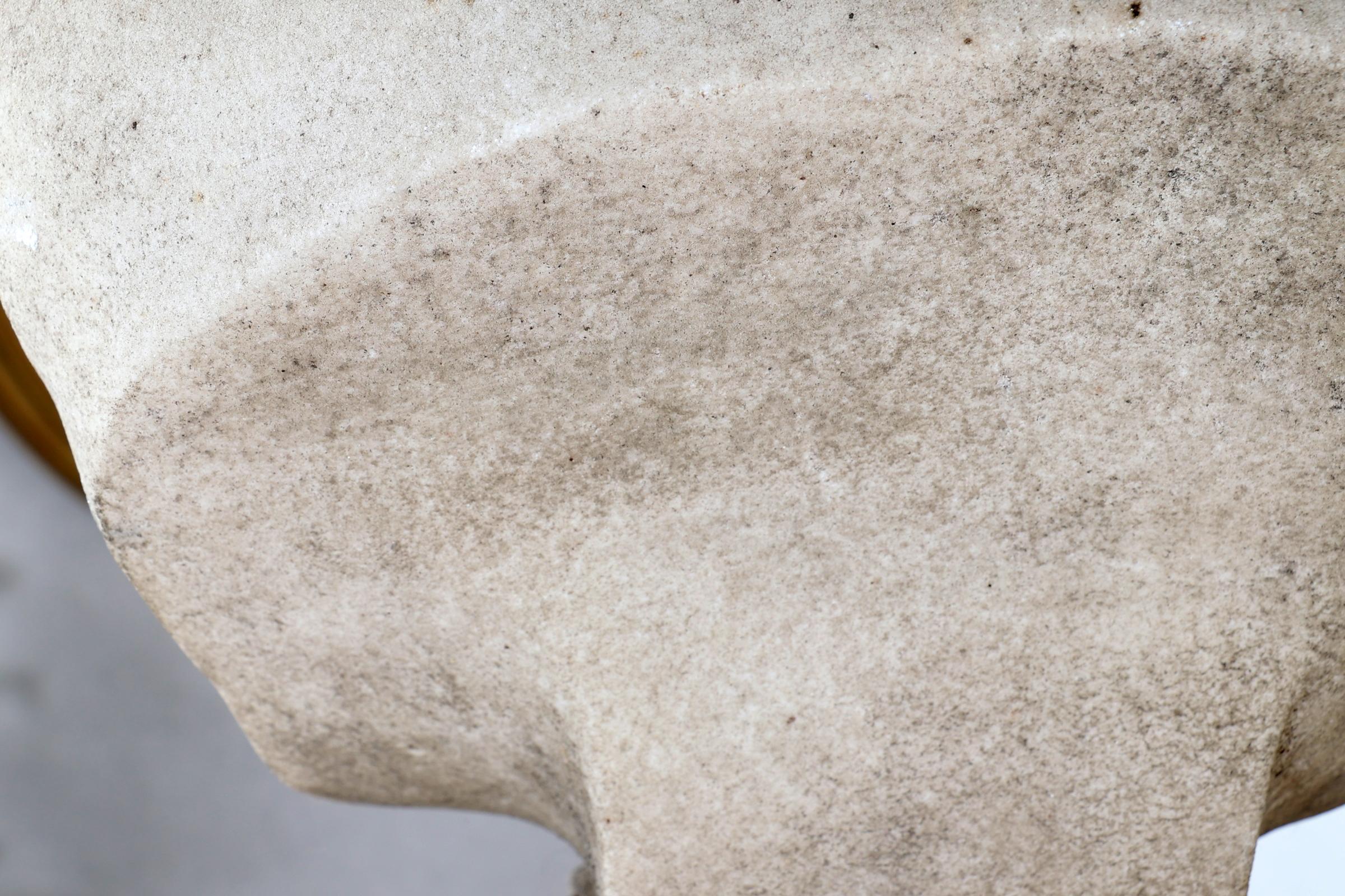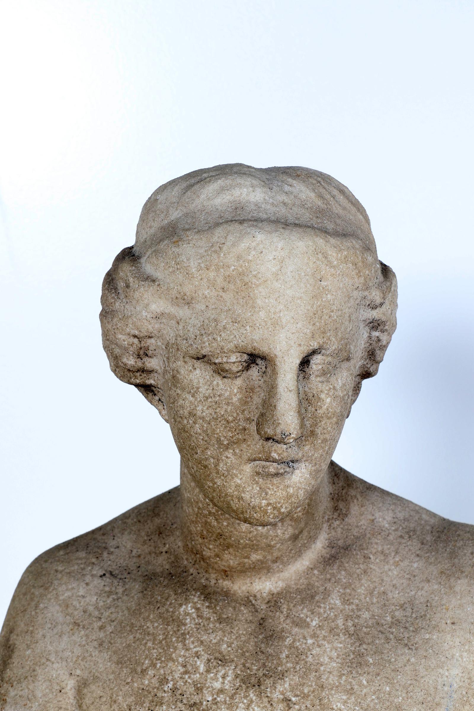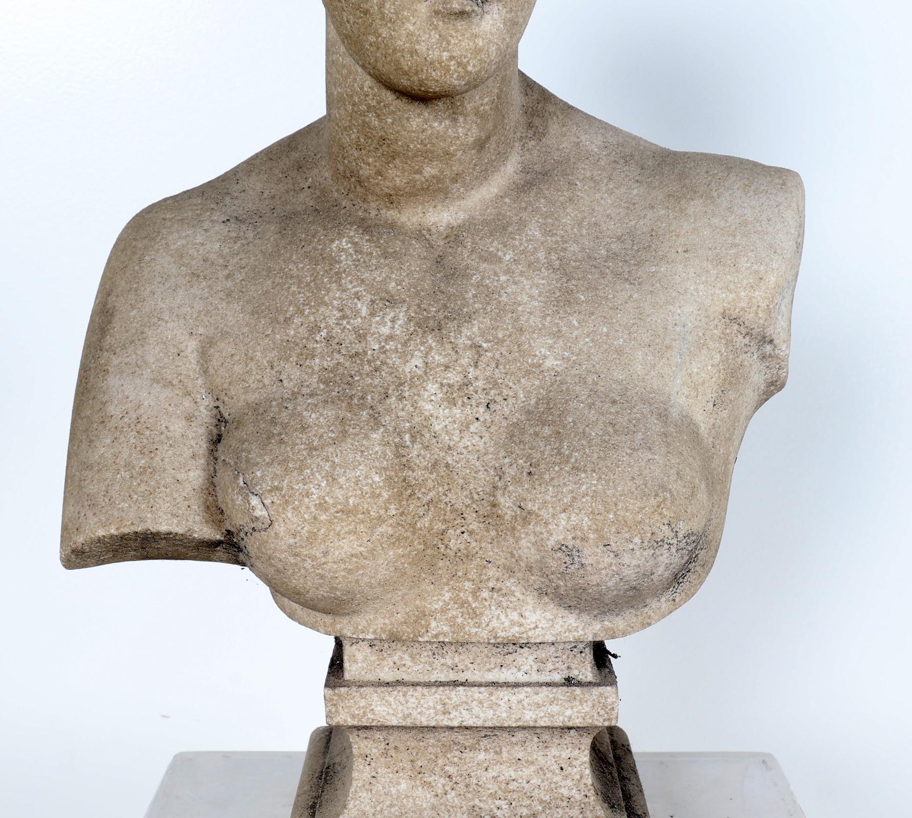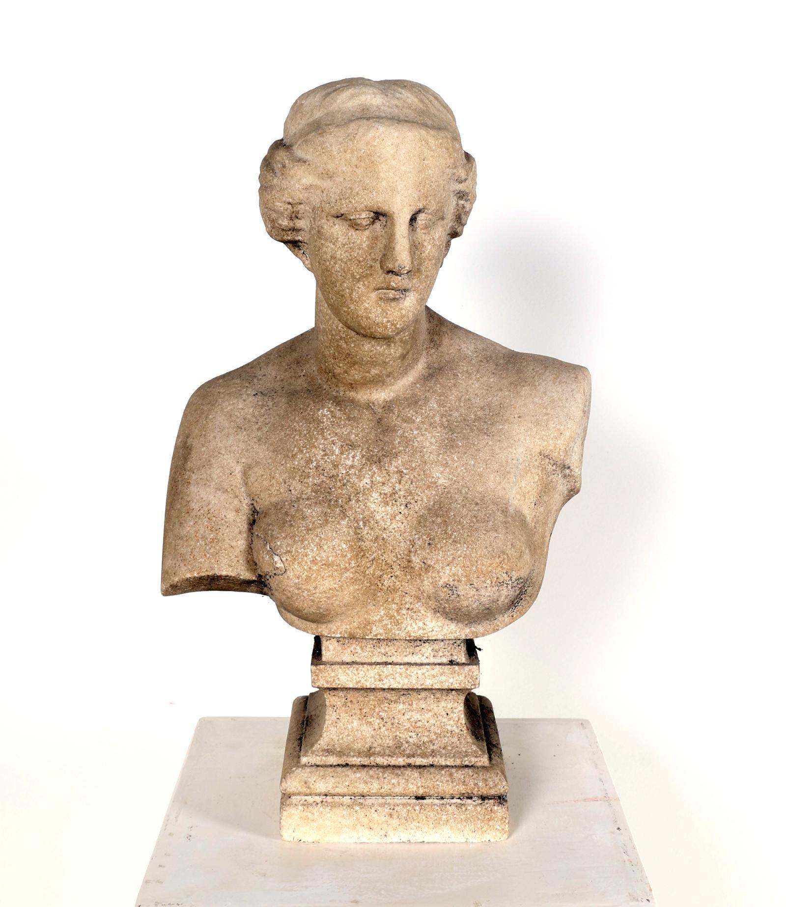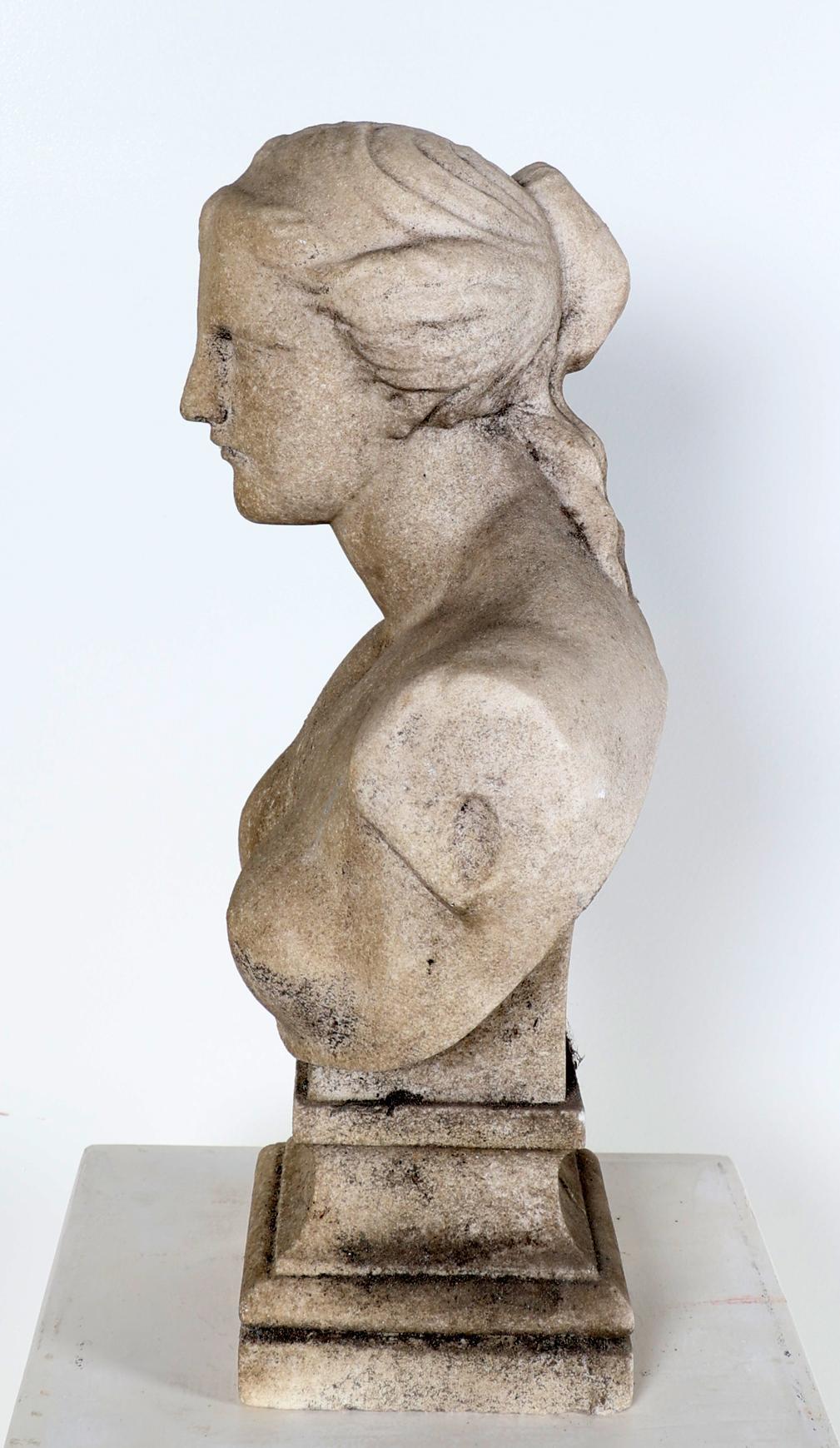 Hardstenen buste van een dame op sokkel, onduidelijk gemonogrammeerd en gedateerd 1890, h.50 cm.