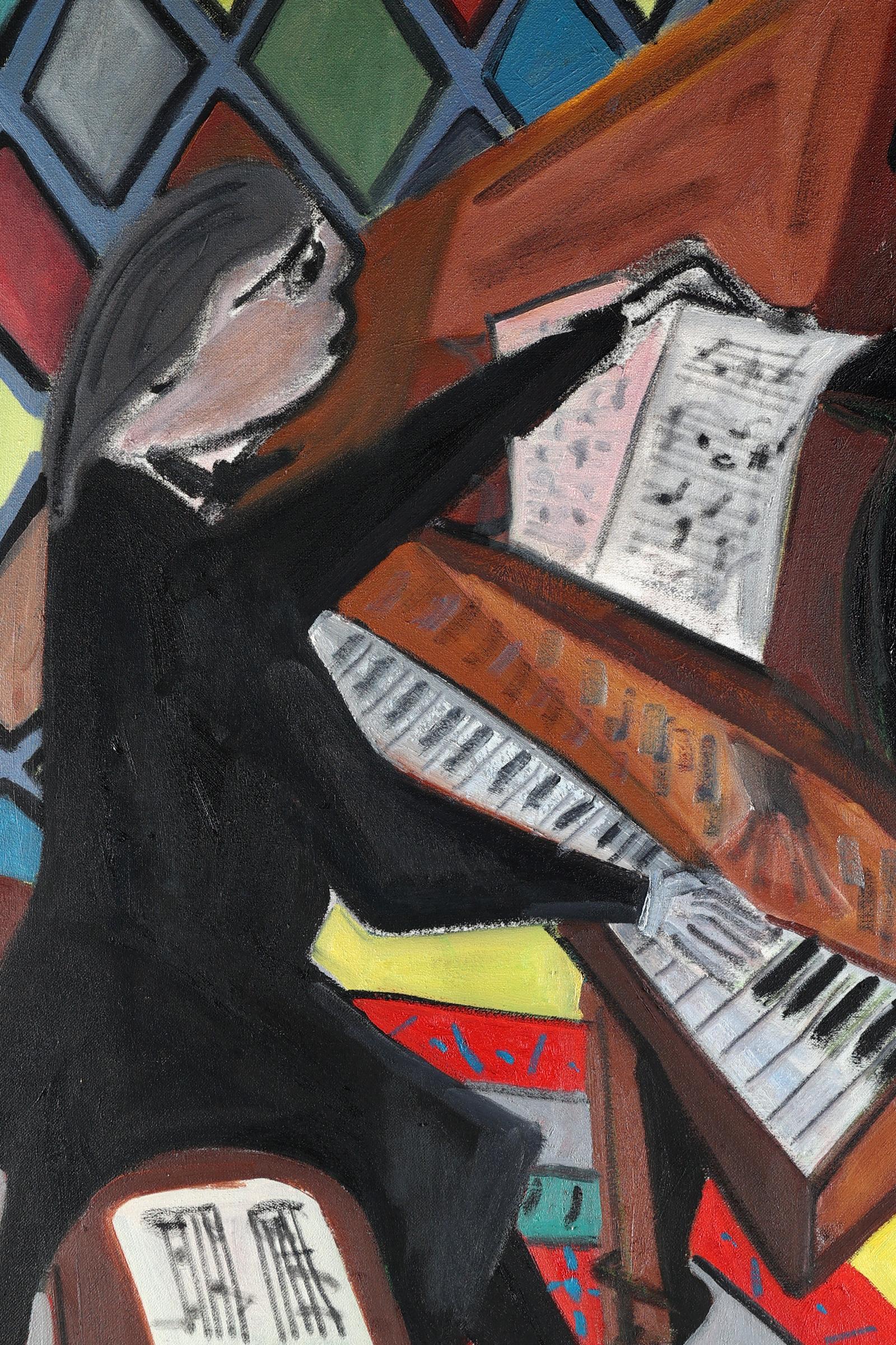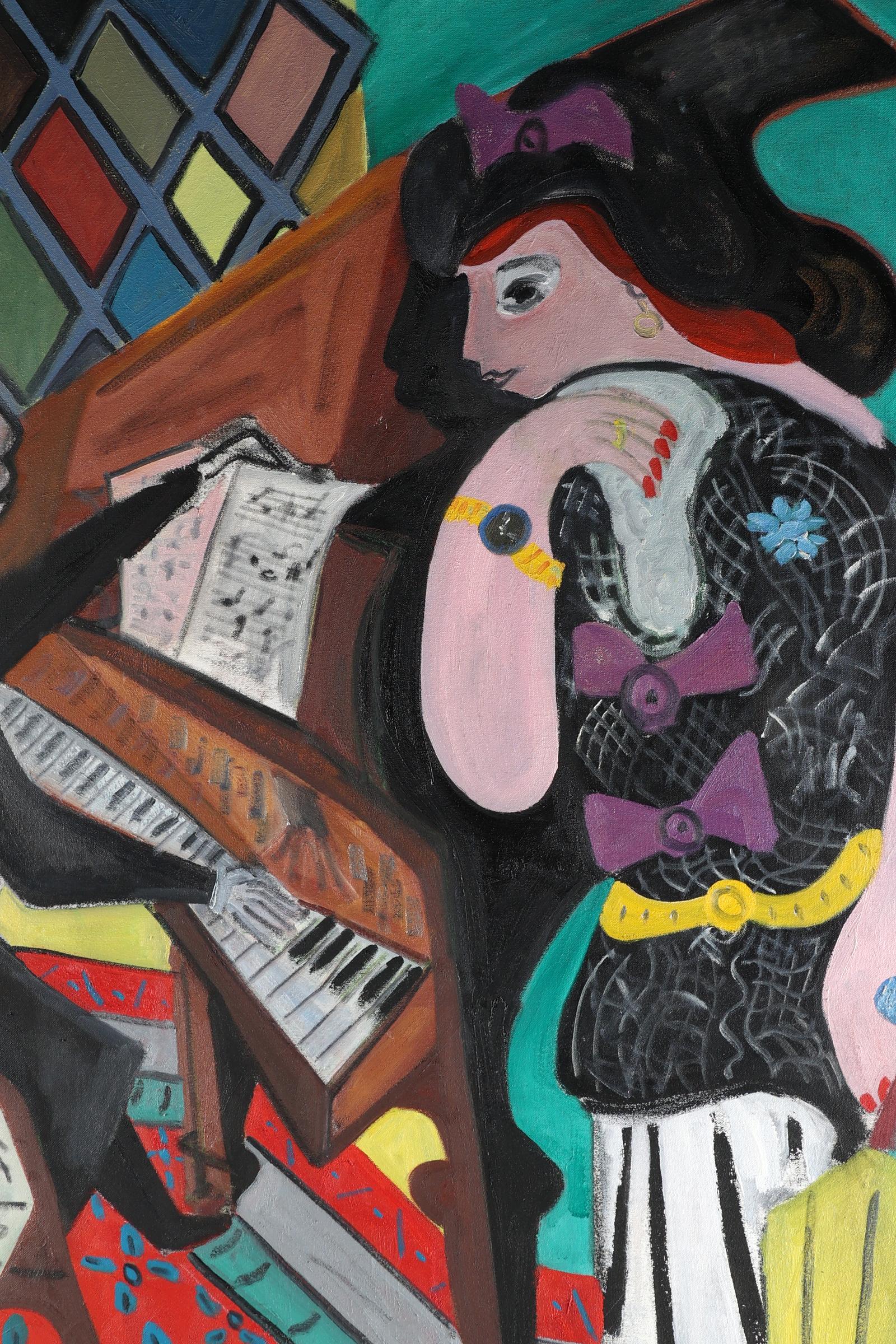 Richard Baumgart (1946), De Piano, olieverf op doek, gedateerd 1991, 120 x 78 cm.