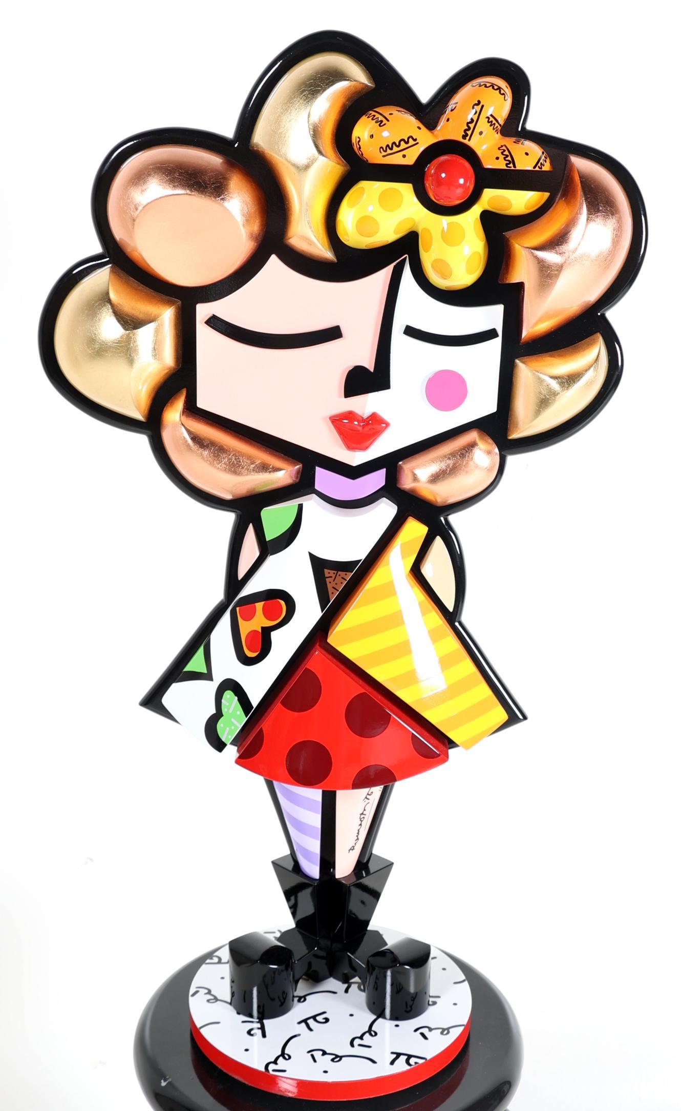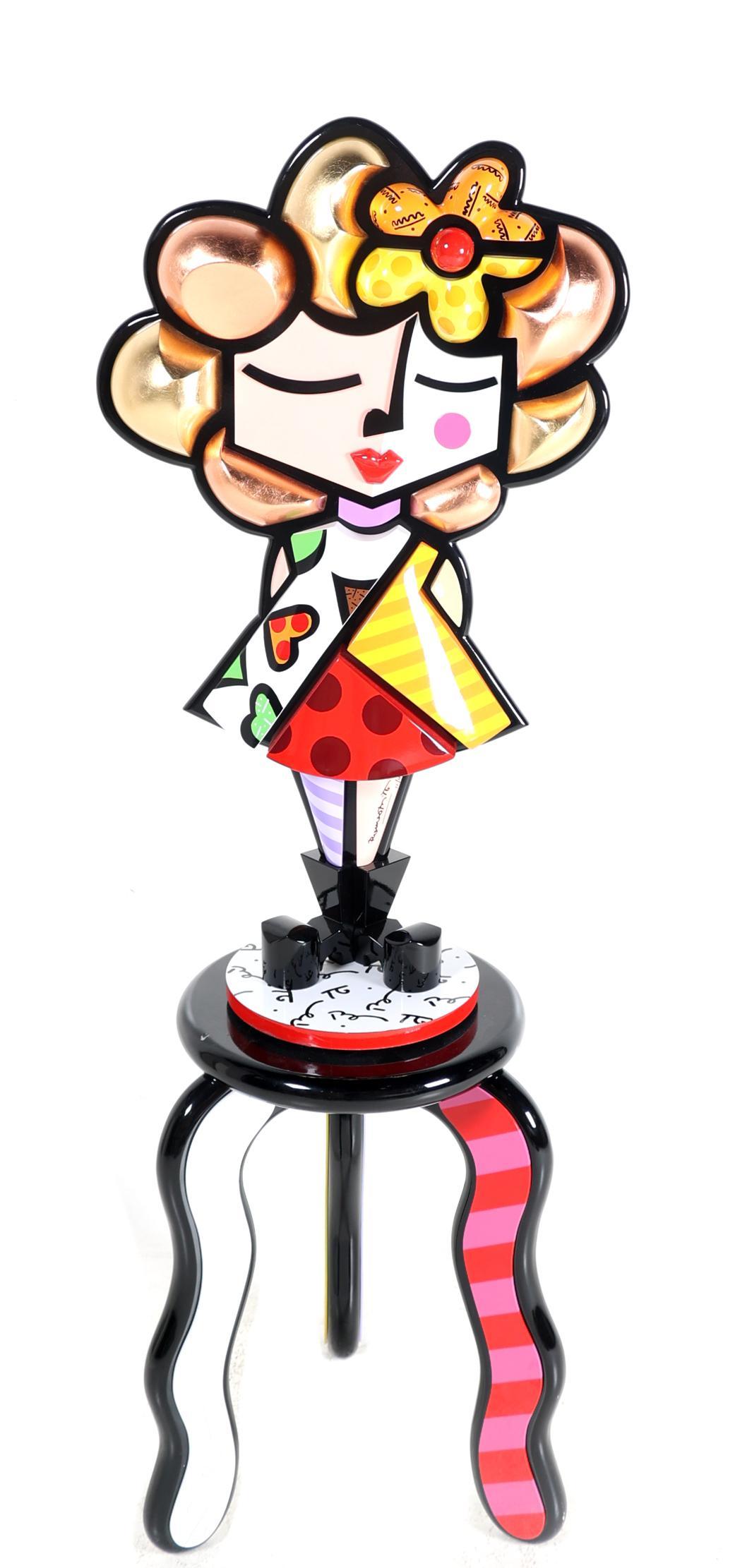 Romero Britto (1963), Meisje op draaistoel, houten sculptuur met marker, hars en emaille, h.140 cm. Provenance: Arte Vista Gallery, Badhoevedorp / privé collectie Nederland / privé collectie Nederland