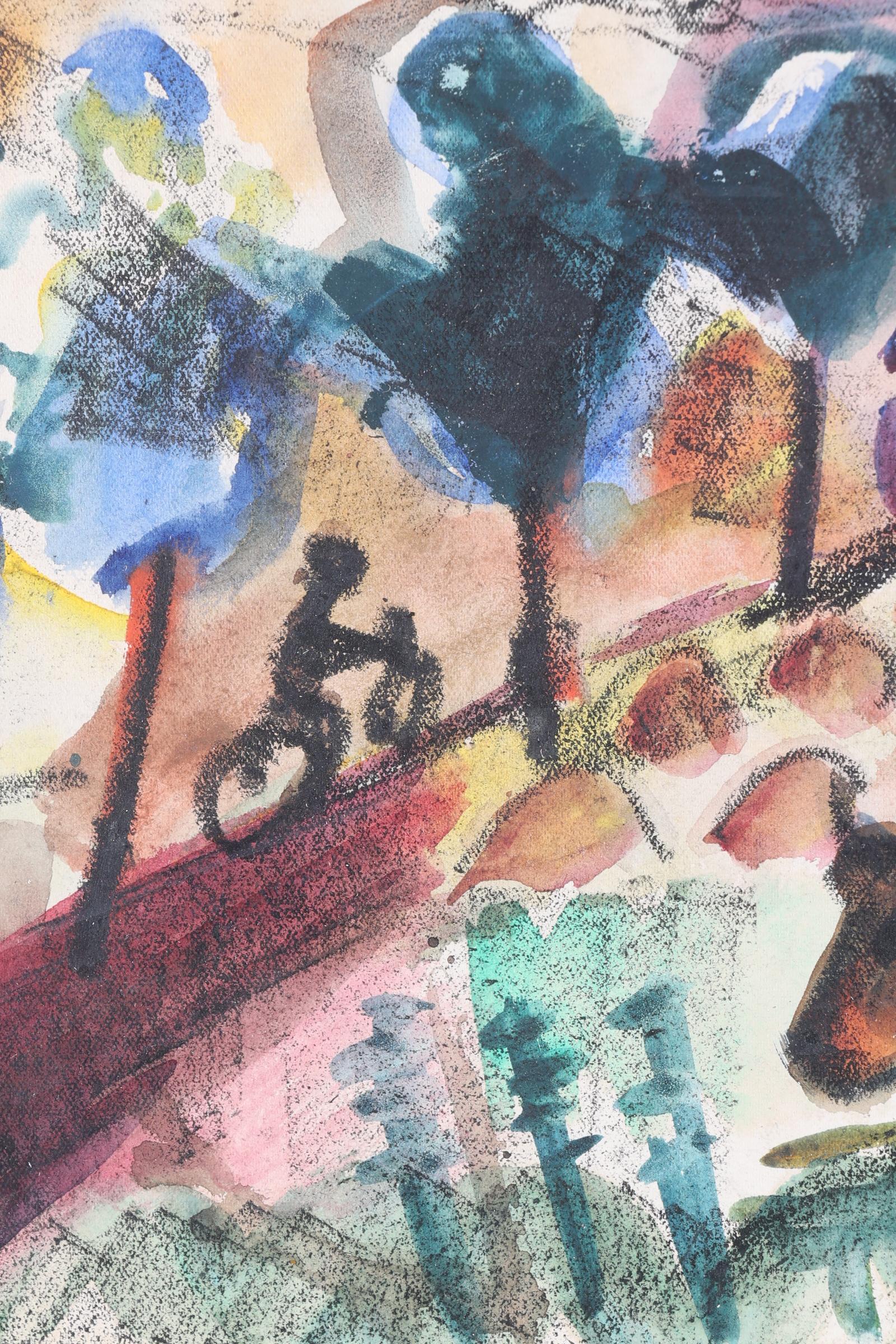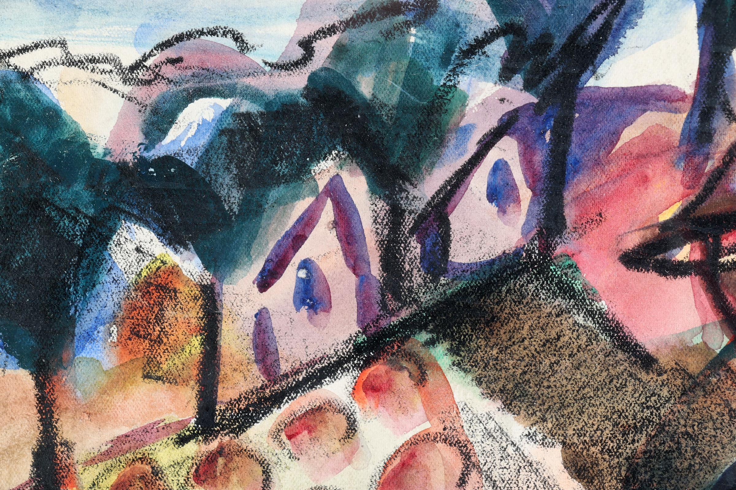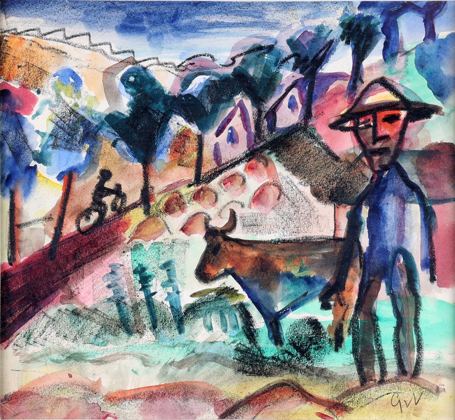 Geer van Velde (1898-1977), Boer met koe in landschap, gouache, 28 x 30 cm. Provenance: particuliere collectie