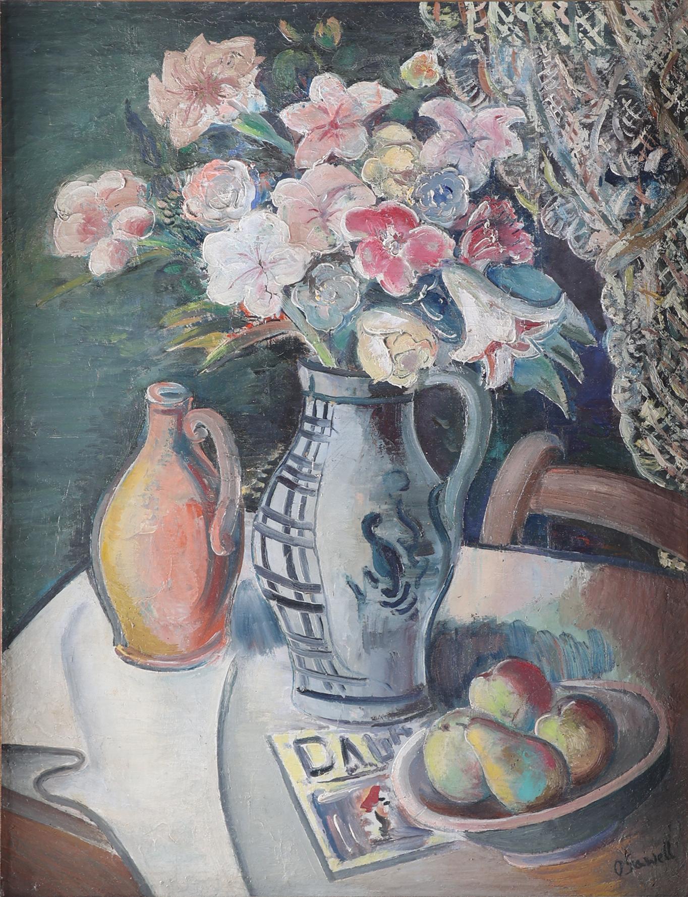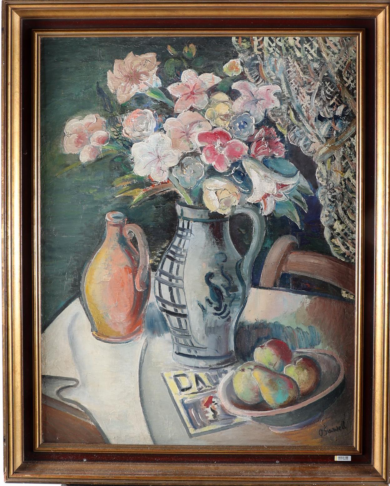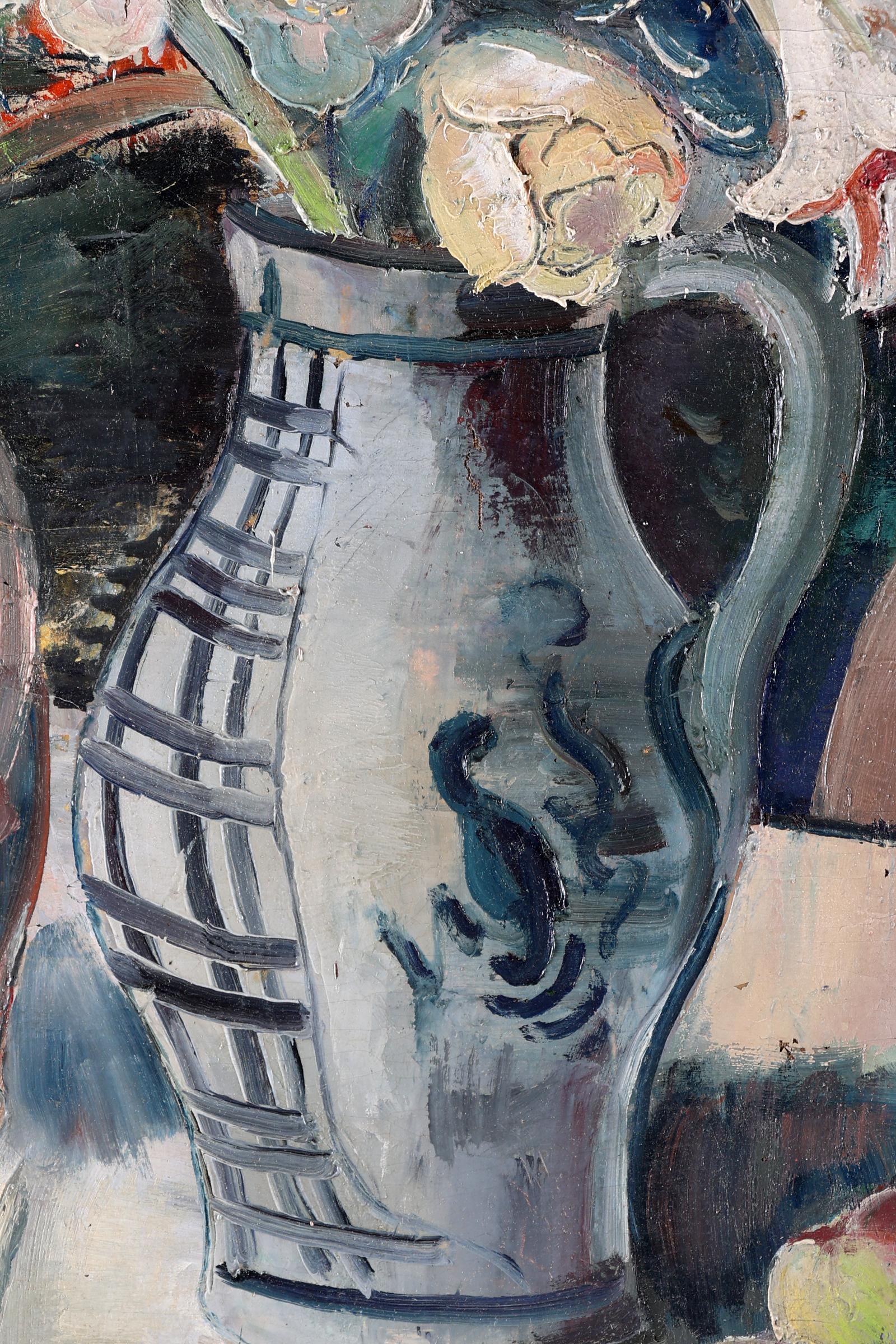 Oskar Gawell (1888-1955), Stilleven met bloemen in kan, olieverf op paneel, 83 x 64 cm. Provenance: privé collectie Museo Raset, Spanje / Bolland & Marotz Bremen Duitsland, geïllustreerd op pagina 51 catalogus december 2009