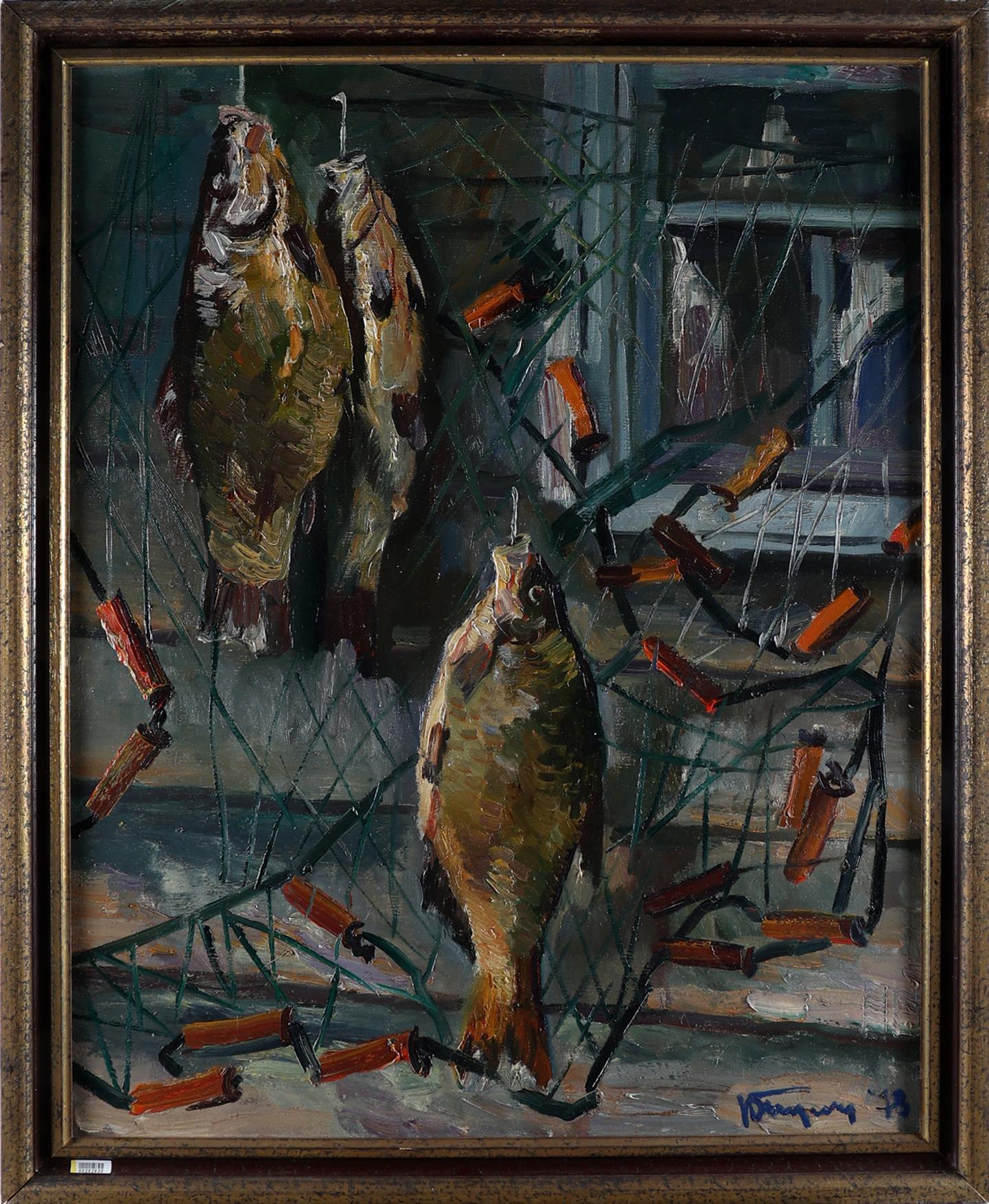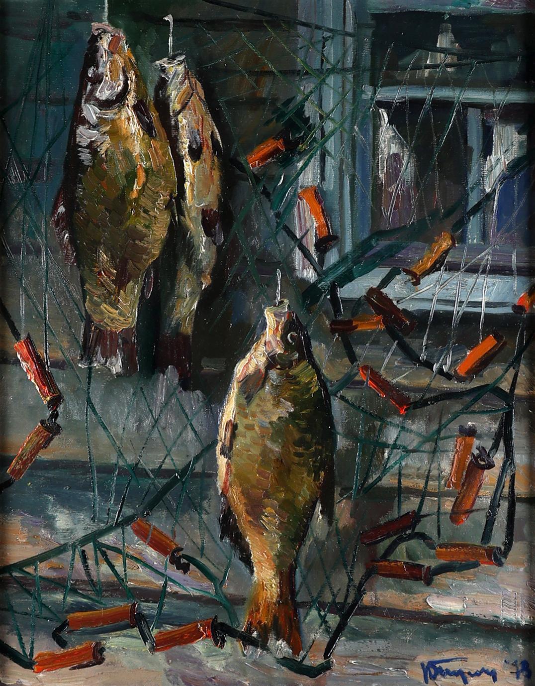 Yuri Tulin (1921-1983), Drying the Fish 1973, olieverf op doek, 90 x 70 cm.