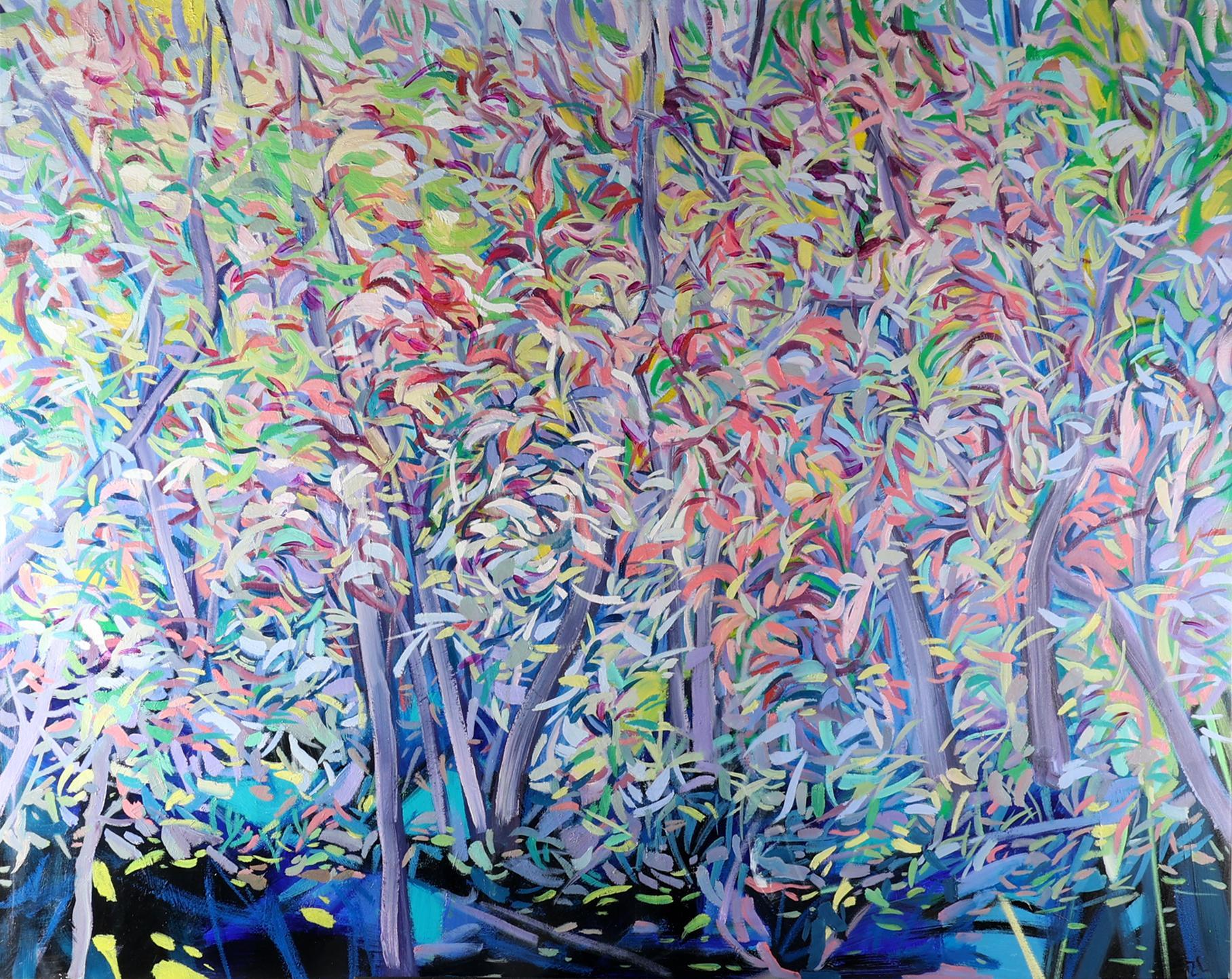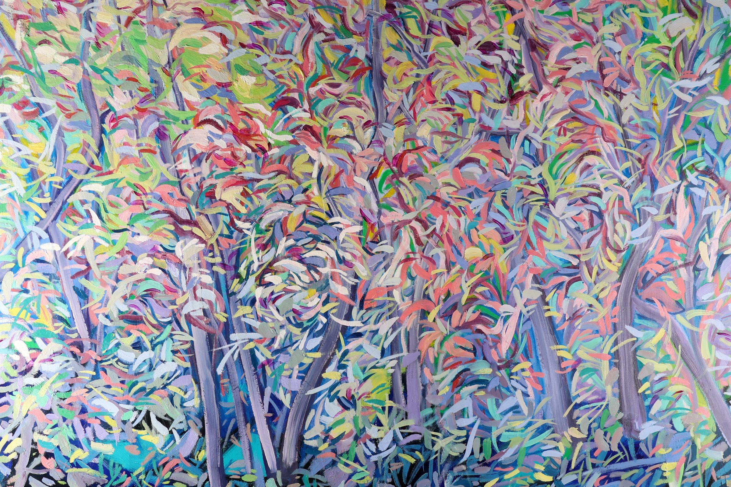 Li Zhu (1966), Born to the Sun-I, olieverf op doek, 120 x 150 cm. Nota bene: de hedendaagse kunstenaar Li Zhu creëert dynamische, abstracte bloemcomposities met krachtige penseelstreken en contrastrijke kleuren die fragiliteit en vitaliteit verbeelden. Zijn werk is tentoongesteld op vooraanstaande tentoonstellingen in Beijing, Shenzhen en Guangzhou.