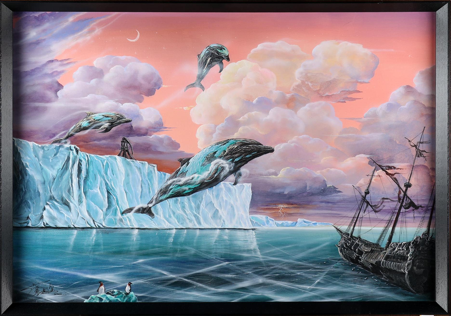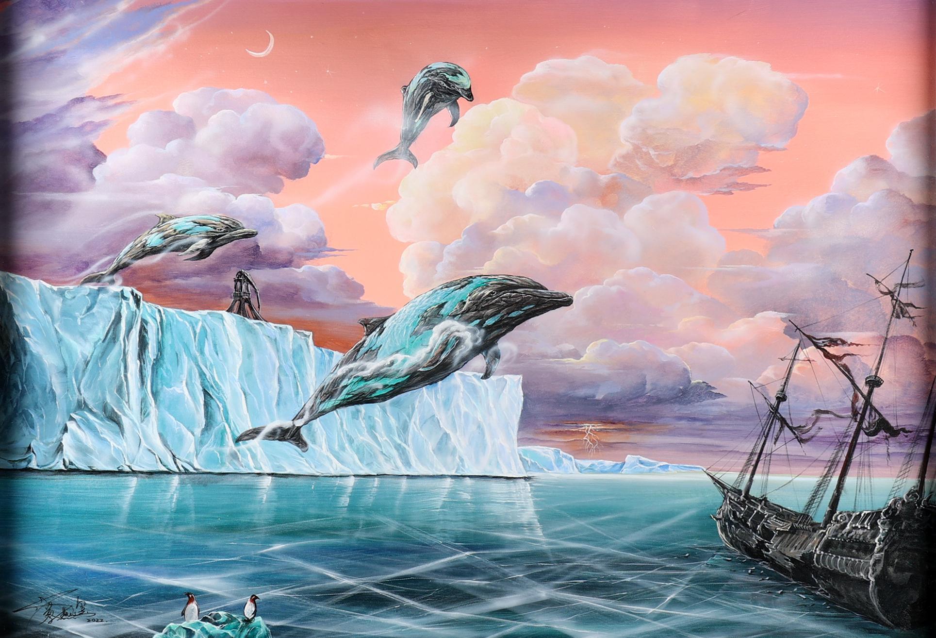 Yang Cai, Whale Dreams no 2, olieverf op doek, 68,5 x 100,5 cm. Nota bene: de hedendaagse kunstenaar Yang Cai gebruikt zijn surrealistische serie ‘Whale Dreams’ om bewustzijn te creëren over de klimaatcrisis en oceaanvervuiling. Zijn werk werd onder meer getoond op AAF Amsterdam 2023 en de Shenzhen Damen International Oil Painting Biennale 2022