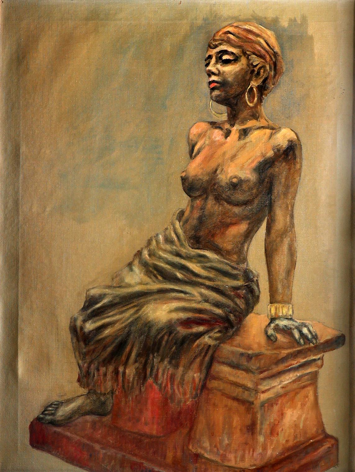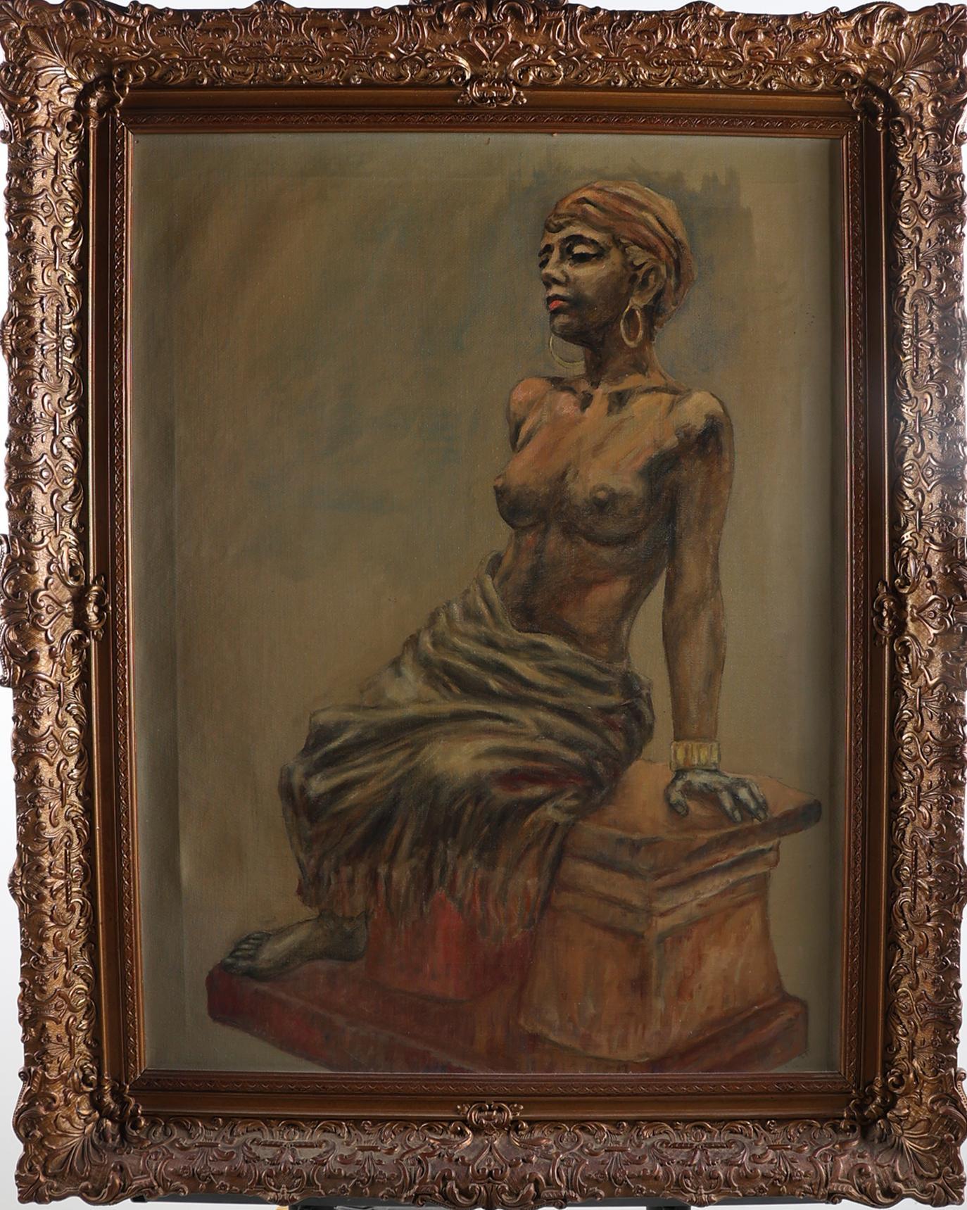 Ond.gesign., Naakt op zuil, olieverf op doek, 80 x 60 cm.