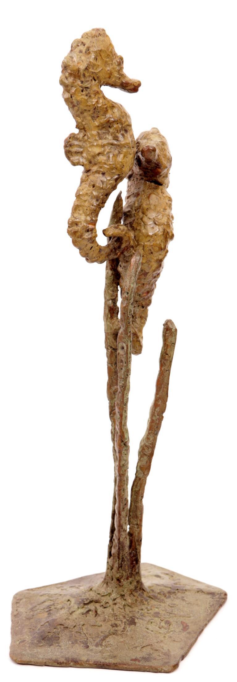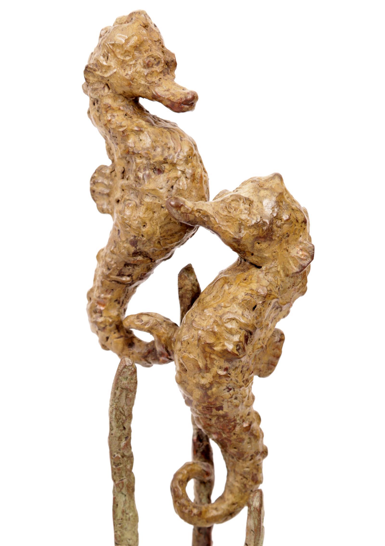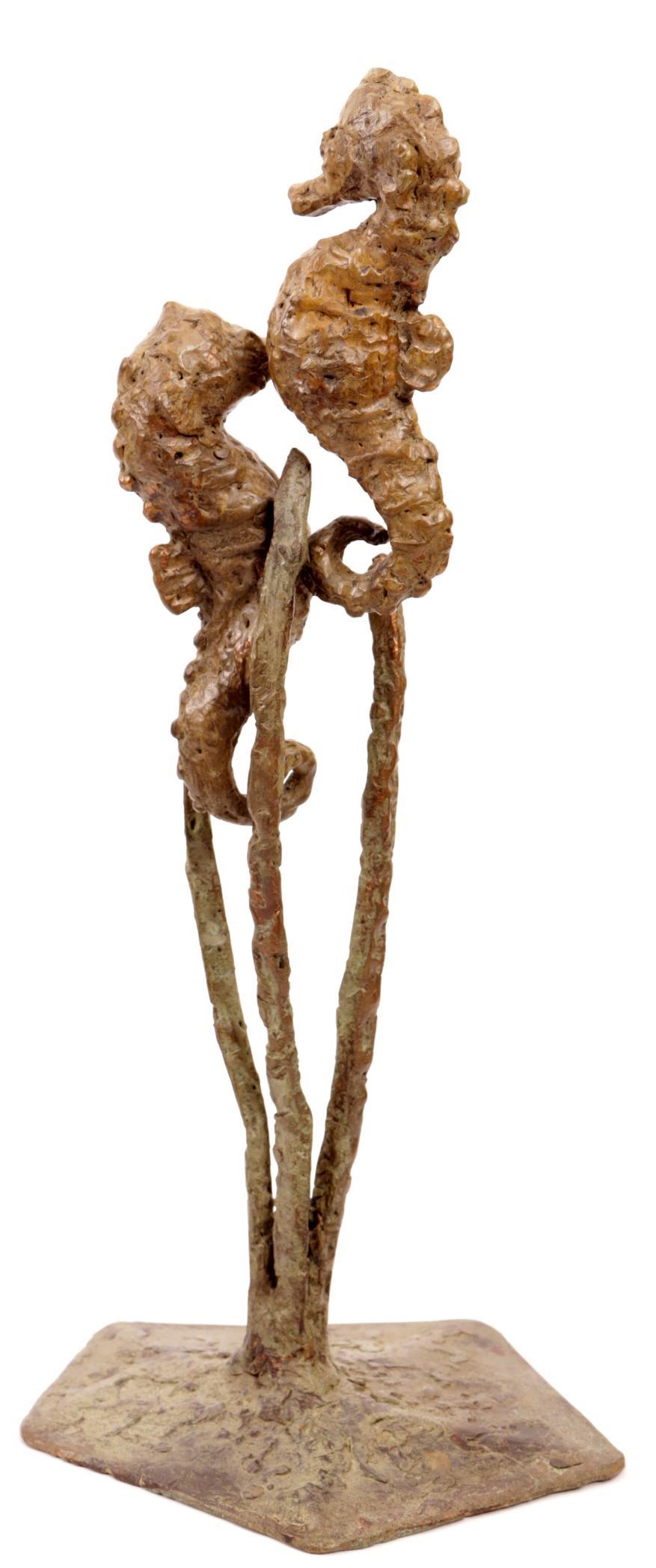 Jourt, bronzen sculptuur van twee zeepaardjes, h.39 cm.