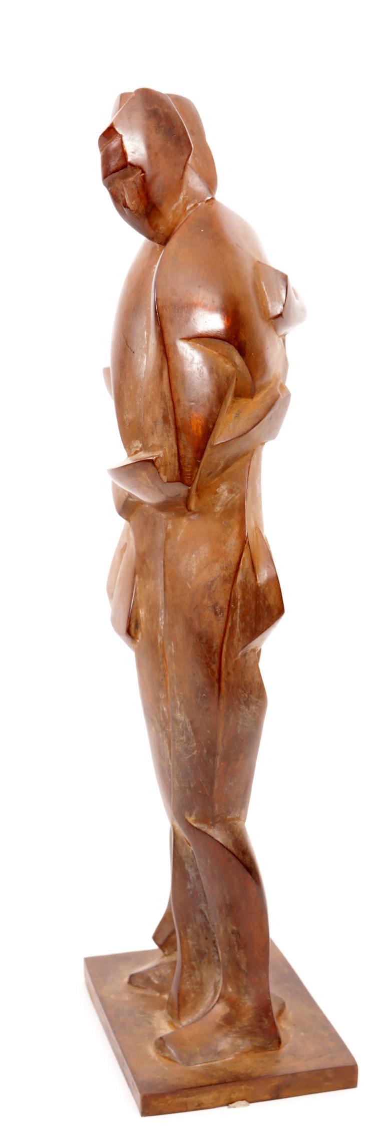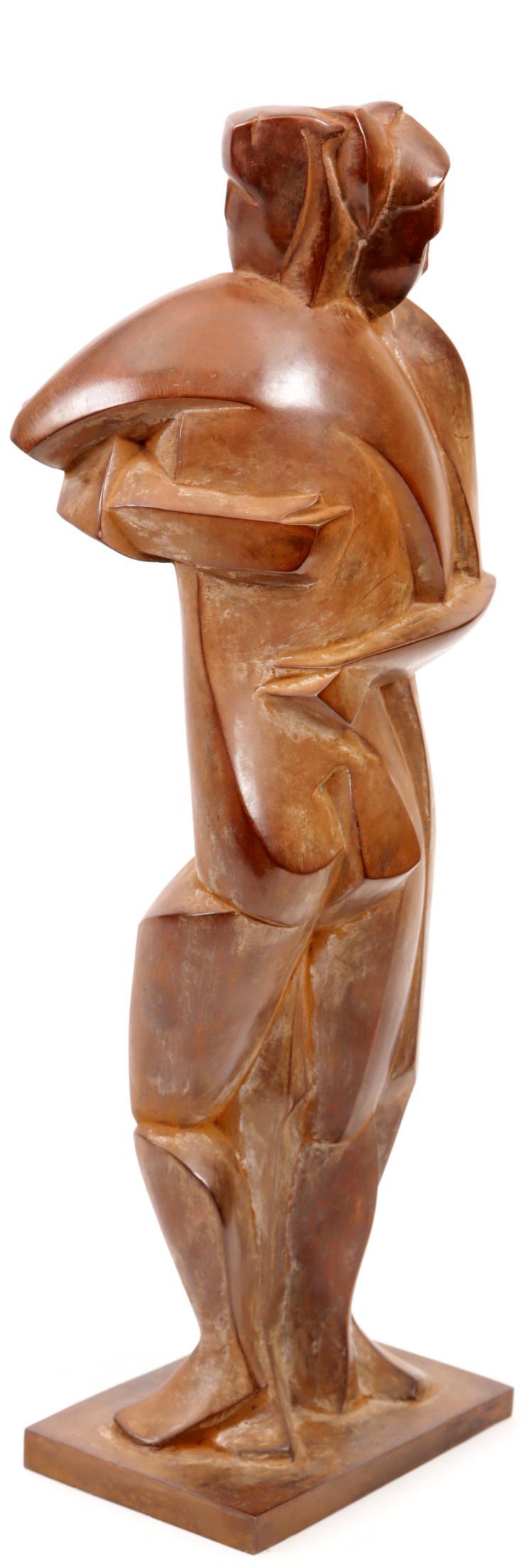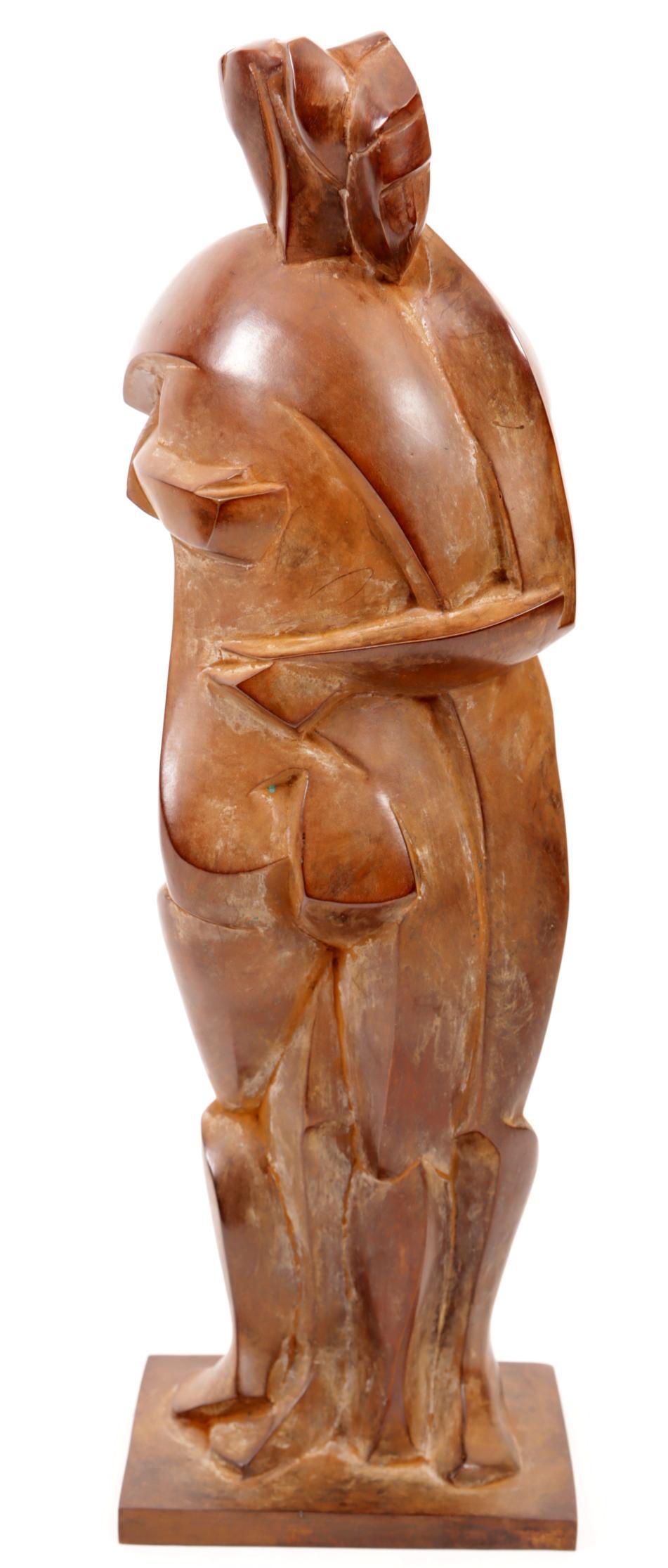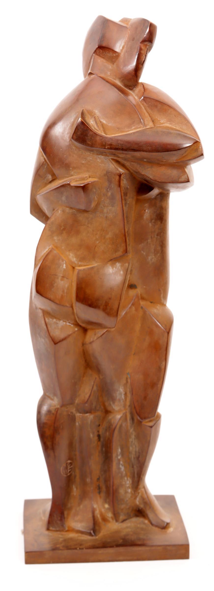 Margriet Barends, Kubistische bronzen sculptuur (Hug), h.39 cm.