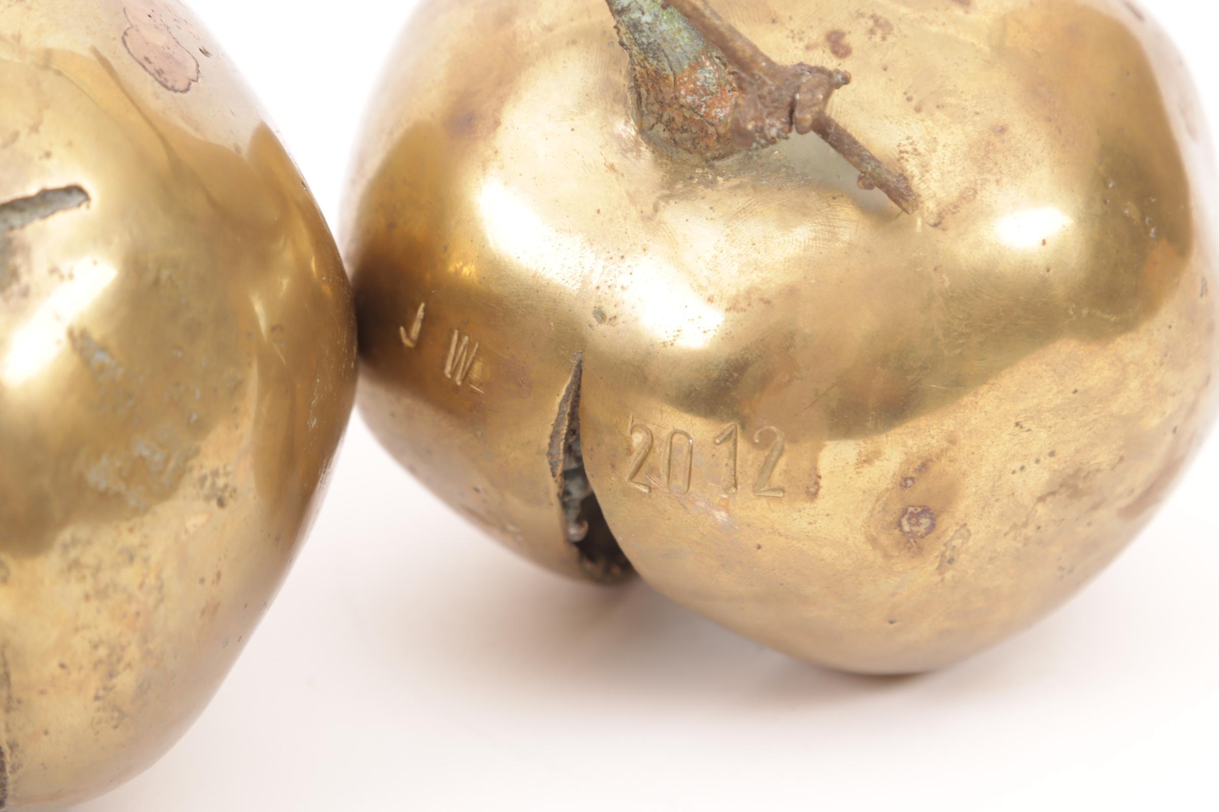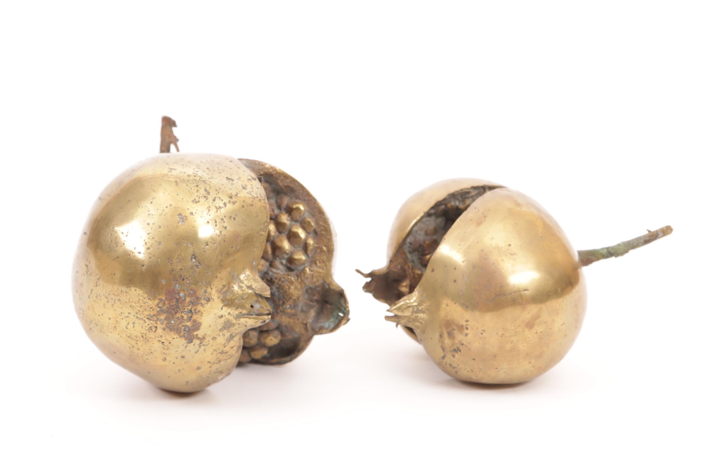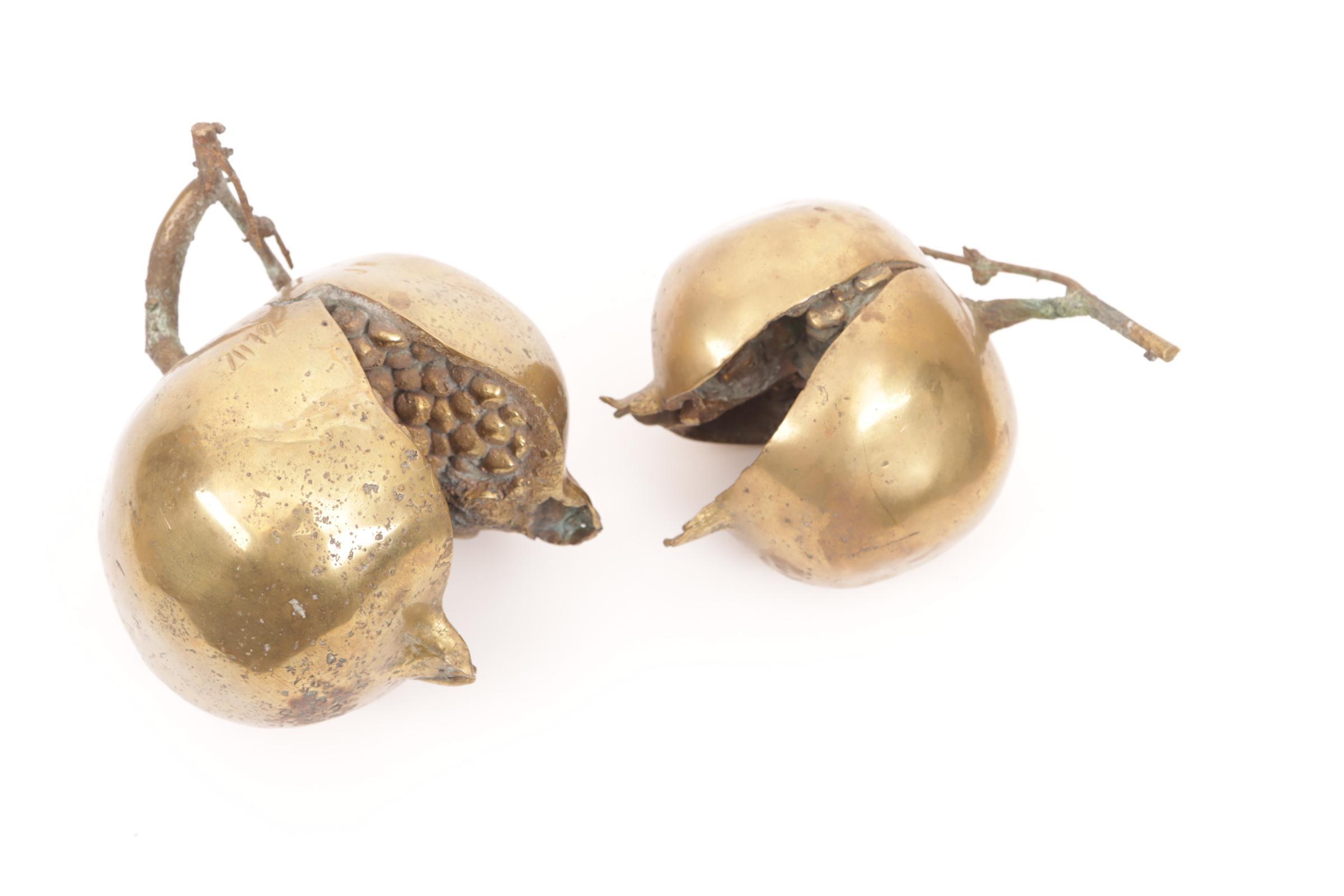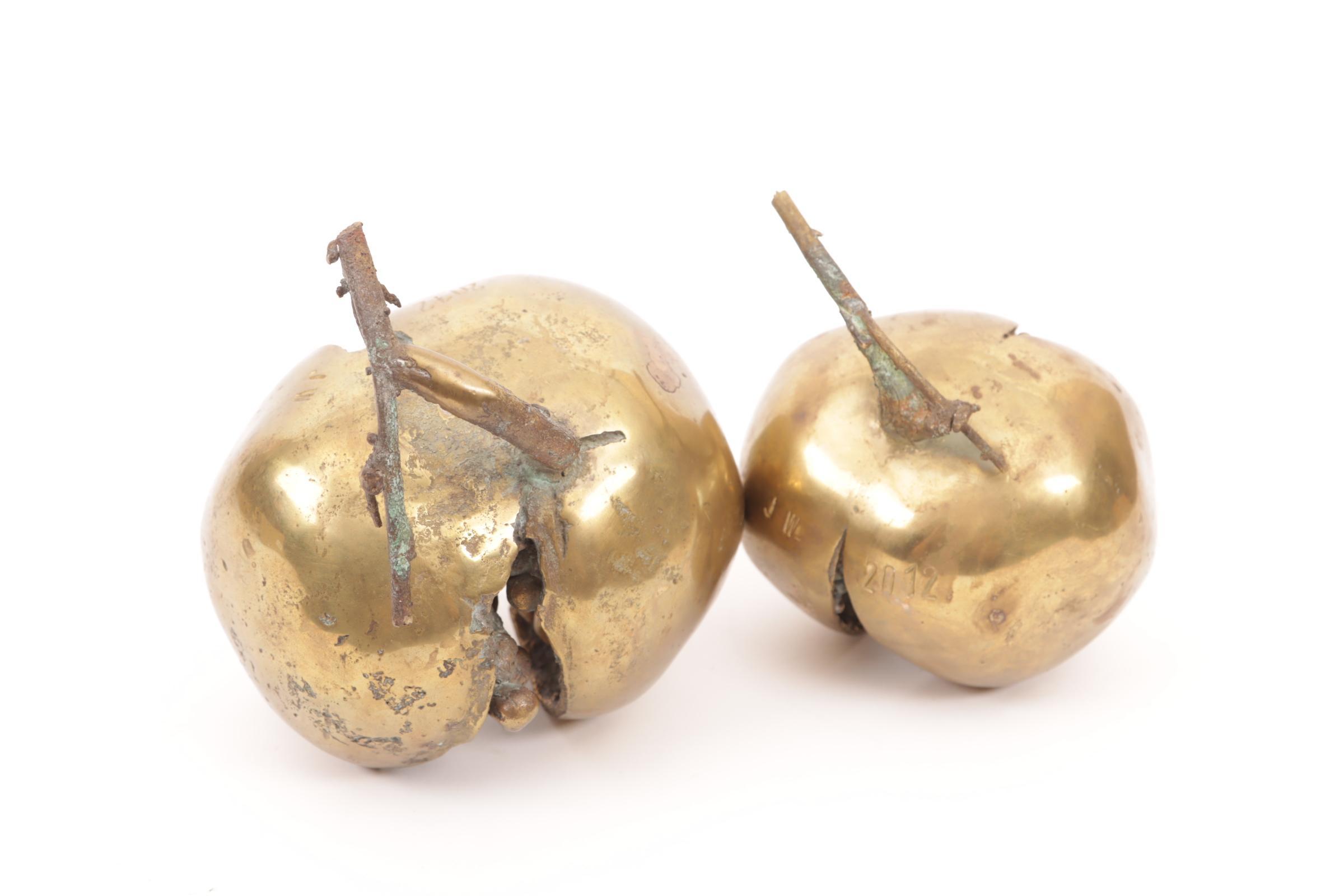 Joop Witteveen, 2 bronzen sculpturen van granaatappel, gedateerd 2012, h.14 en 9 cm.