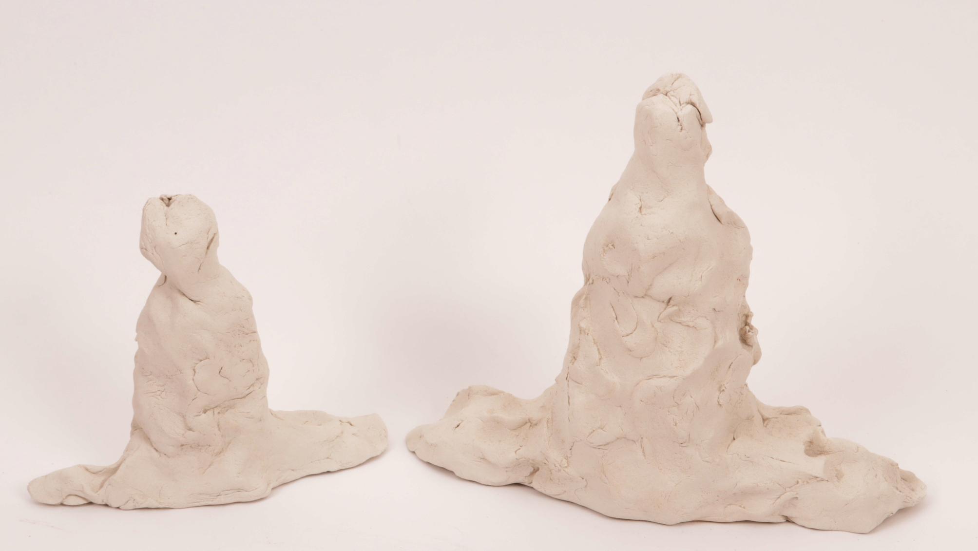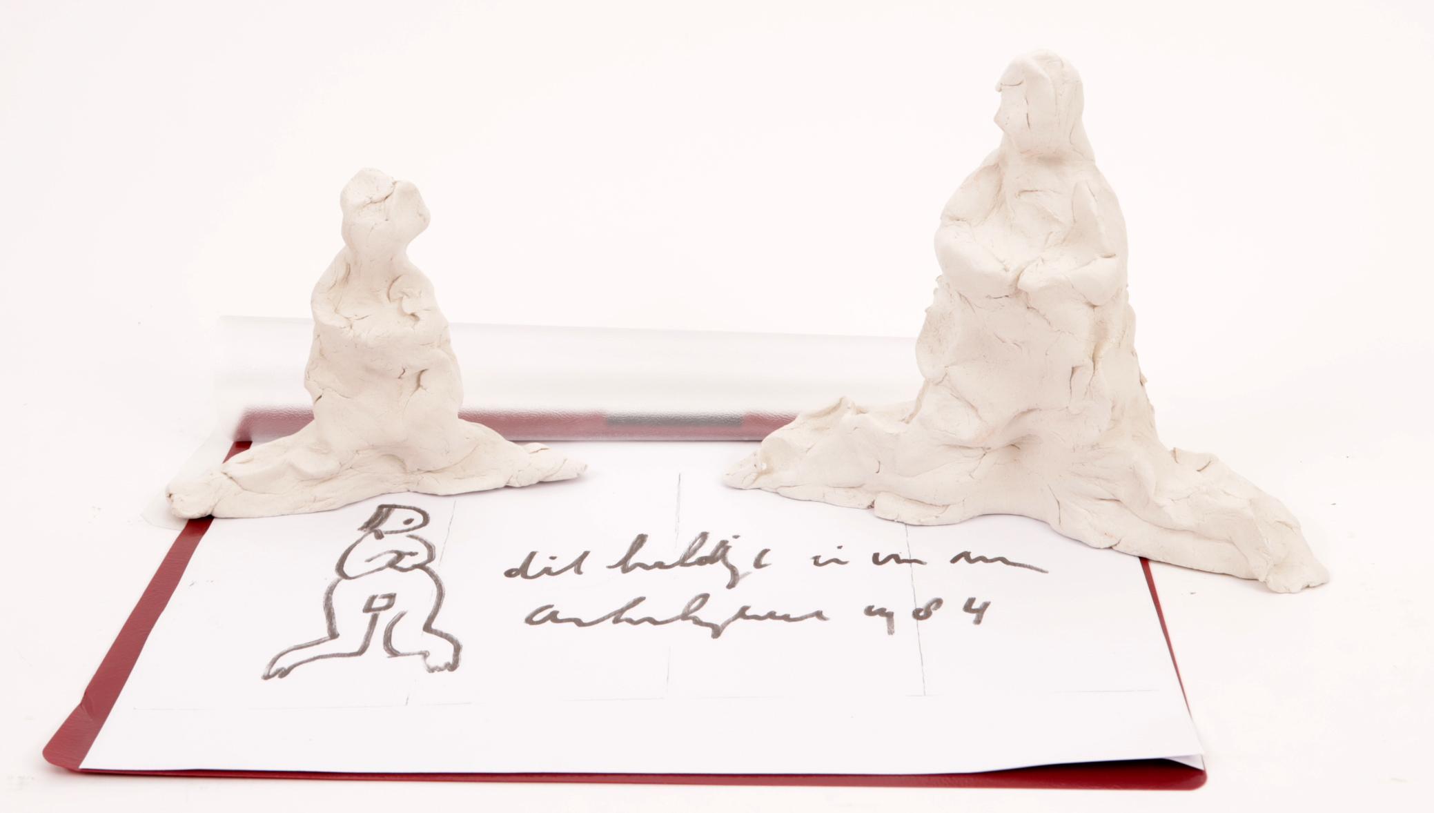 Anton Heijboer, Twee klei beeldjes, gedateerd en gesigneerd aan onder kant, 1984