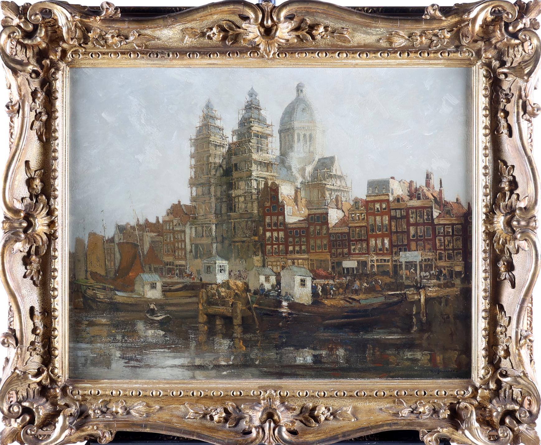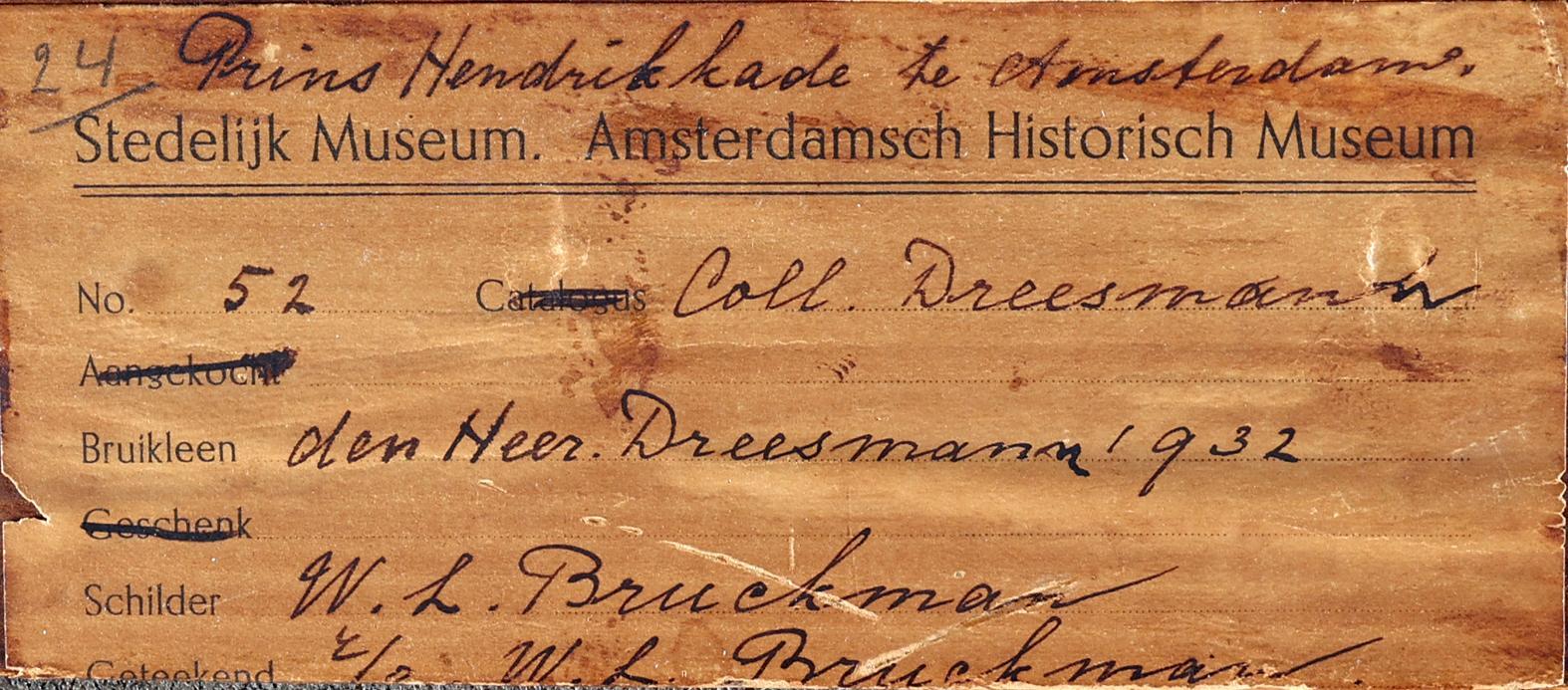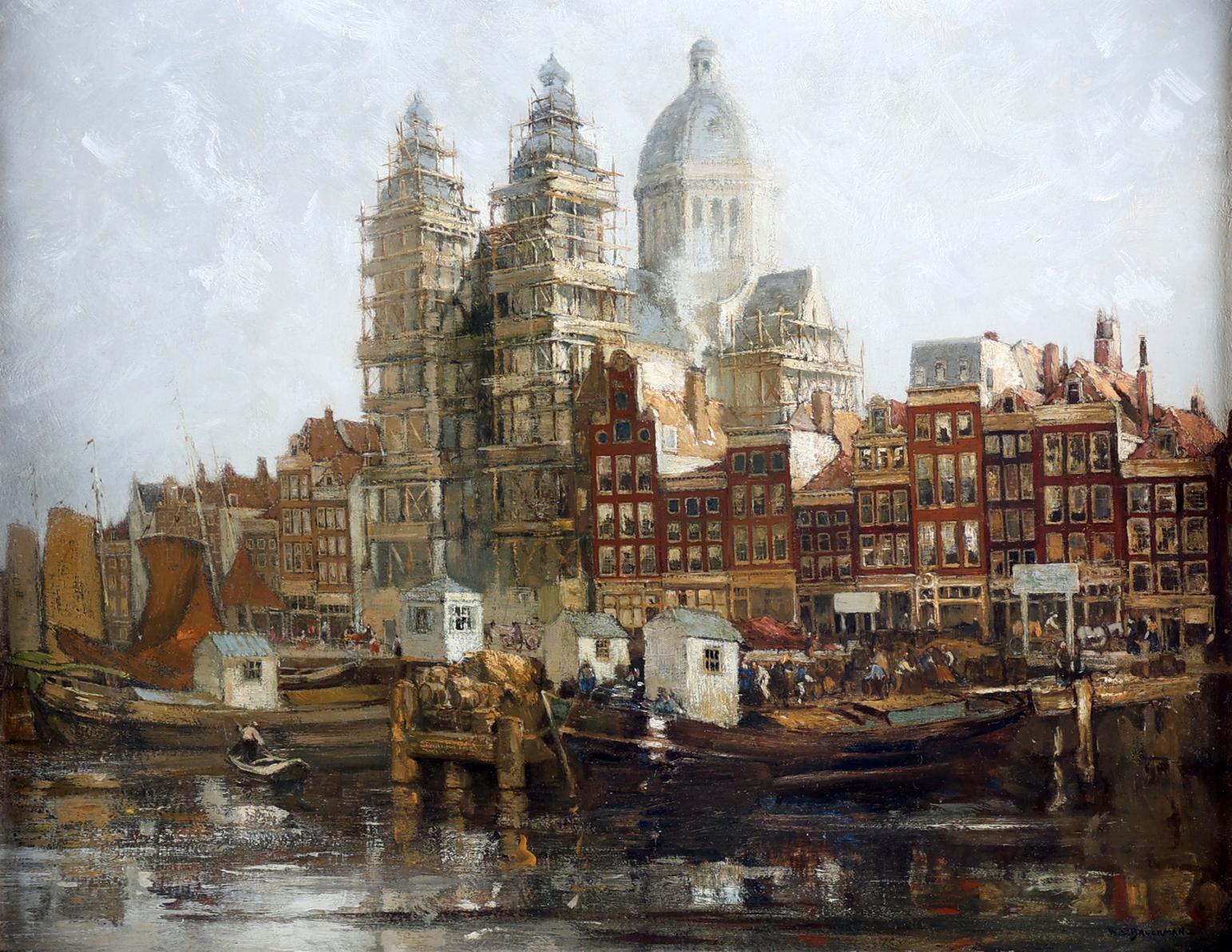 Willem Leonard Bruckman (1866-1928), Zicht op de prins Hendrik kade te Amsterdam, olieverf op doek, 70 x 53 cm., provenance particuliere collectie/collectie Dreesmann, note : tentoongesteld Stedelijk Museum, Amsterdam, 1932