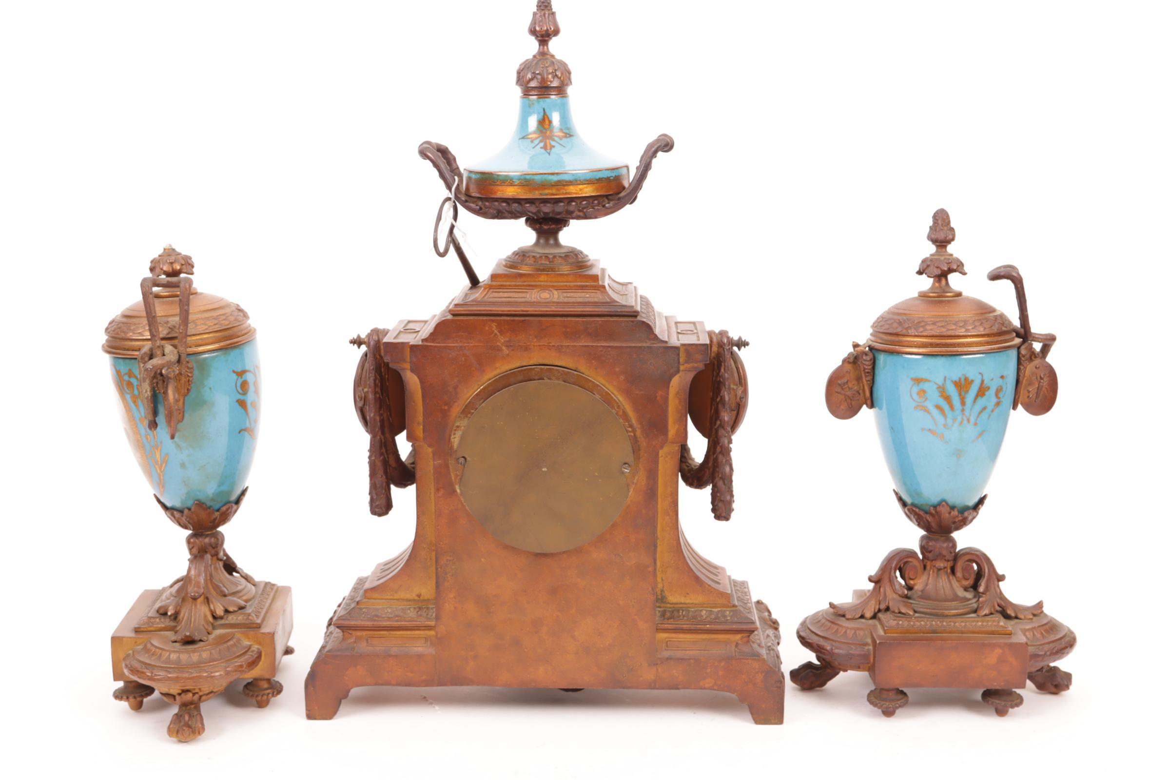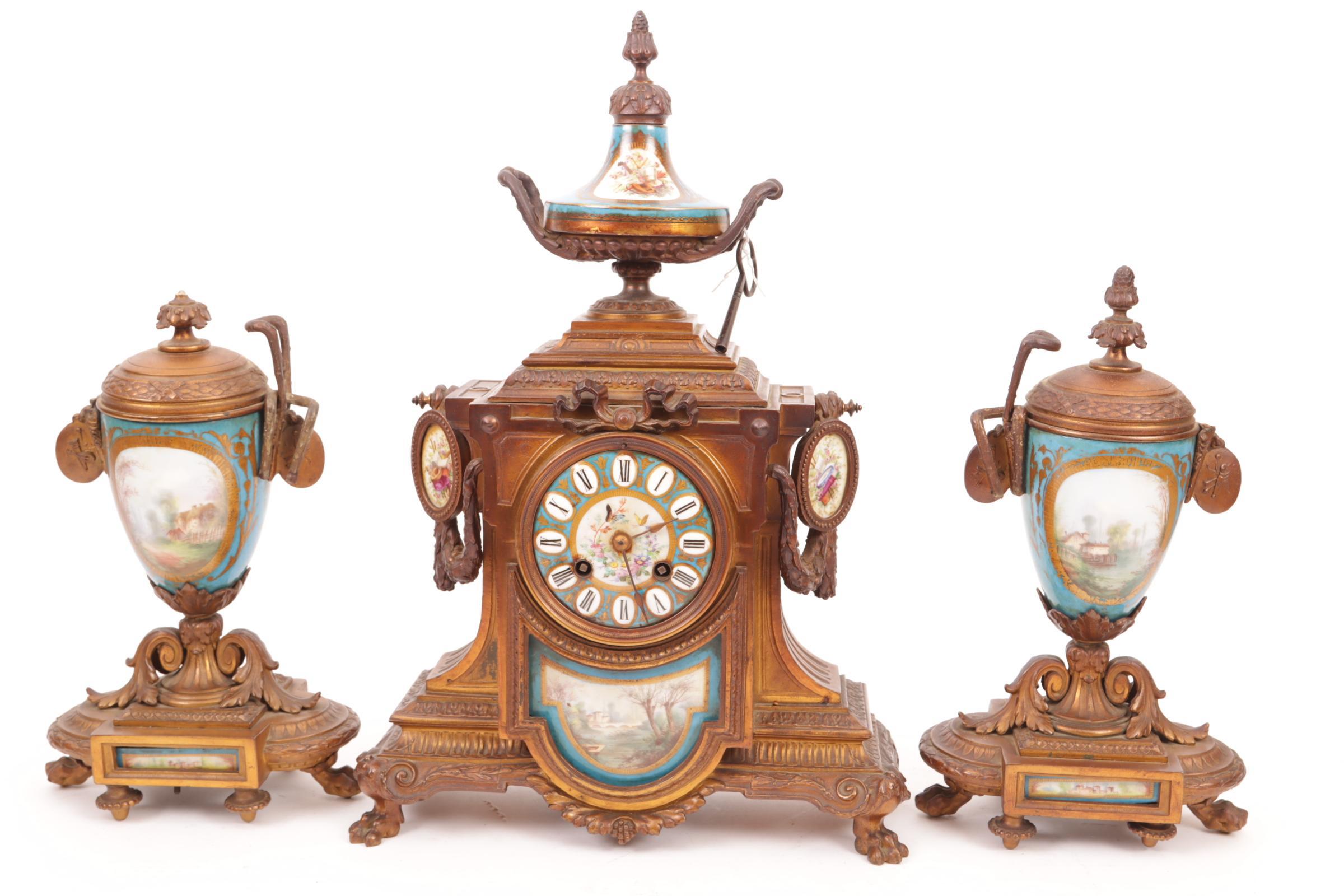 Gedecoreerde legering 3-delig klokkenstel met porseleinen plaquettes (defecten)