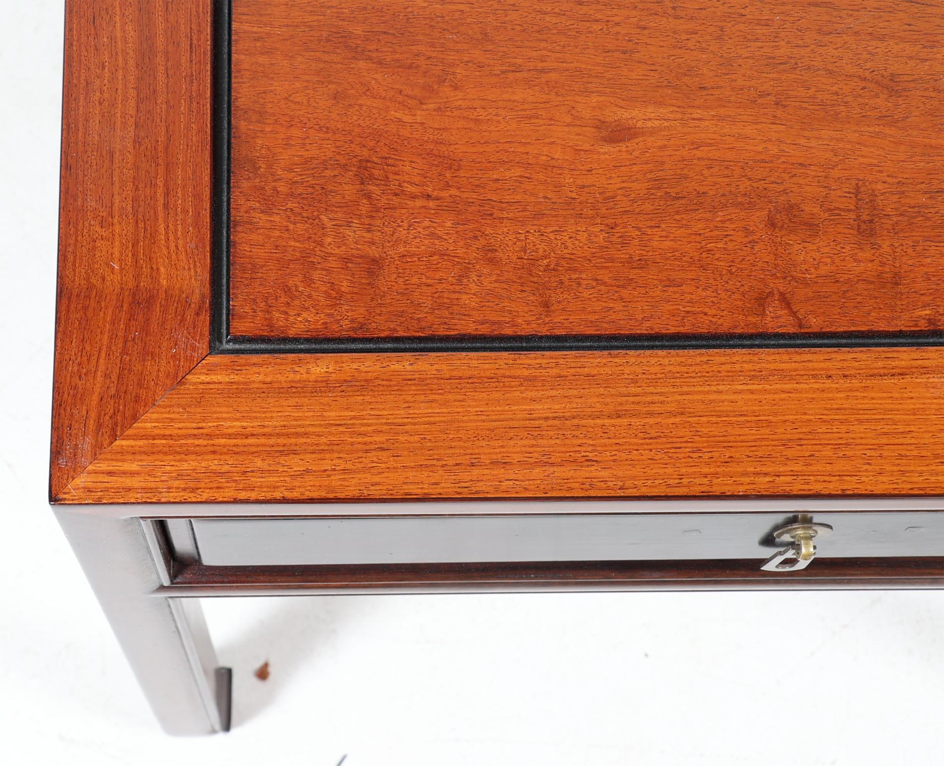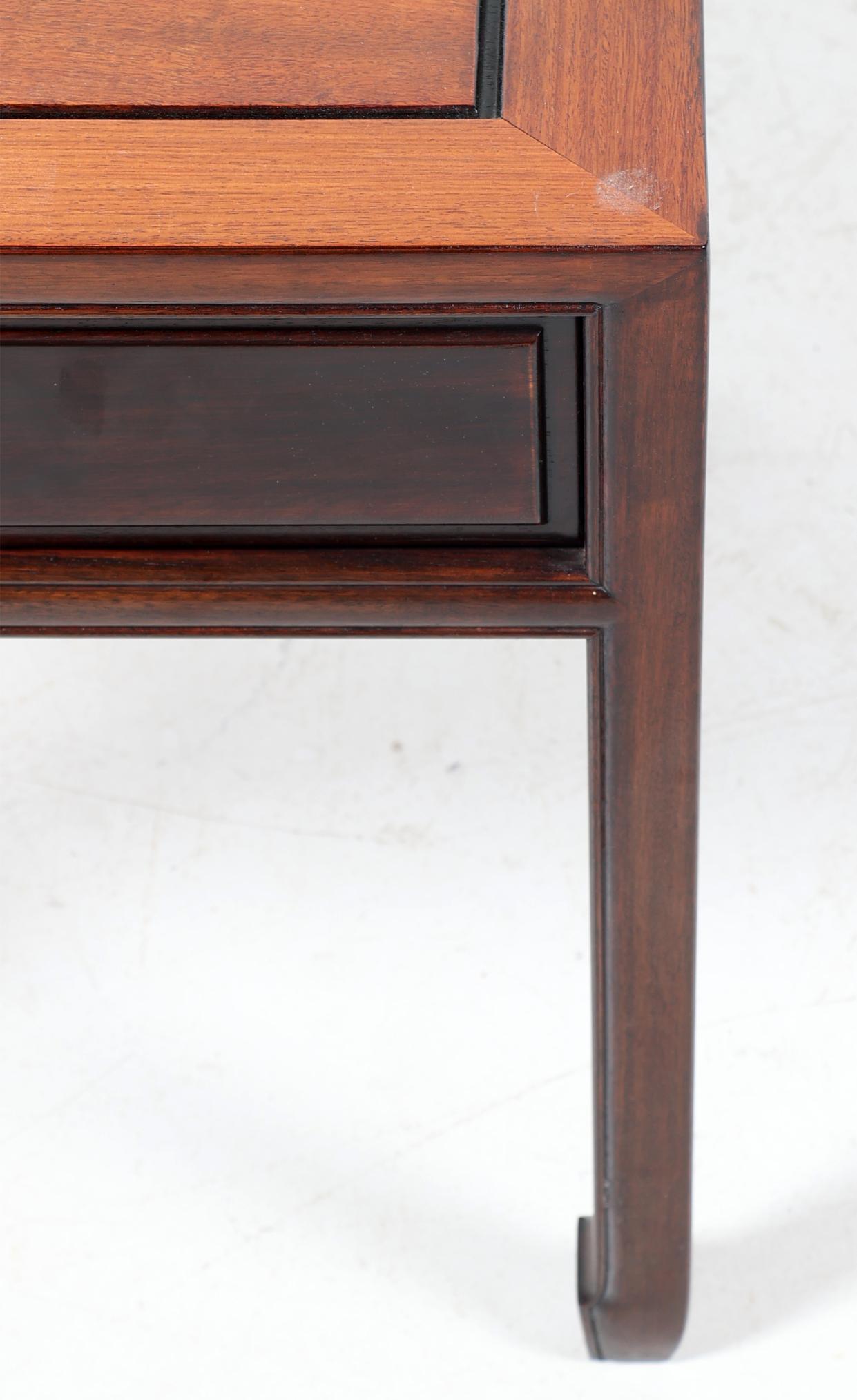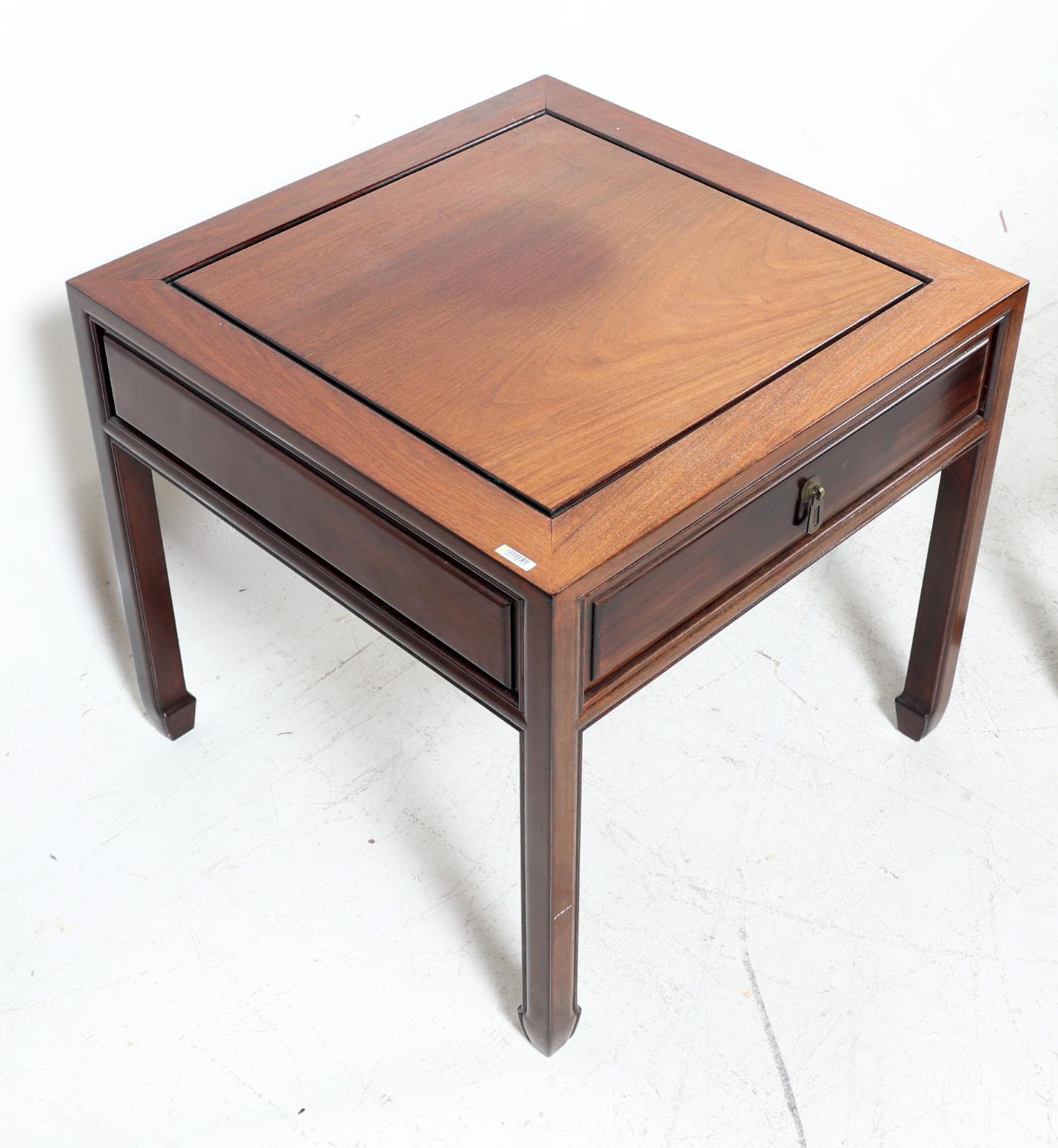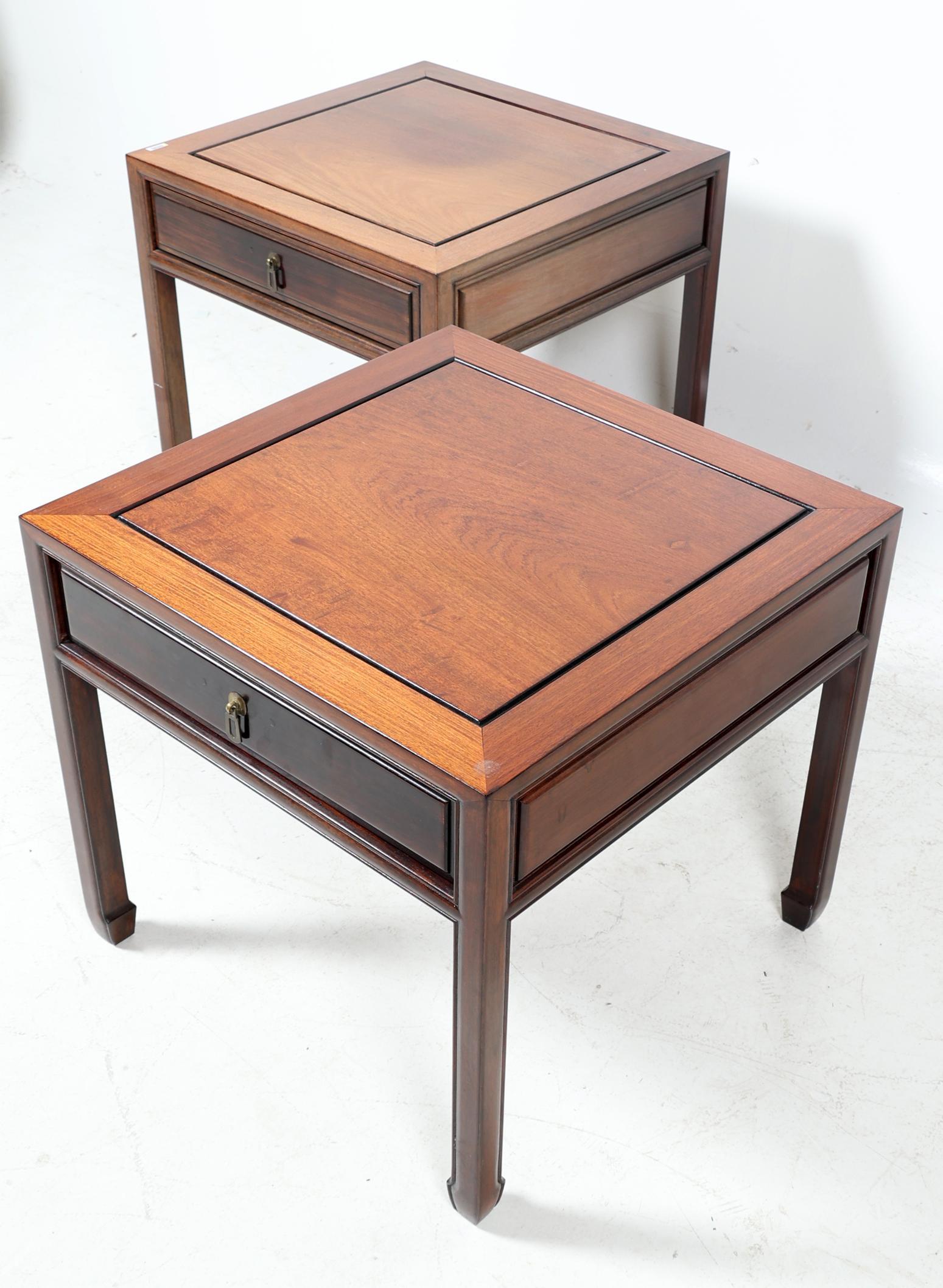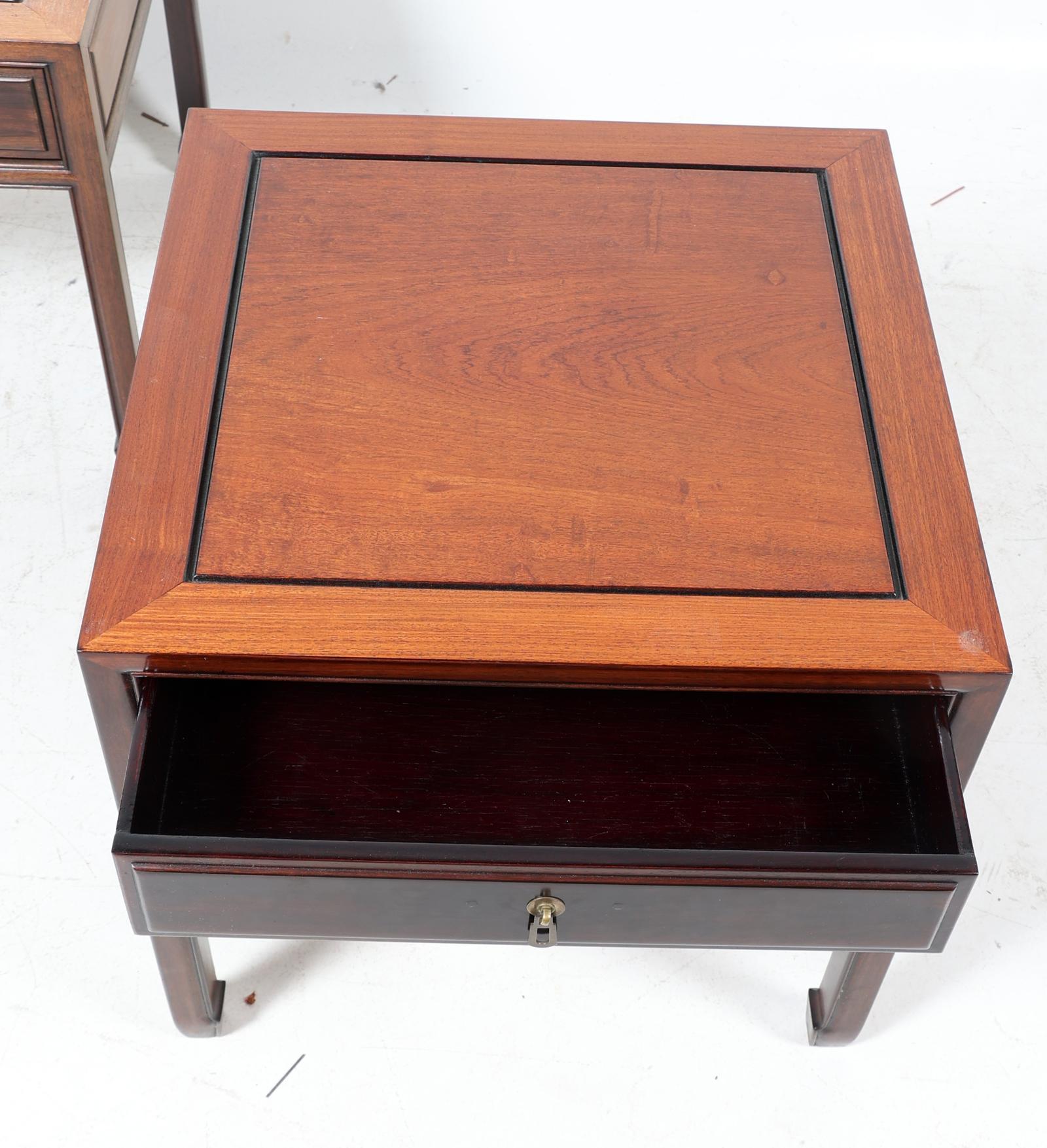 2 Oosterse hardhouten bijzettafels met lade, h.56 x b.60 x d.60 cm.