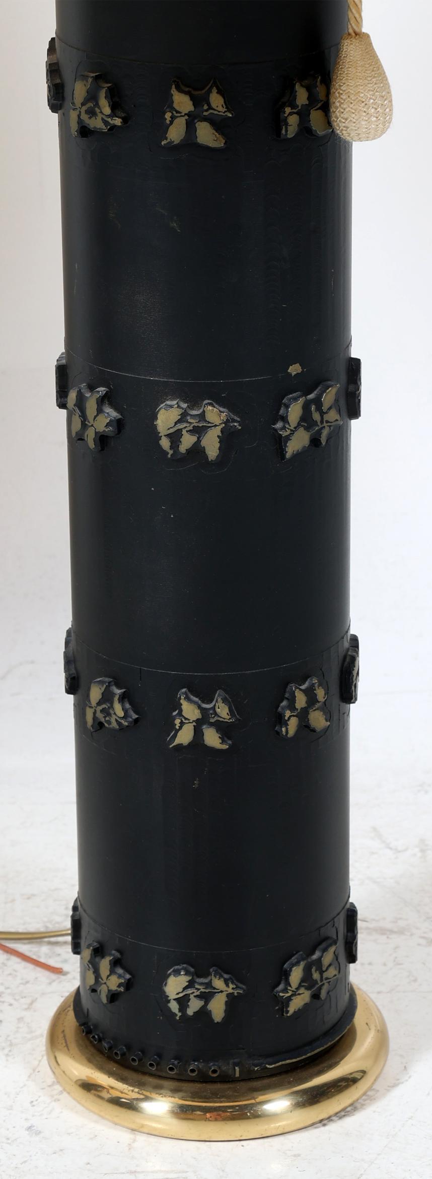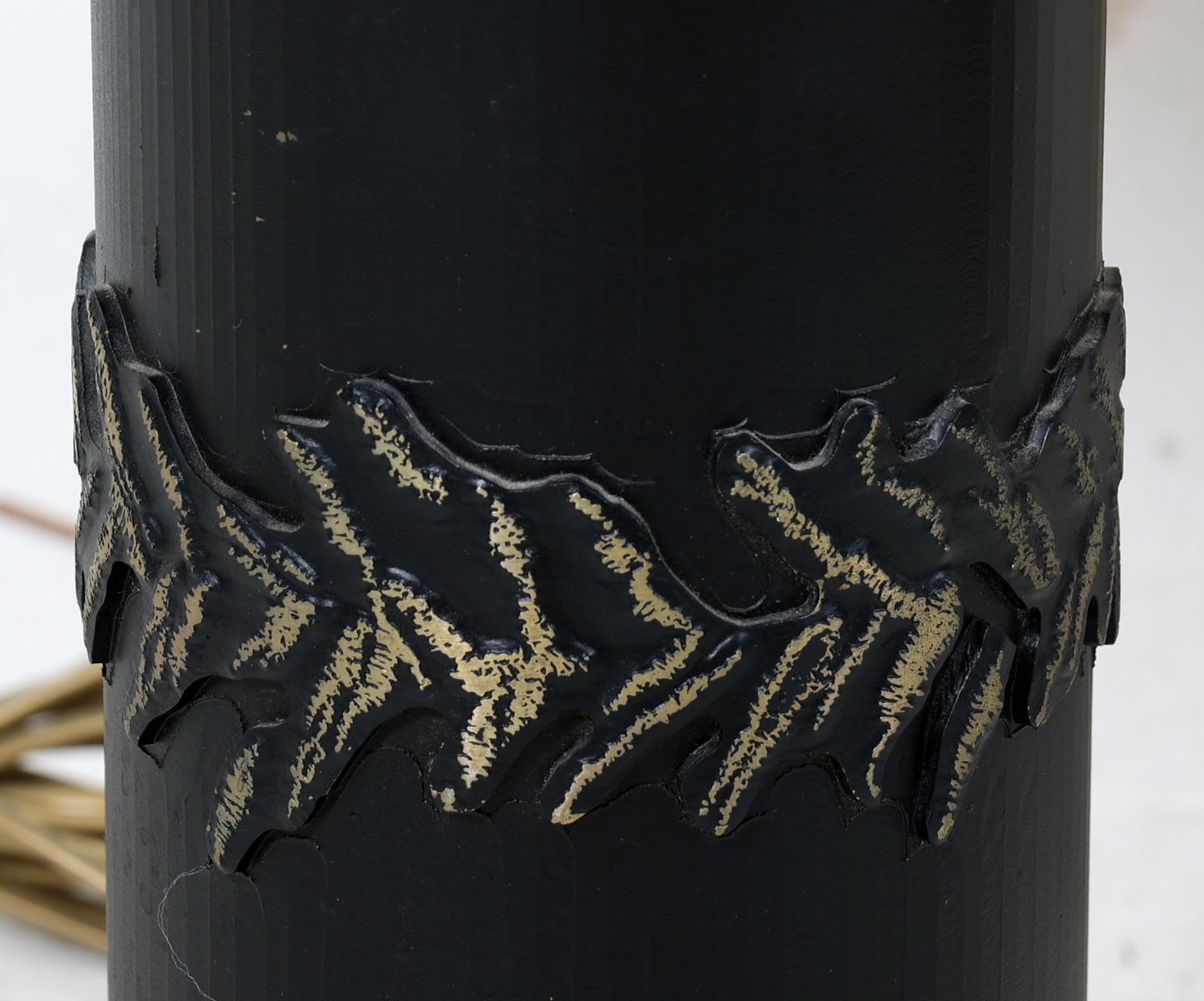 2 Grote metalen schemerlampvoeten vervaardigd met behangperser, h.98 cm.
