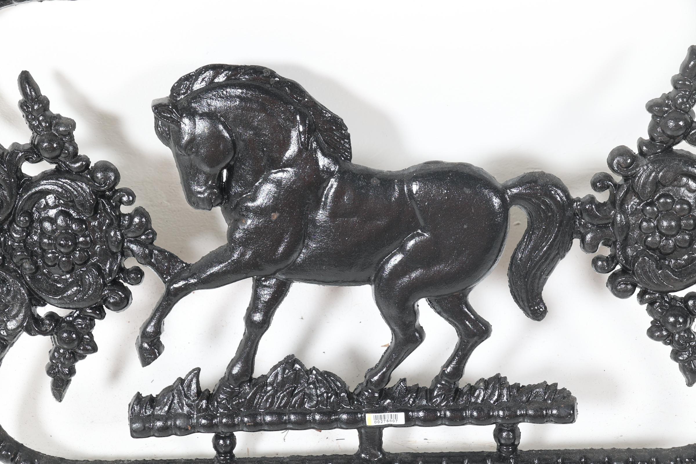 Zwart gelakt metalen stalruit decoratie van een paard, h.49 x b.68 cm.