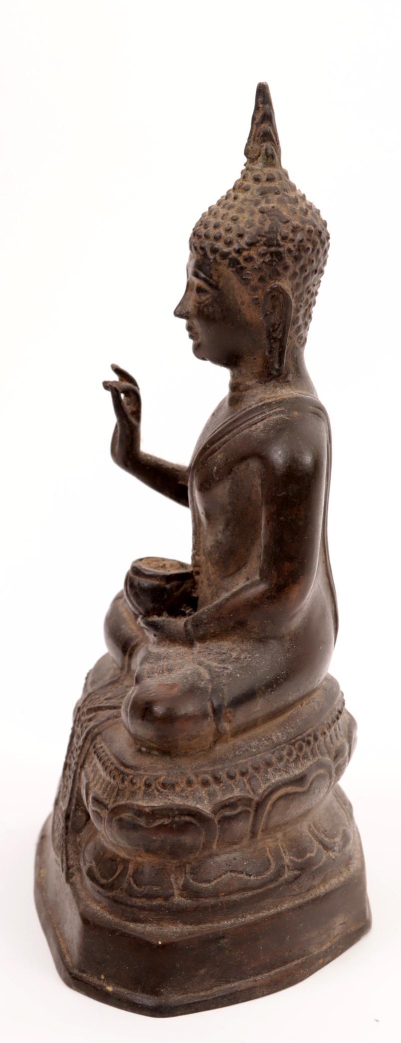 Bronzen beeld van een zittende Boeddha, h.24 cm.