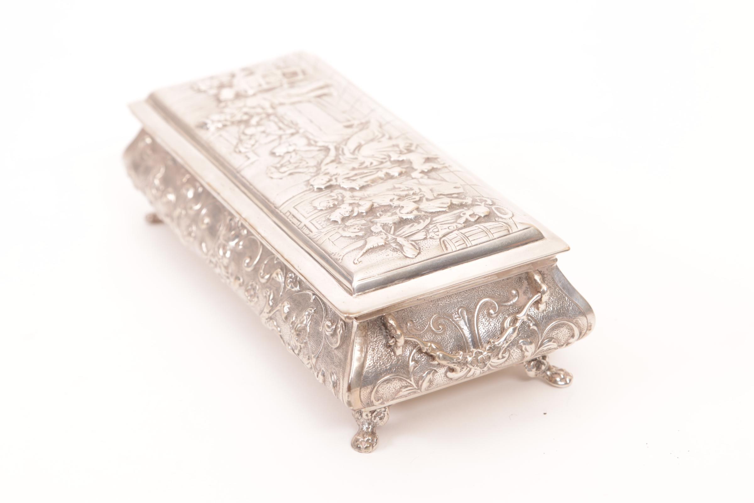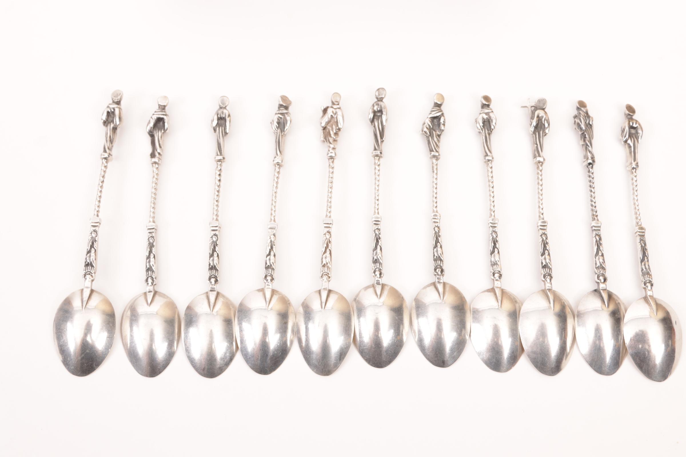 2e Gehalte zilveren lepeldoosje met daarin 11 zilveren apostellepeltjes, totaalgewicht 424 gram.