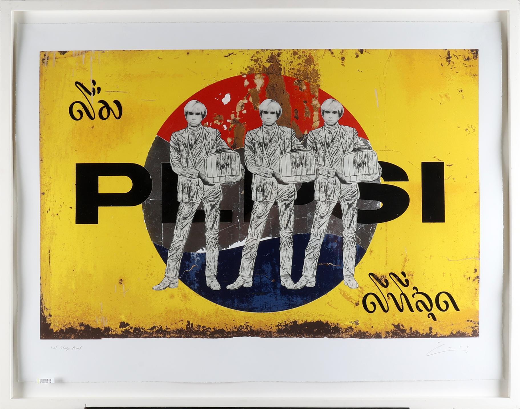 Pakpoom Silaphan CV (1972), Warhol on Pepsi (2011), handgesigneerde zeefdruk met bladzilver, 51,5 x 78,5 cm.