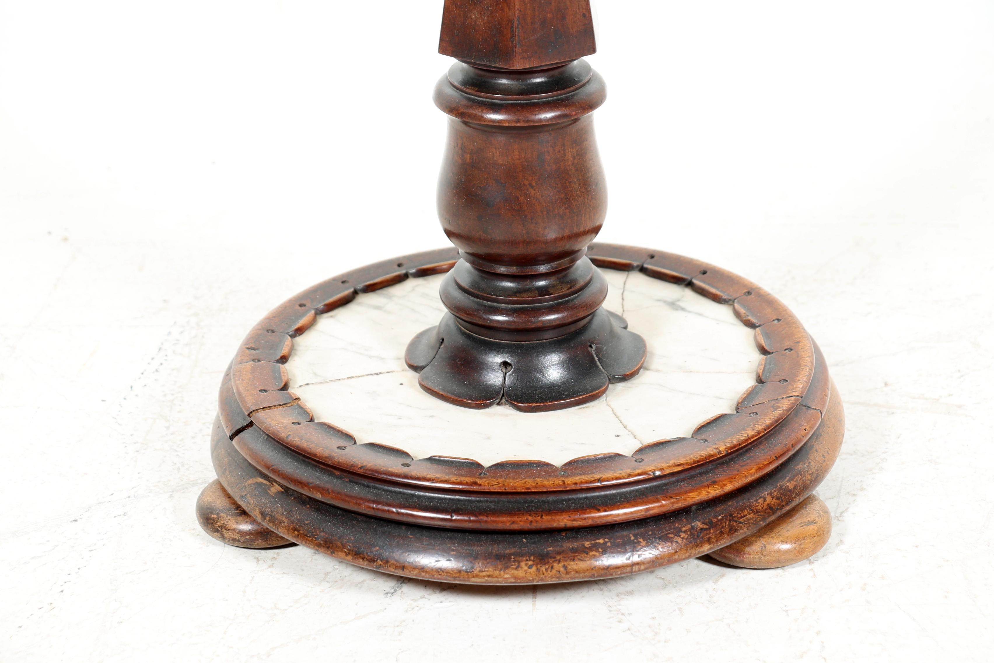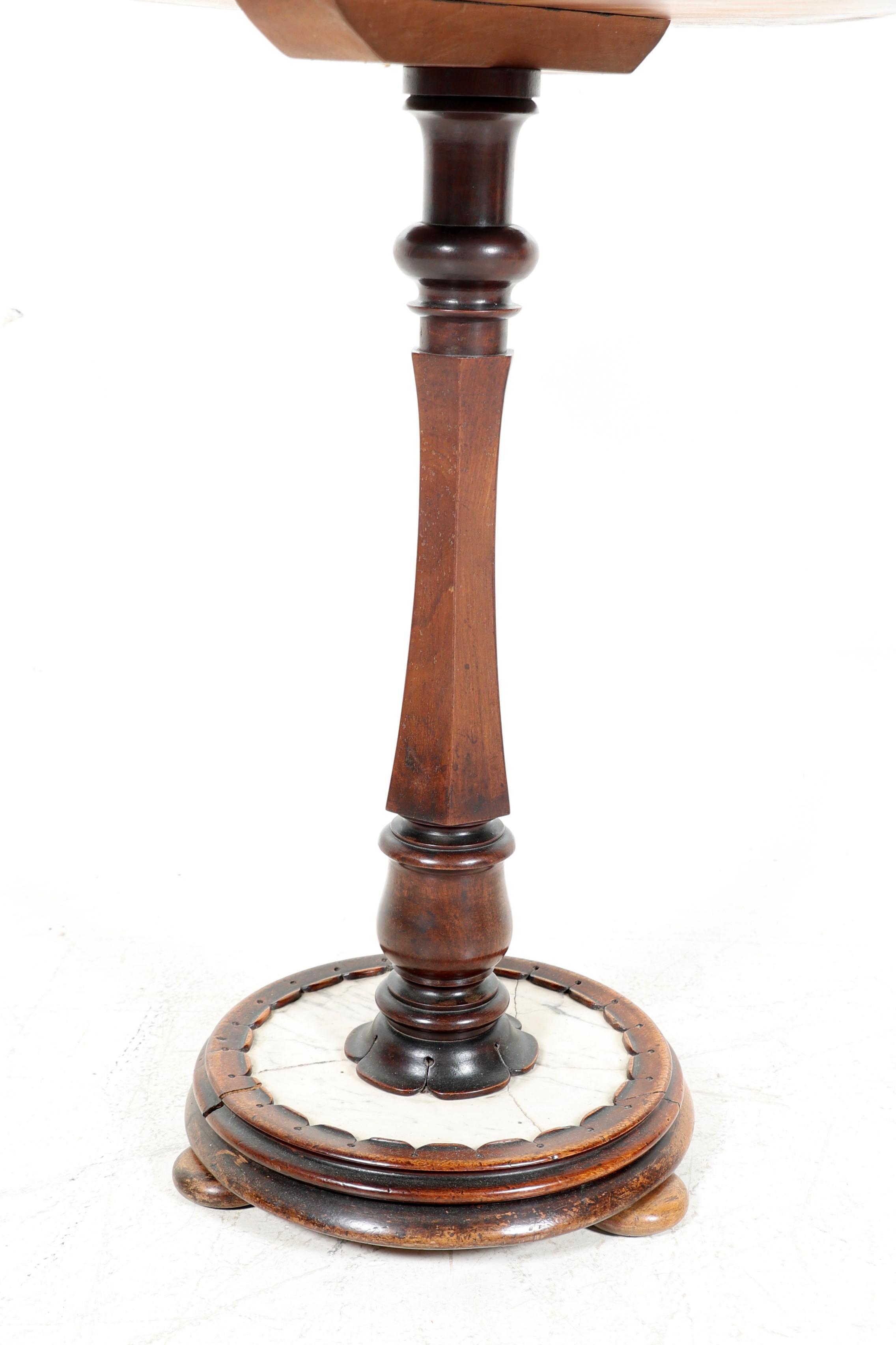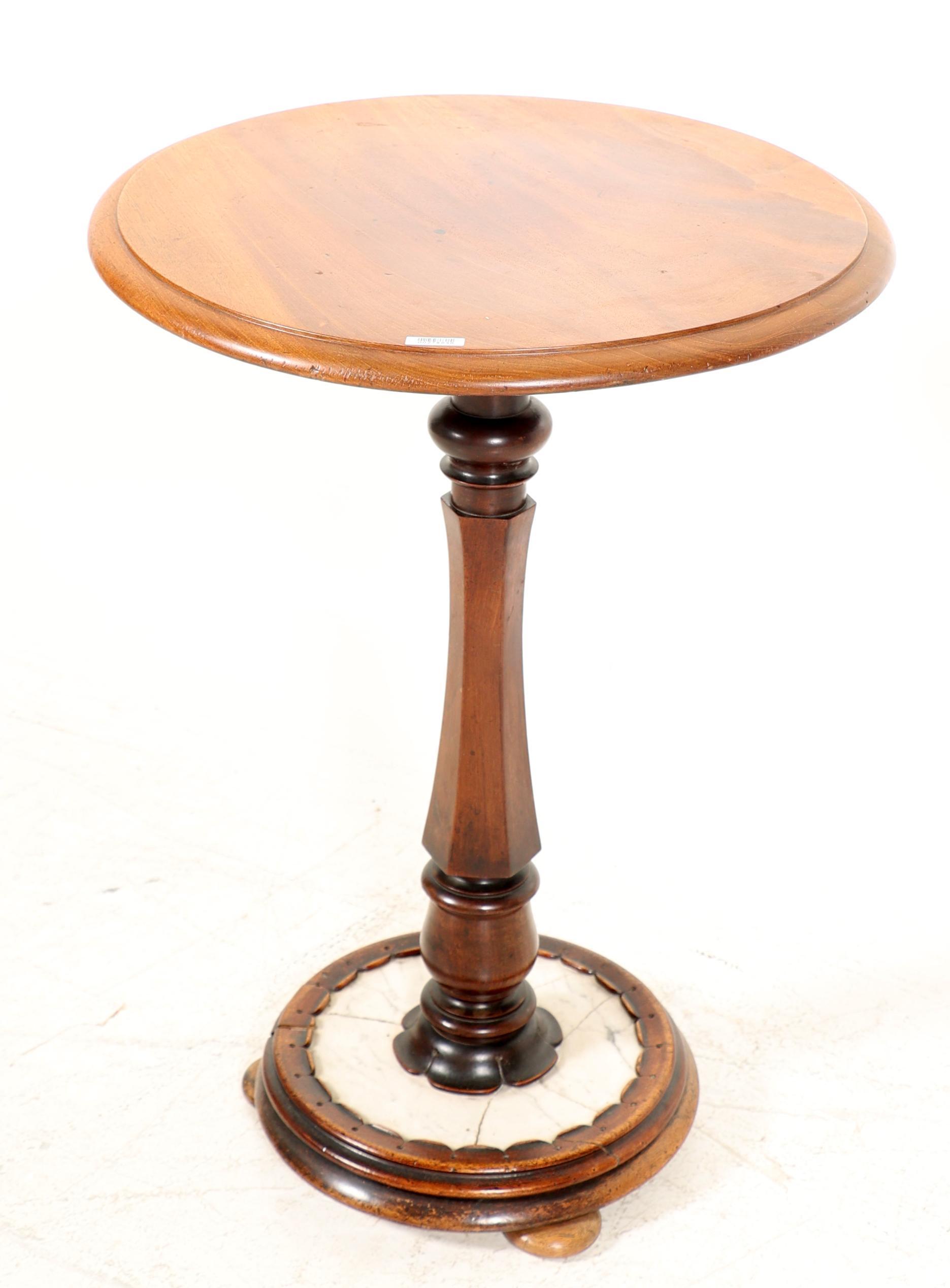 Notenhouten wijntafel met marmer aan onderzijde, h.70 x diam.50 cm.