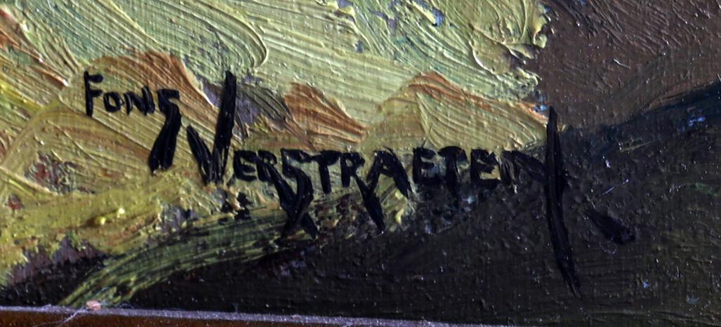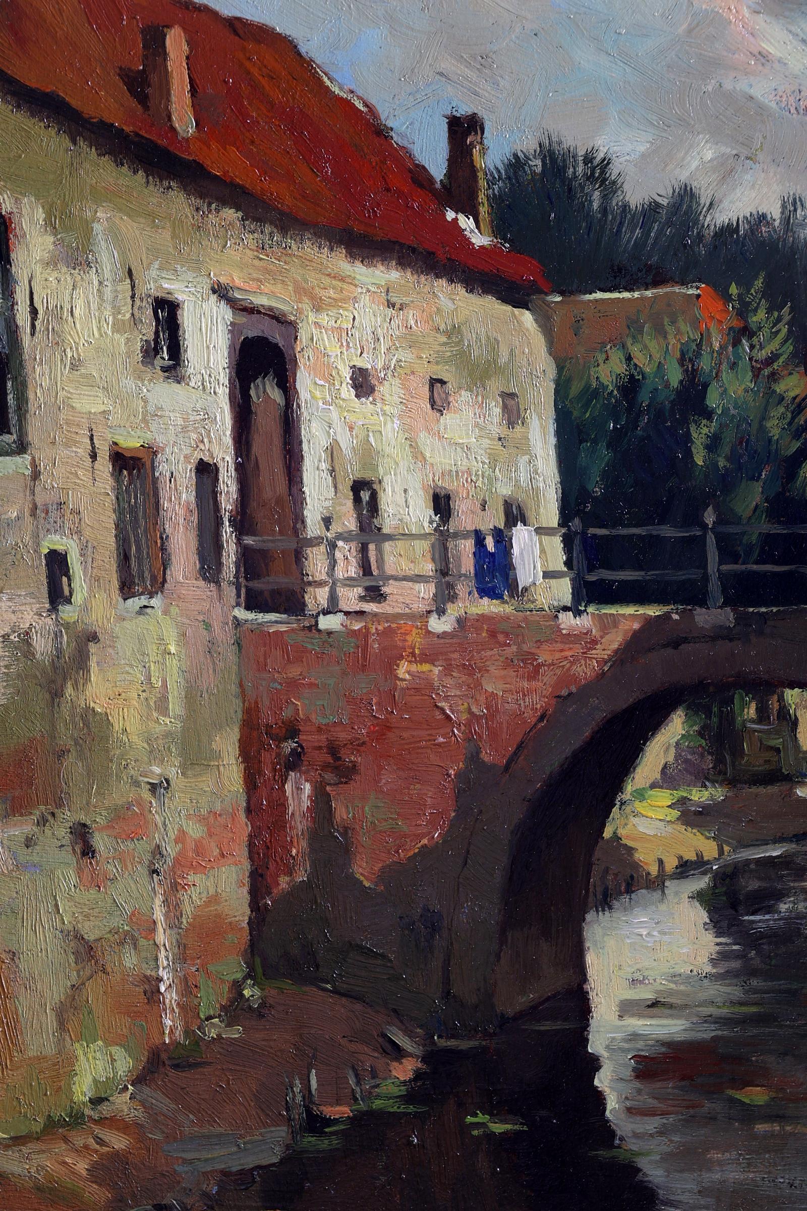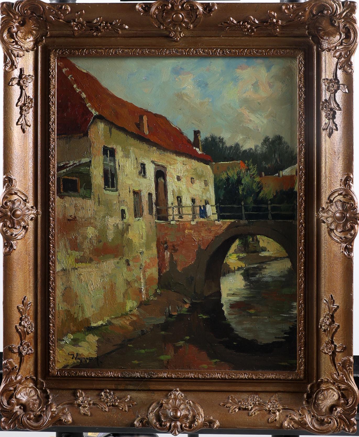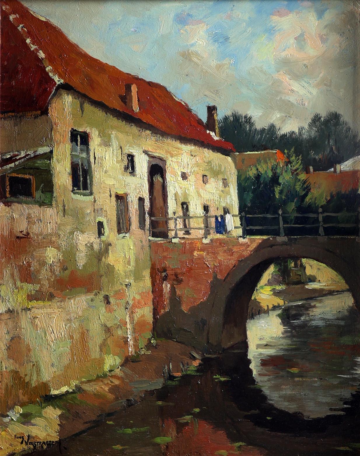 Alfons Verstraeten (1922-2017), Huisje aan een brug, olieverf op paneel, 46 x 36 cm.