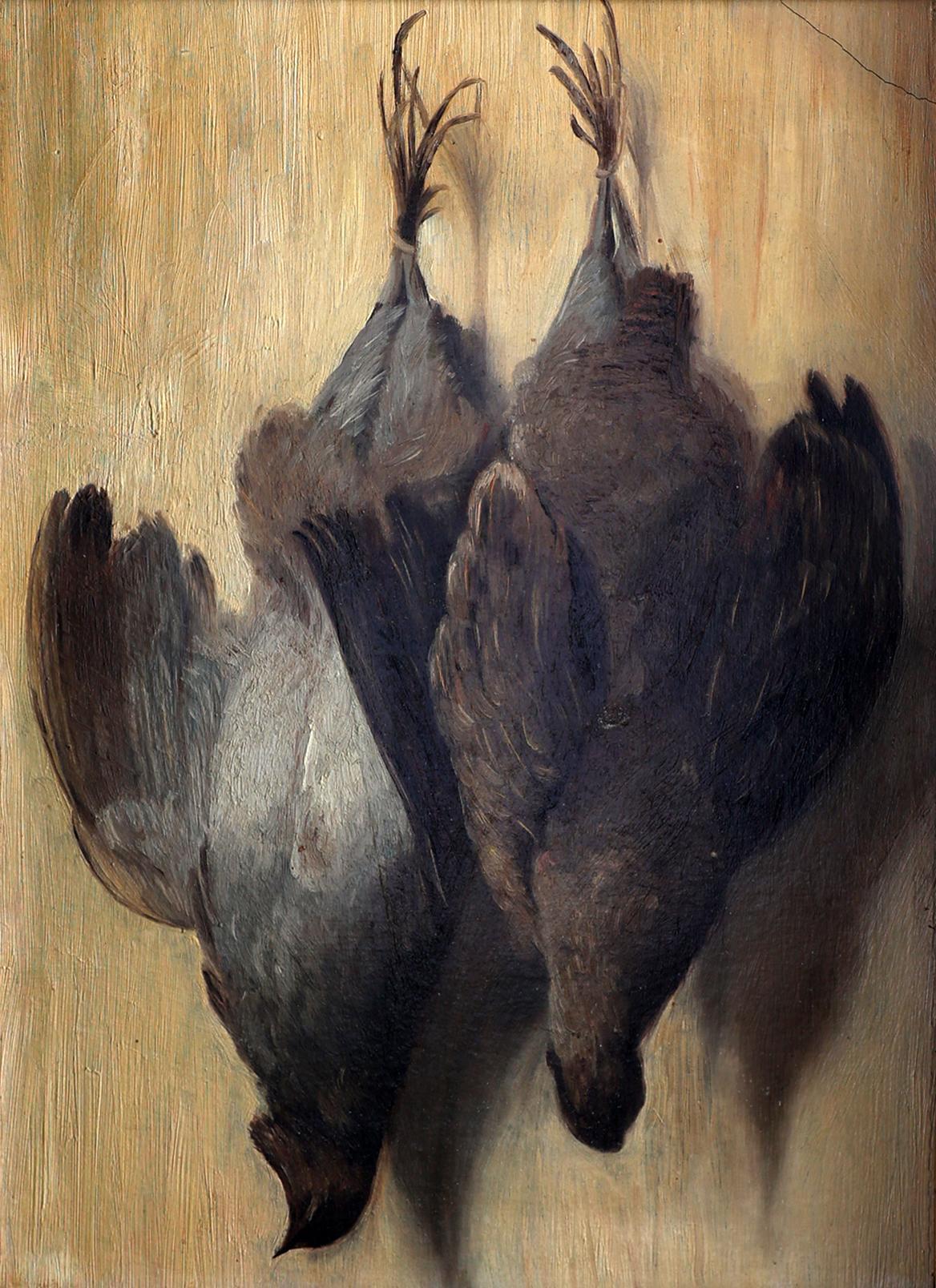 Onb. meester, Stel dode vogels, olieverf op paneel, 32 x 42 cm.