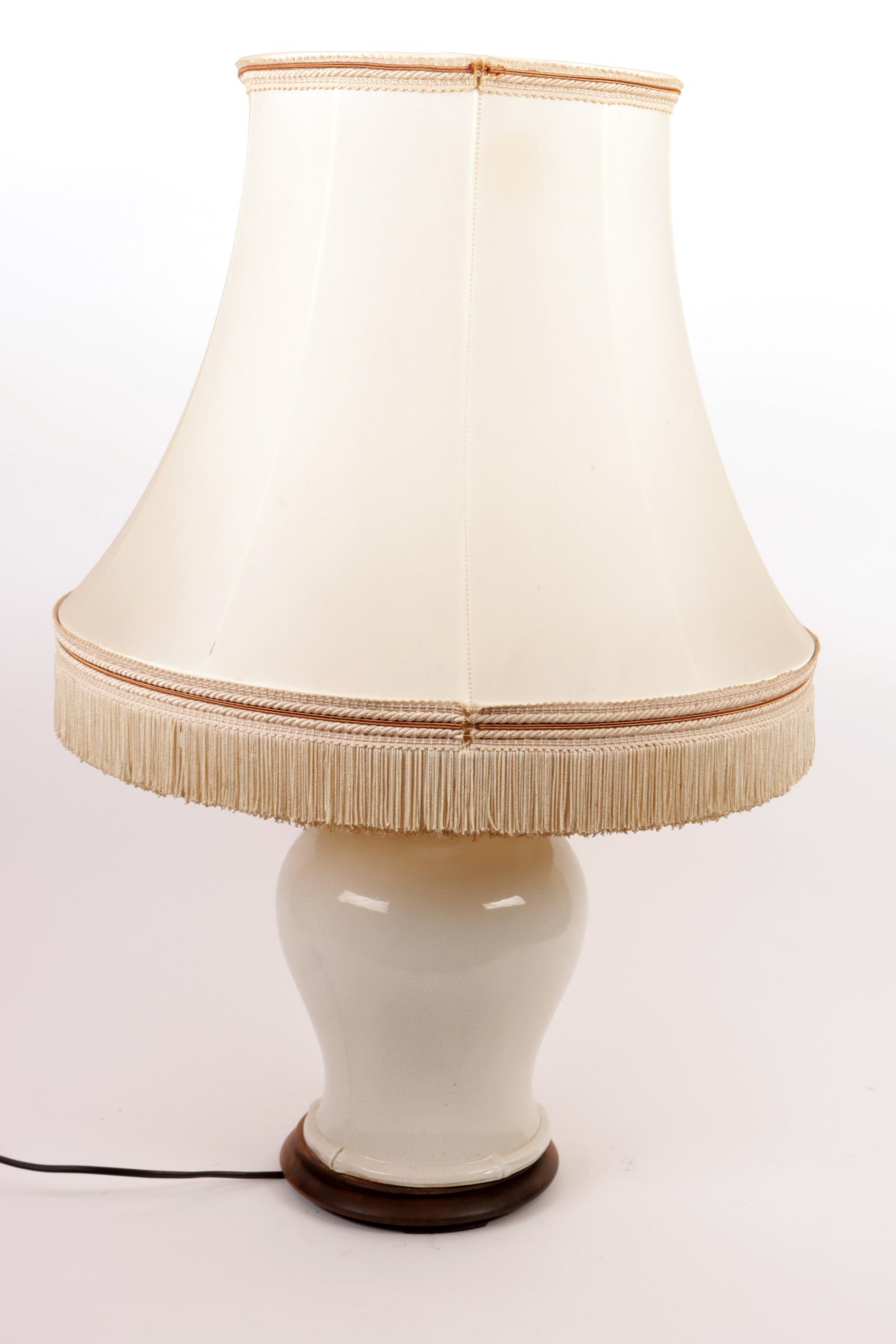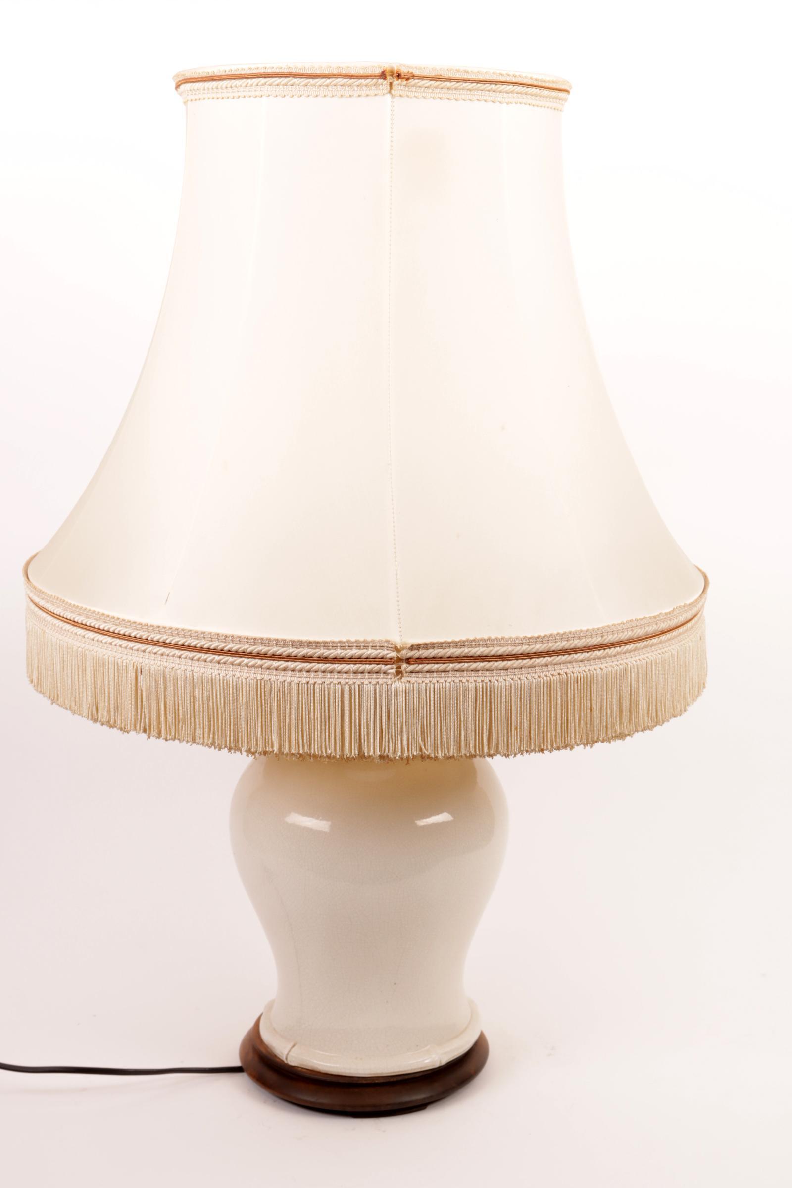 Witte keramiek schemerlampvoet met kap h.75 cm.