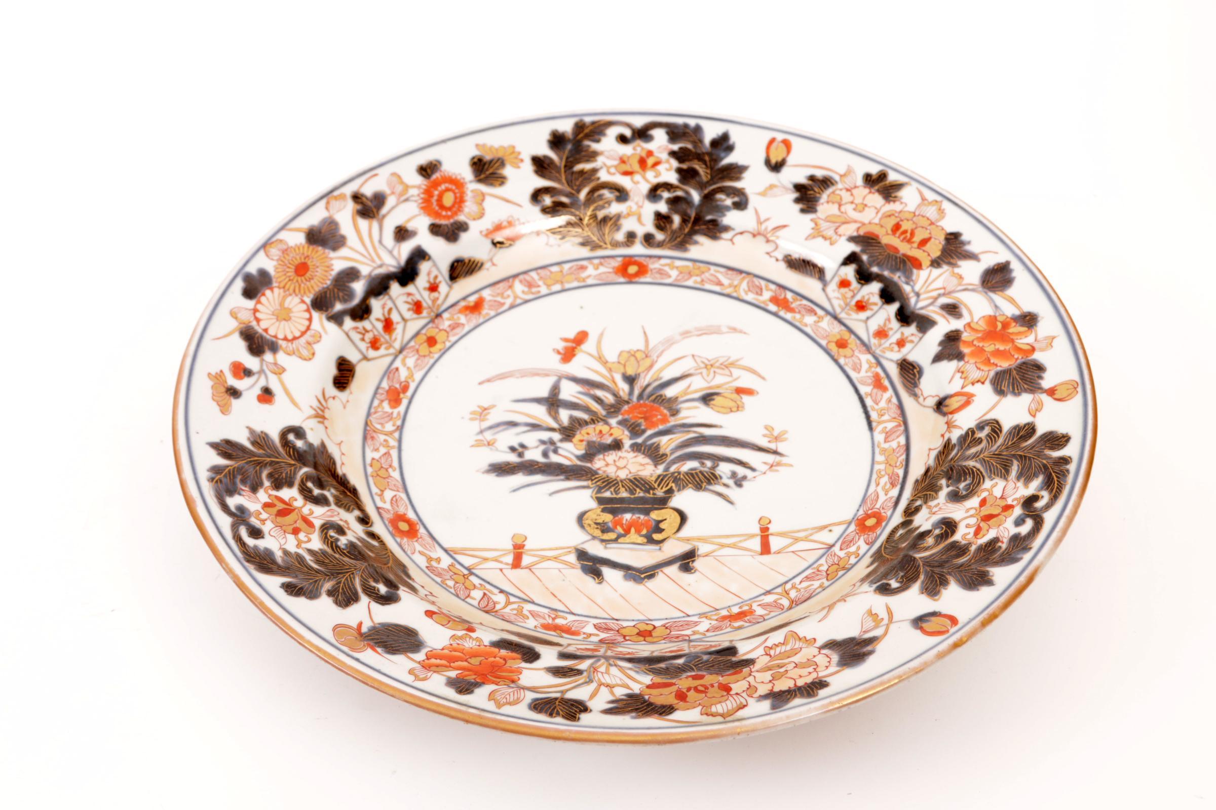Met bloemen gedecoreerde Imari porseleinen schotel, diam.36,5 cm.
