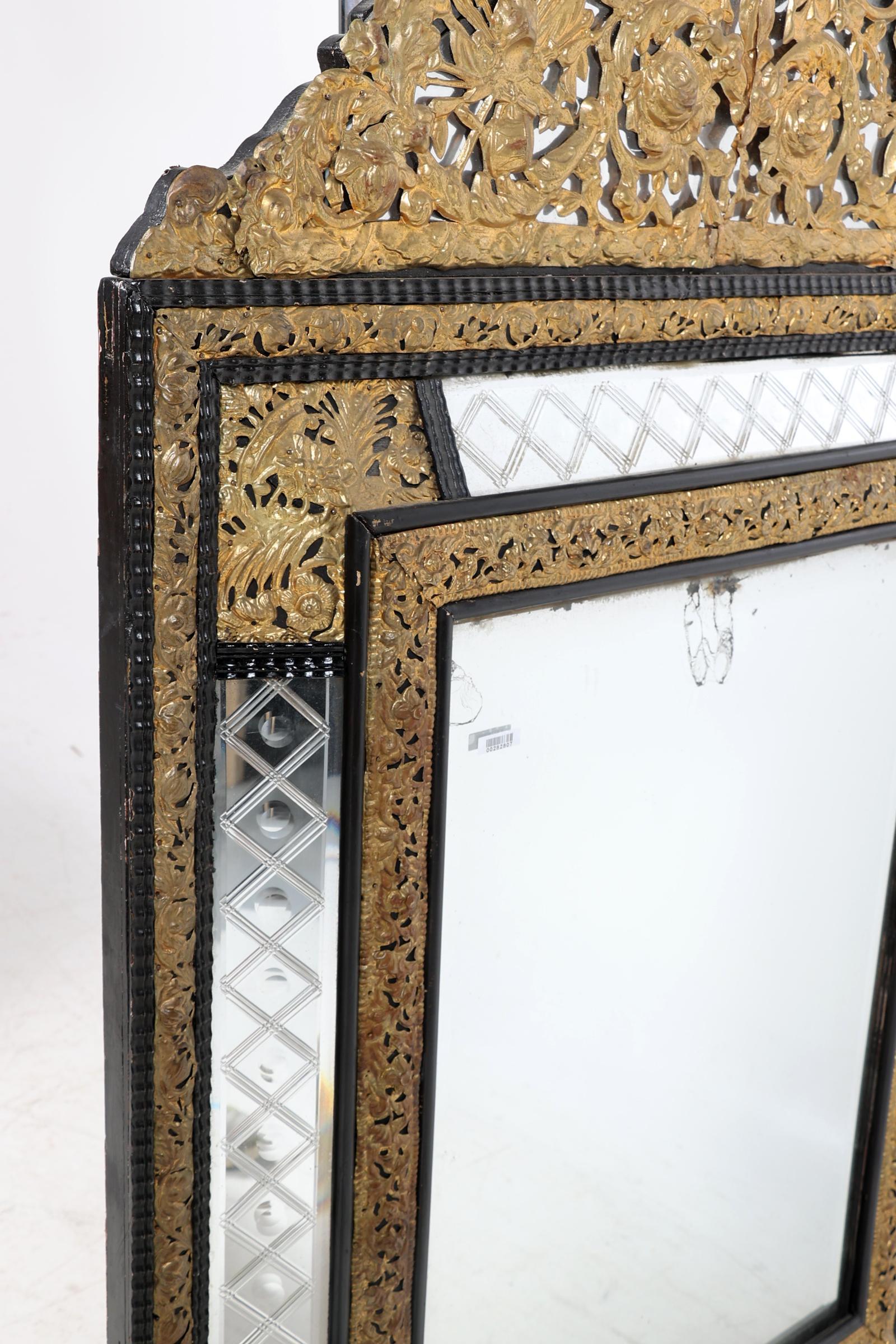 Antieke kuifspiegel met opengewerkt koper belijmd