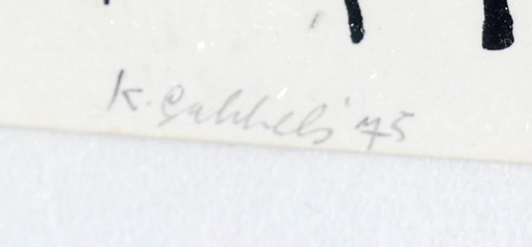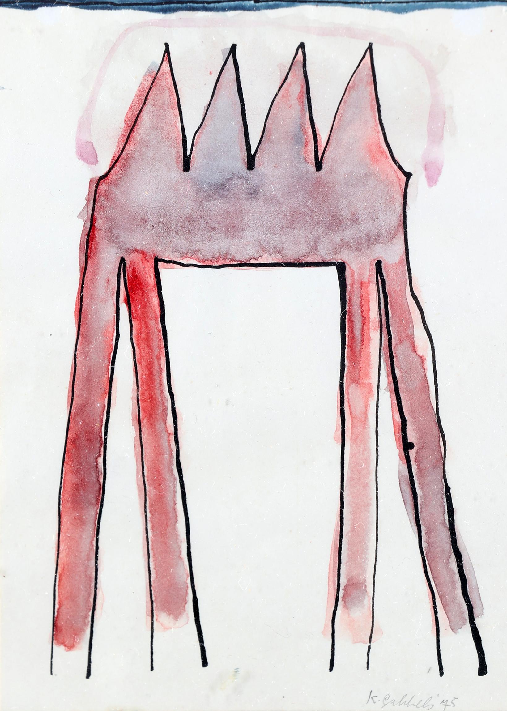 Klaas Gubbels (Rotterdam 1934), Rood tafeltje, aquarel op papier, gedateerd '75, 14,5 x 10 cm.