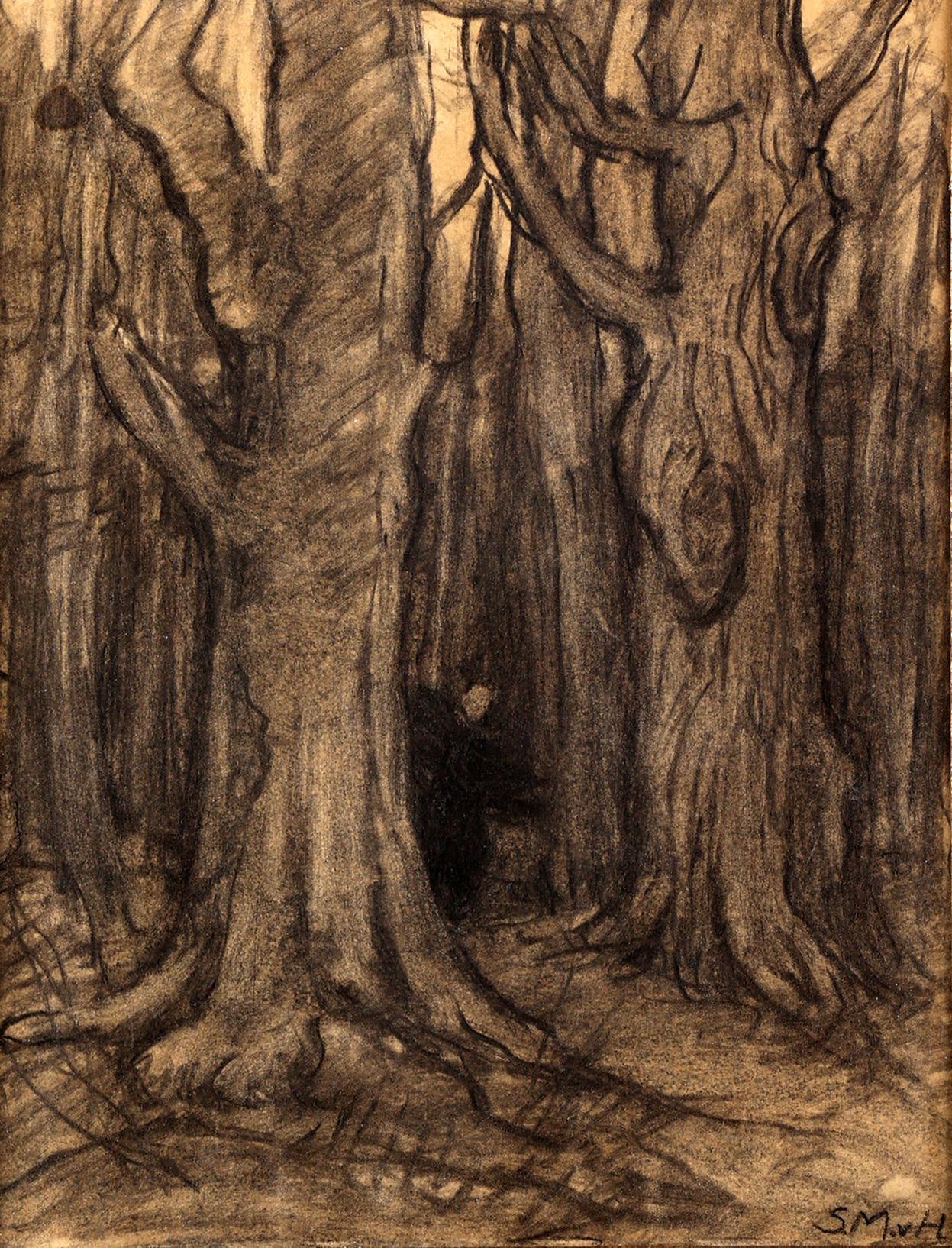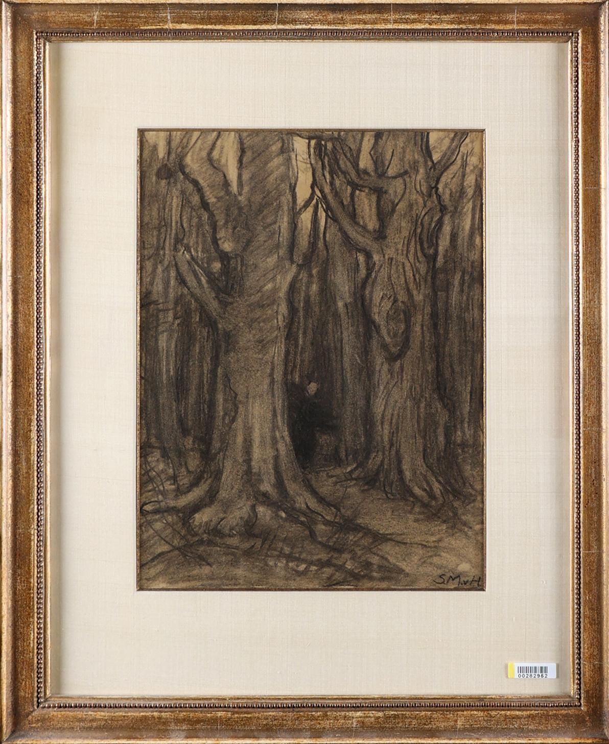 Sientje Mesdag van Houten (1834-1909), Bosgezicht, houtskooltekening, 31 x 23 cm.