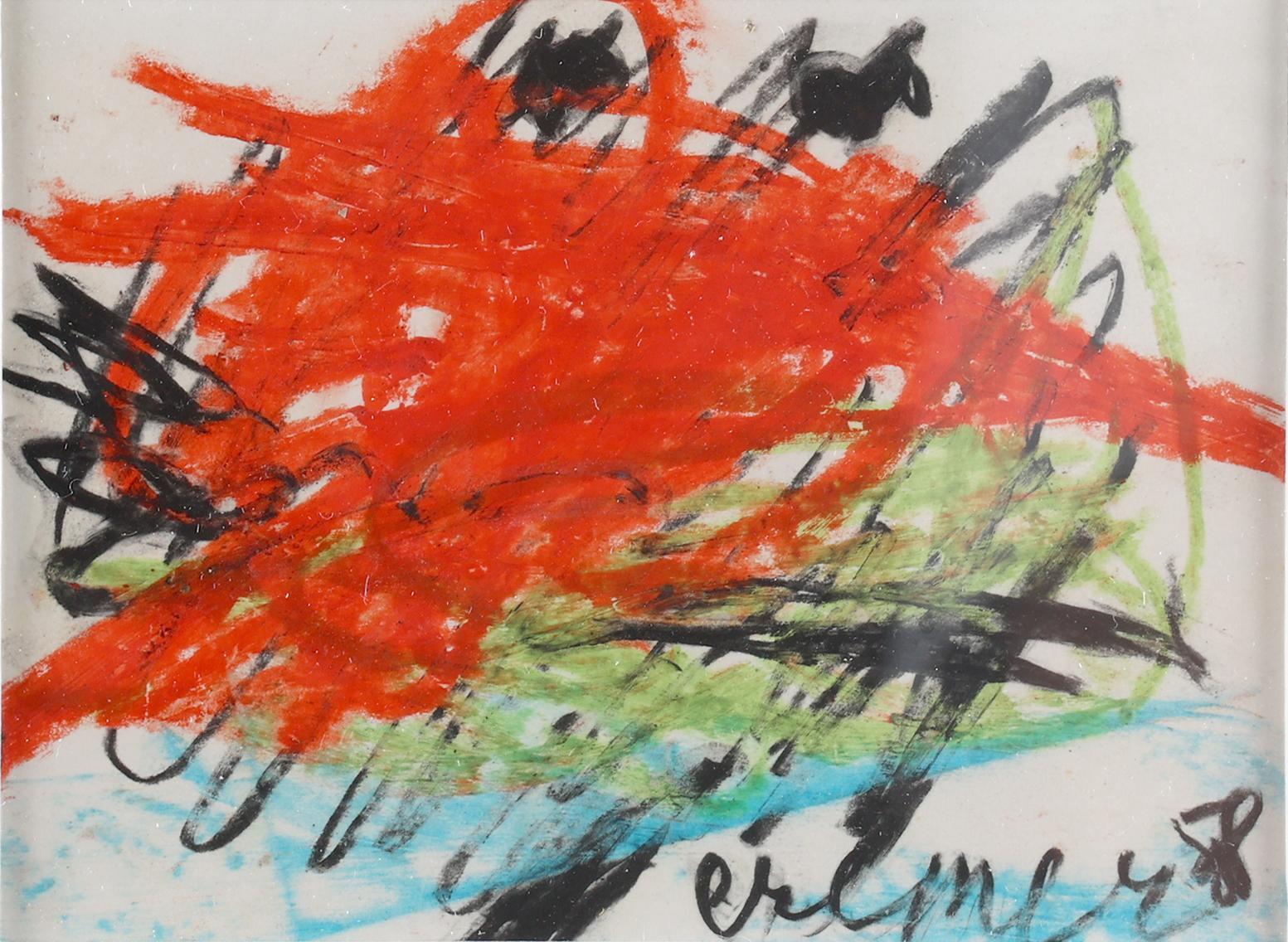 Jan Cremer (1940), Abstract, krijttekening op papier, 10,5 x 13,5 cm.