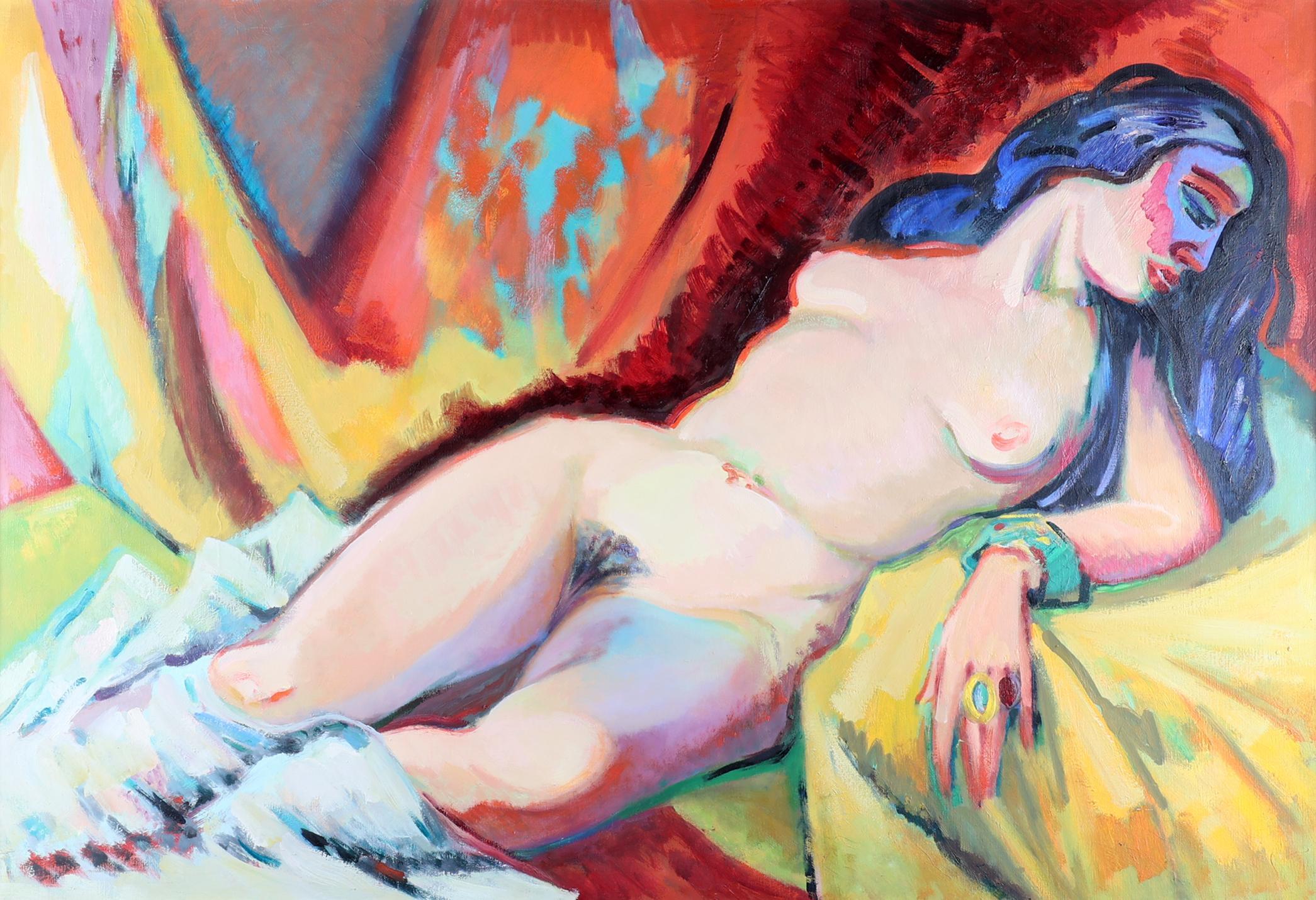 Freek van den Berg (1918 - 2000), Naakte dame, olieverf op doek, met studio stempel op de achterkant, 90 x 130 cm.