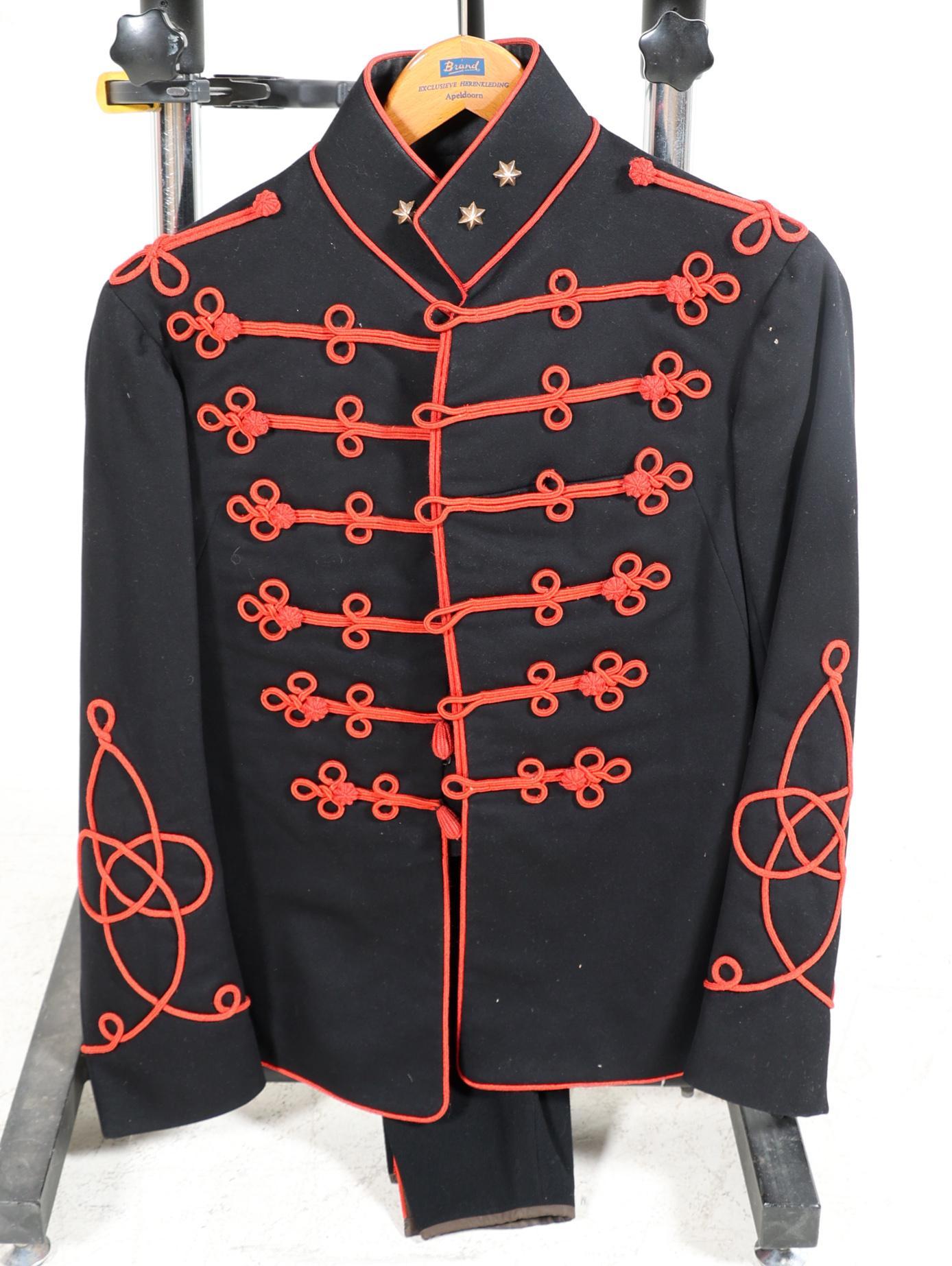 Zwart met rood geborduurde uniform en uniform jasje