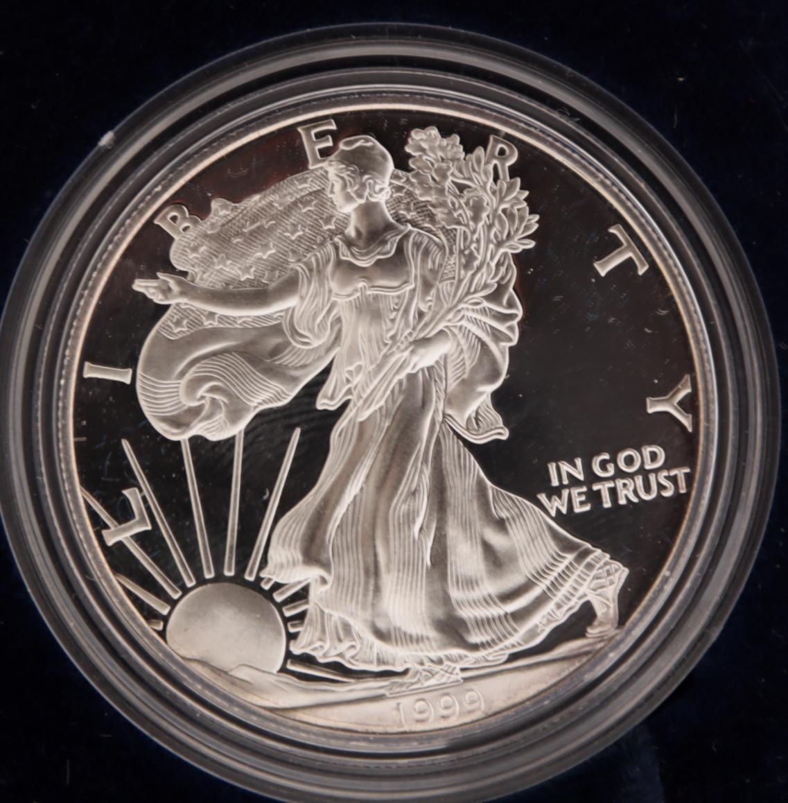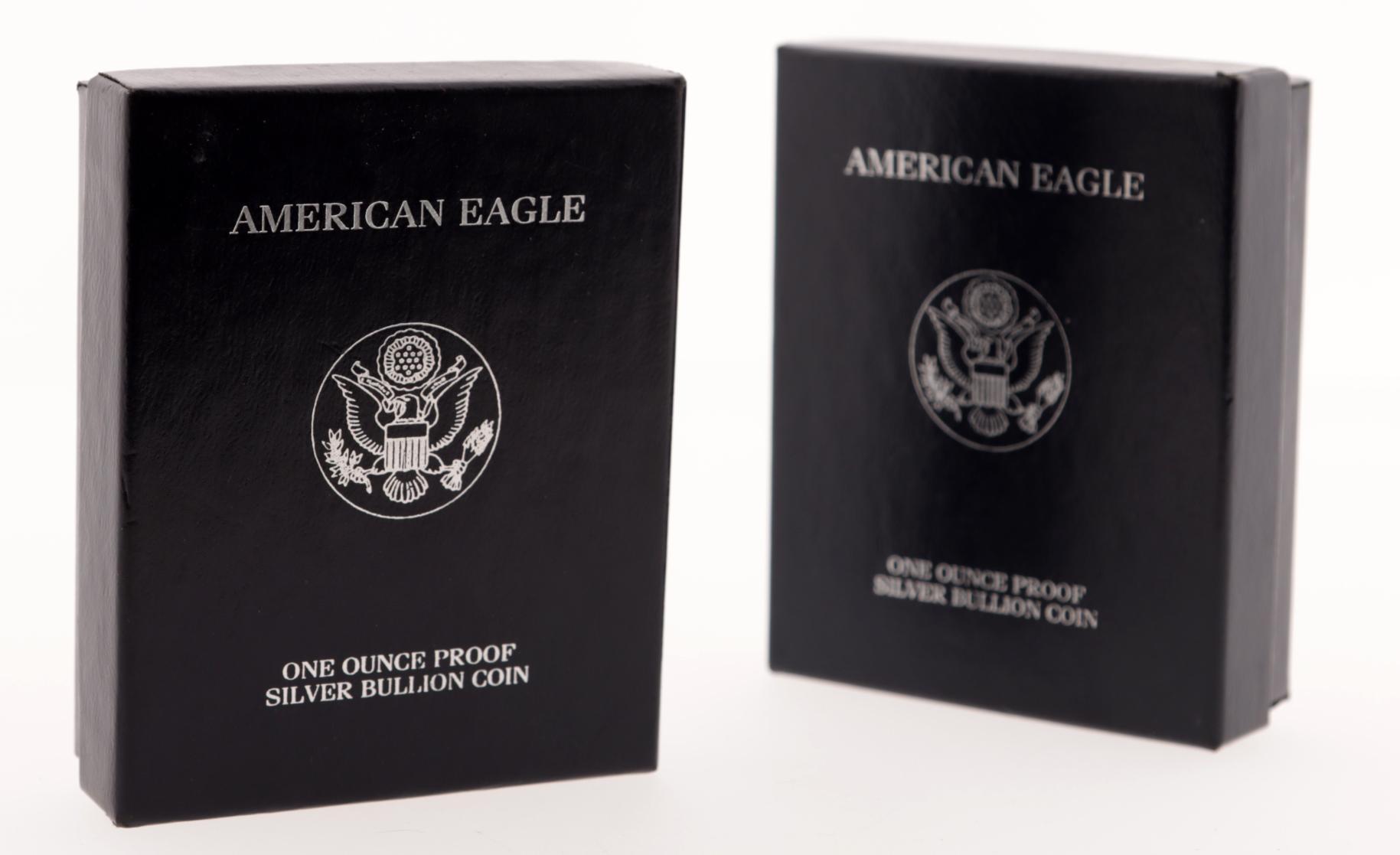2 Zilveren One Ounce American Eagle, proof 0.999/ 1999 en 2000