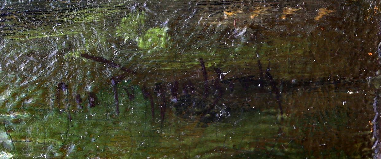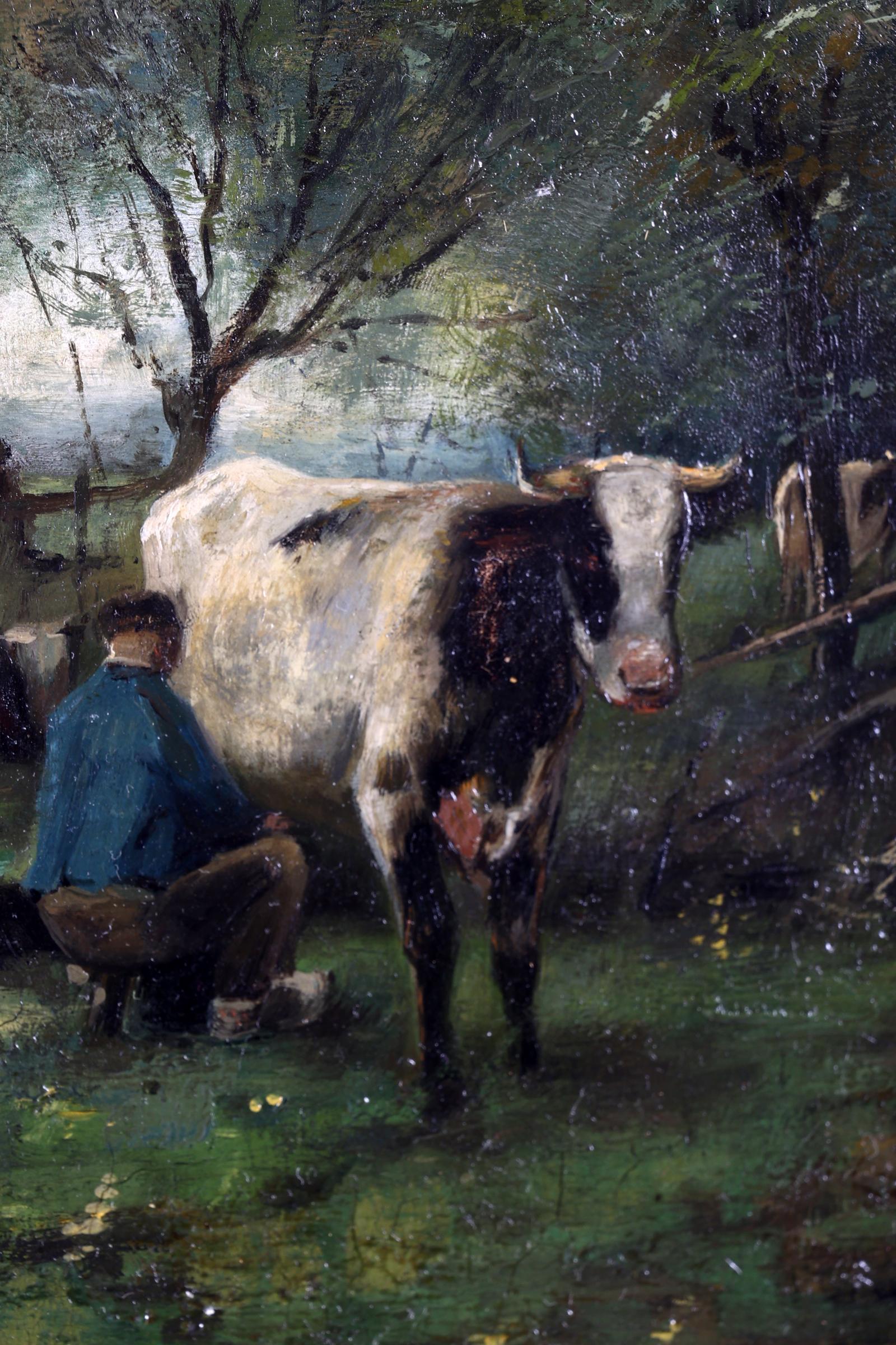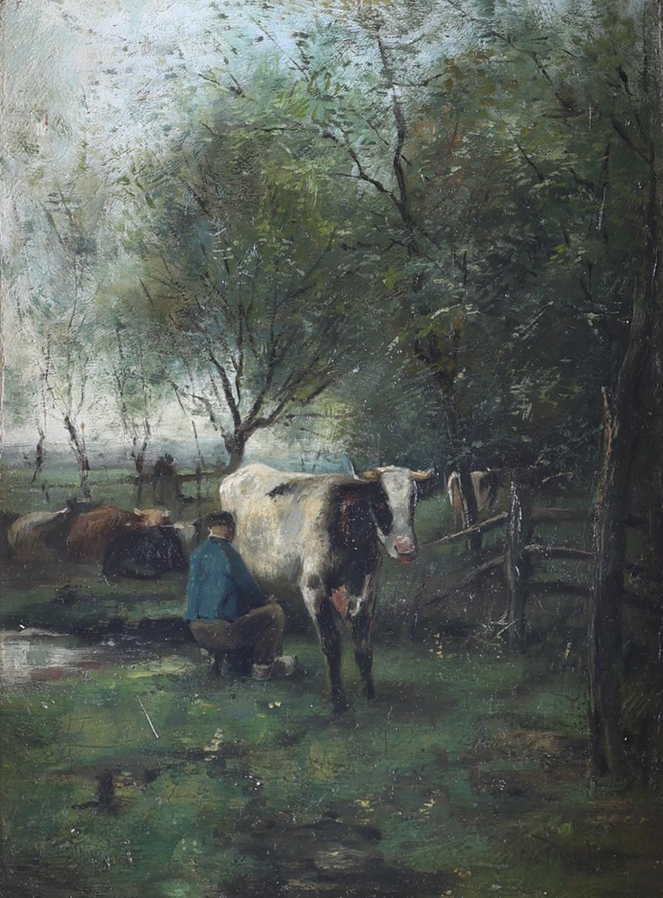 George Jan Hendrik (Geo) Poggenbeek (1853-1903), Melktijd, olieverf op paneel, 21 x 28 cm.