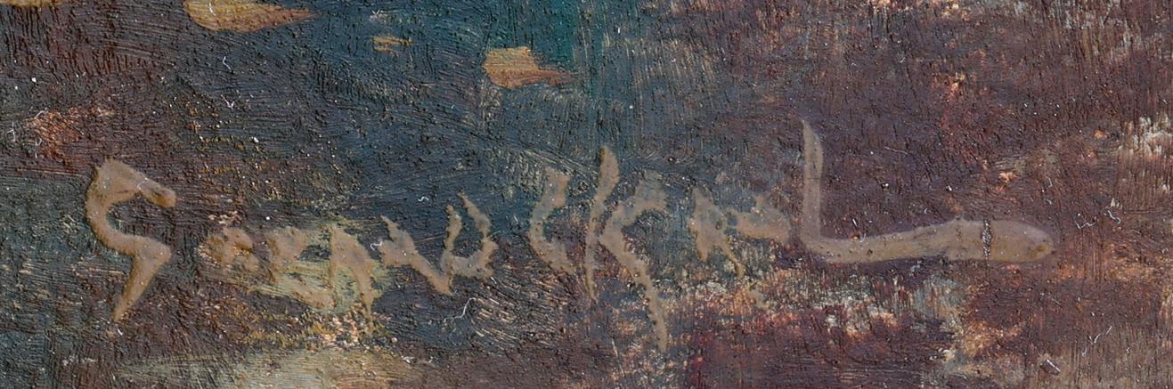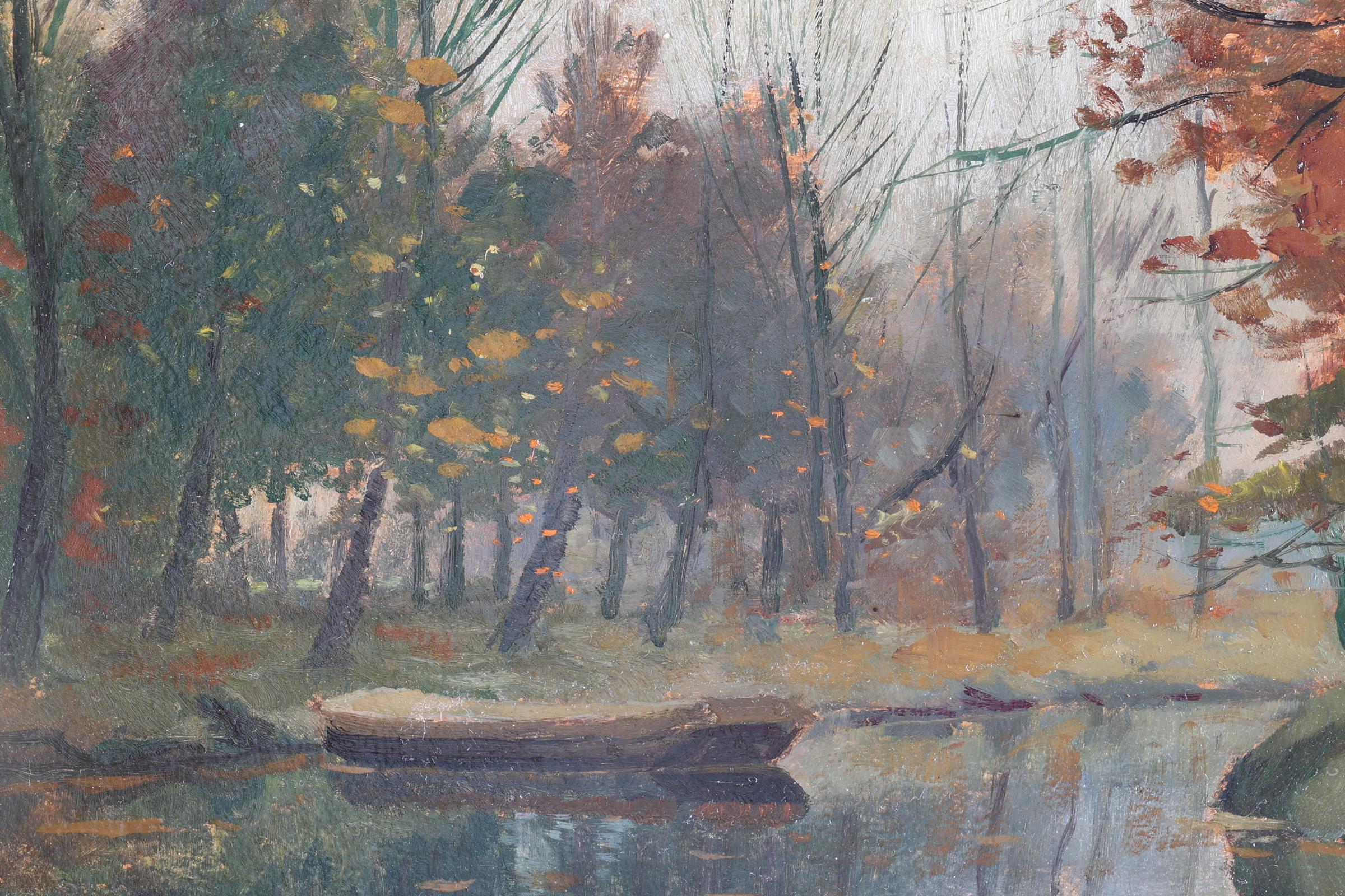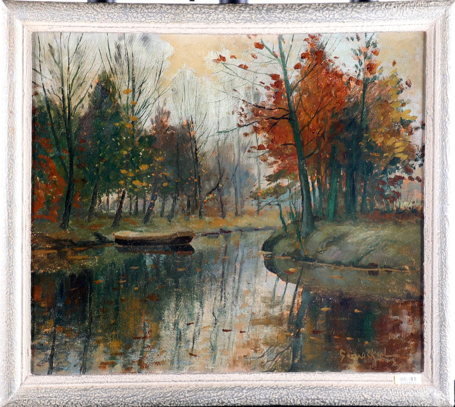 Gerard C. Krol(1882-1950), Rivierlandschap met bootje, Dinkel Denekamp, olieverf op board, 1944, 39 x 49 cm.
