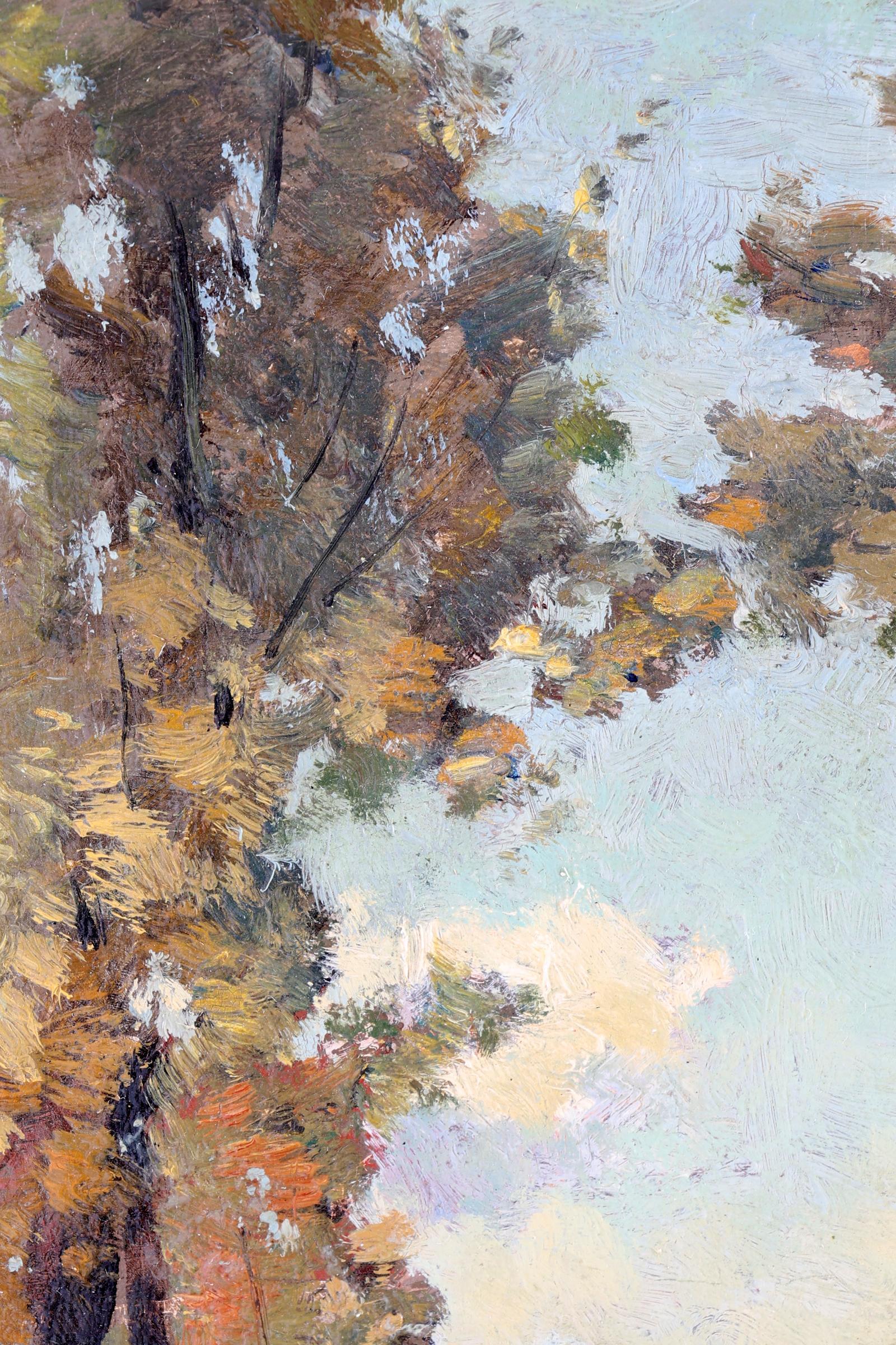 Theophile Emile de Bock (1851-1904), Laan met bomen, olieverf op,paneel, 24 x 31 cm.