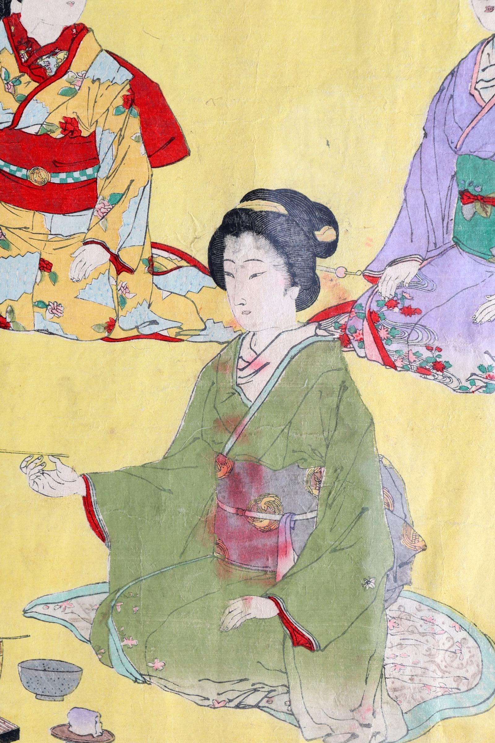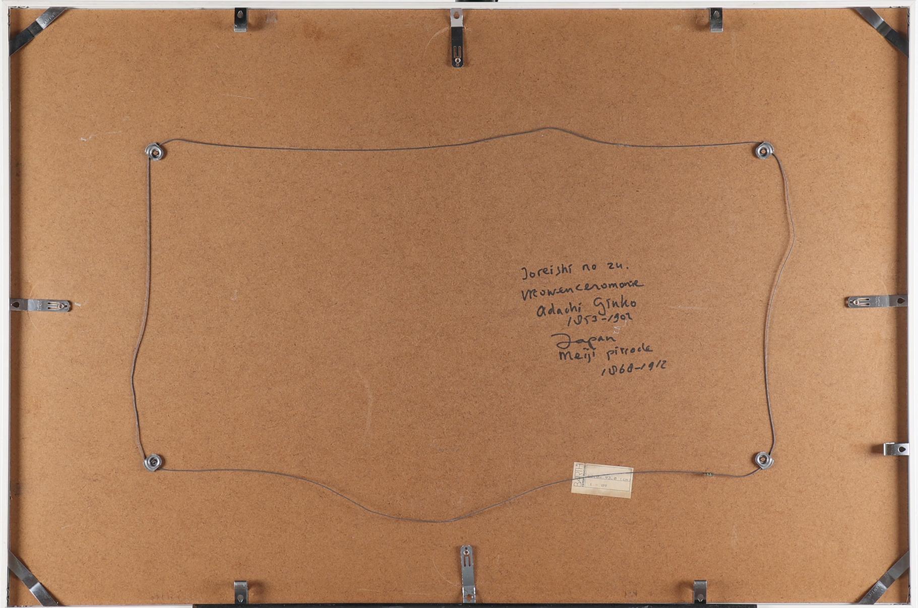 Adachi Ginko (1853-1902), ceremoniële bijeenkomst, Japanse blokhoutsnede, 37 x 71 cm.