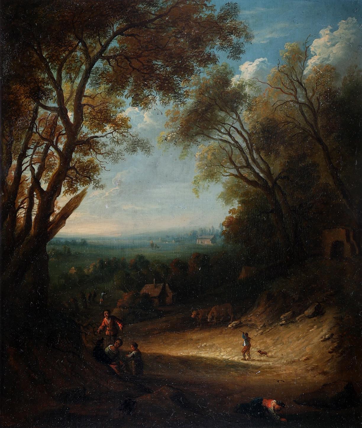 Toegeschreven aan M.A. Koekoek (1807-1868), landschap, olieverf op paneel, 25 x 31 cm.