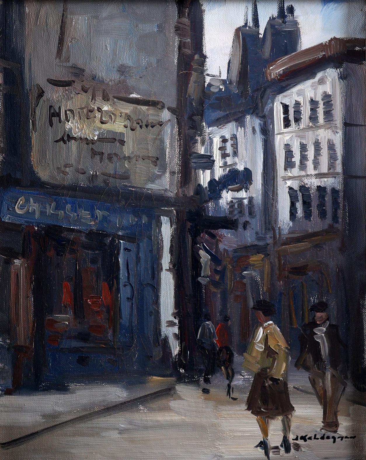 Jan Kelderman (1914-1990), Frans stadsgezicht met personen, olieverf op doek, 30 x 40 cm.