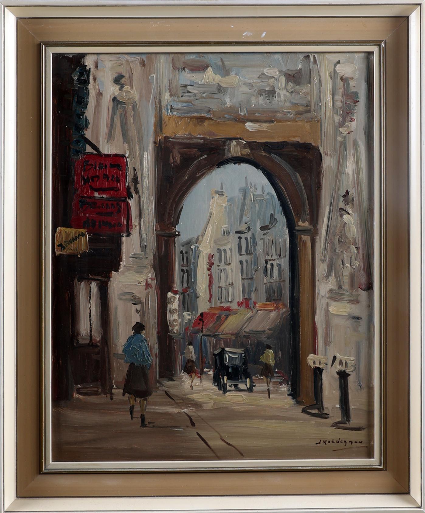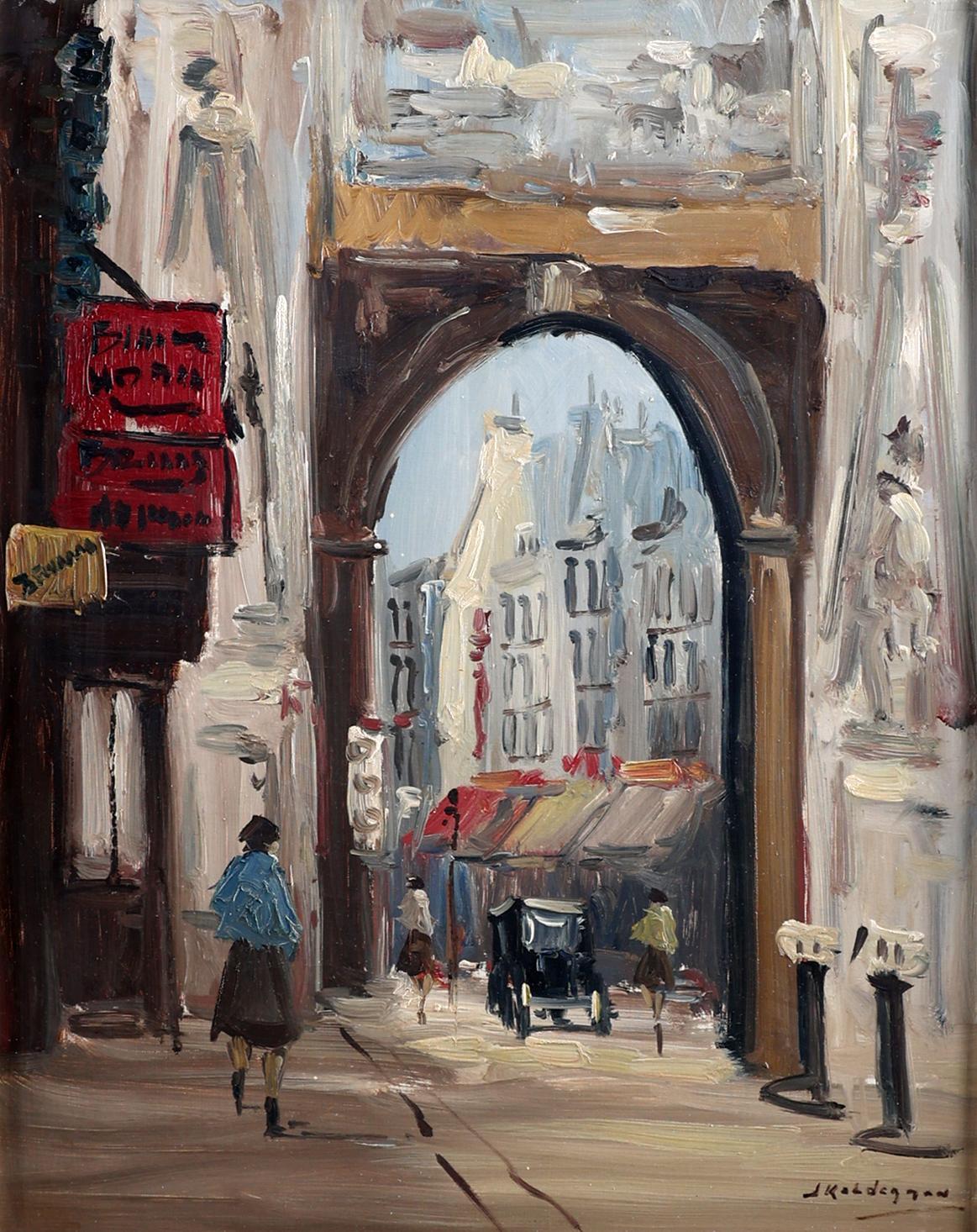 Jan Kelderman (1914-1990), Frans stadsgezicht met personen, olieverf op doek, 40 x 50 cm.