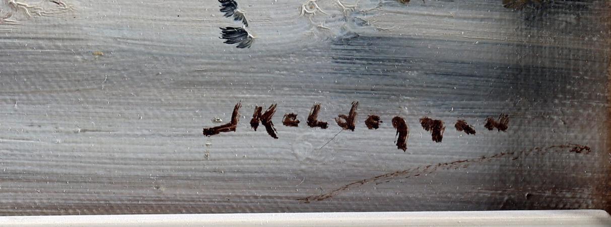 Jan Kelderman (1914-1990), Zicht op de Lutherse kerk te Amsterdam, olieverf op doek, 30 x 40 cm.