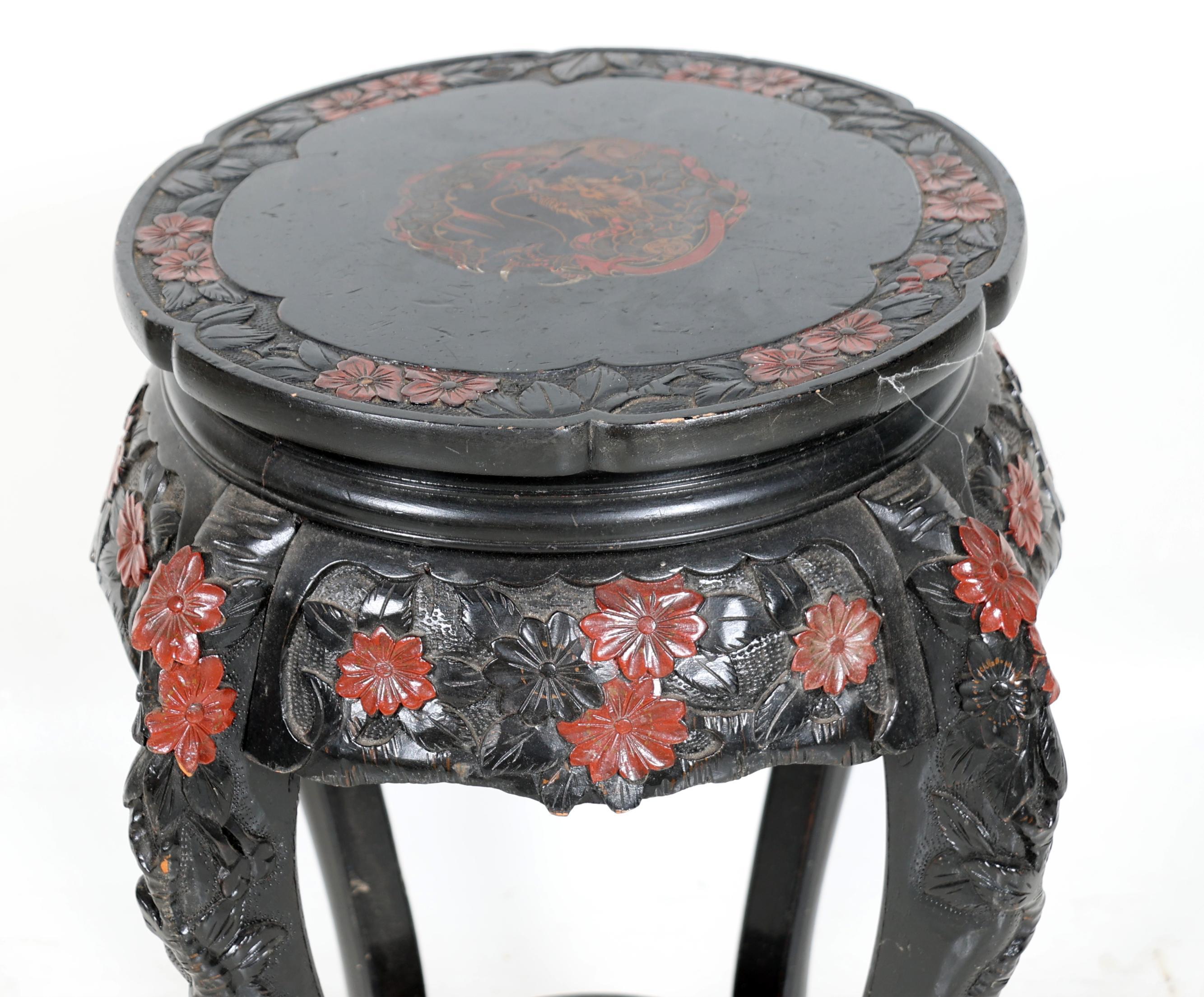 Chinees houten hocker, h.70 x diam.37 cm.